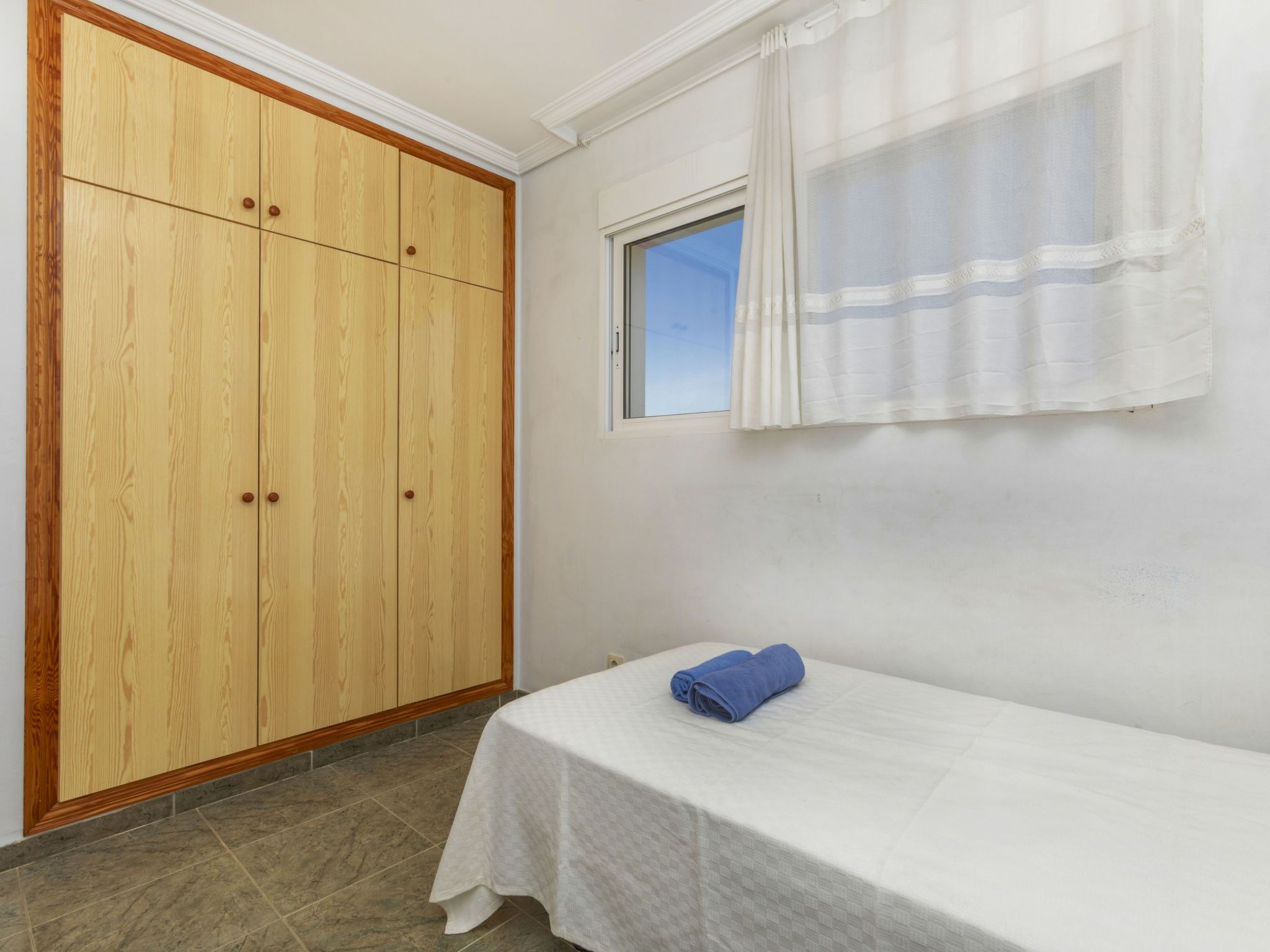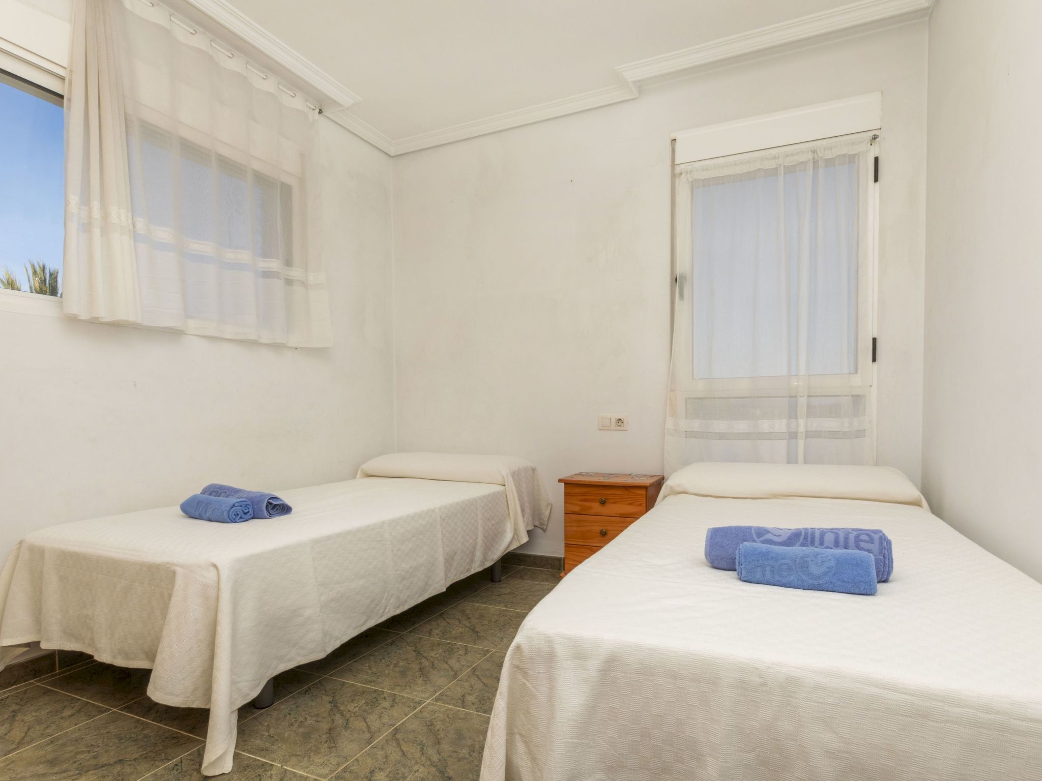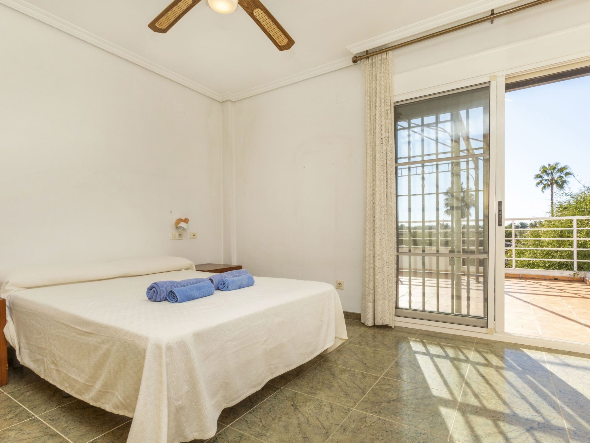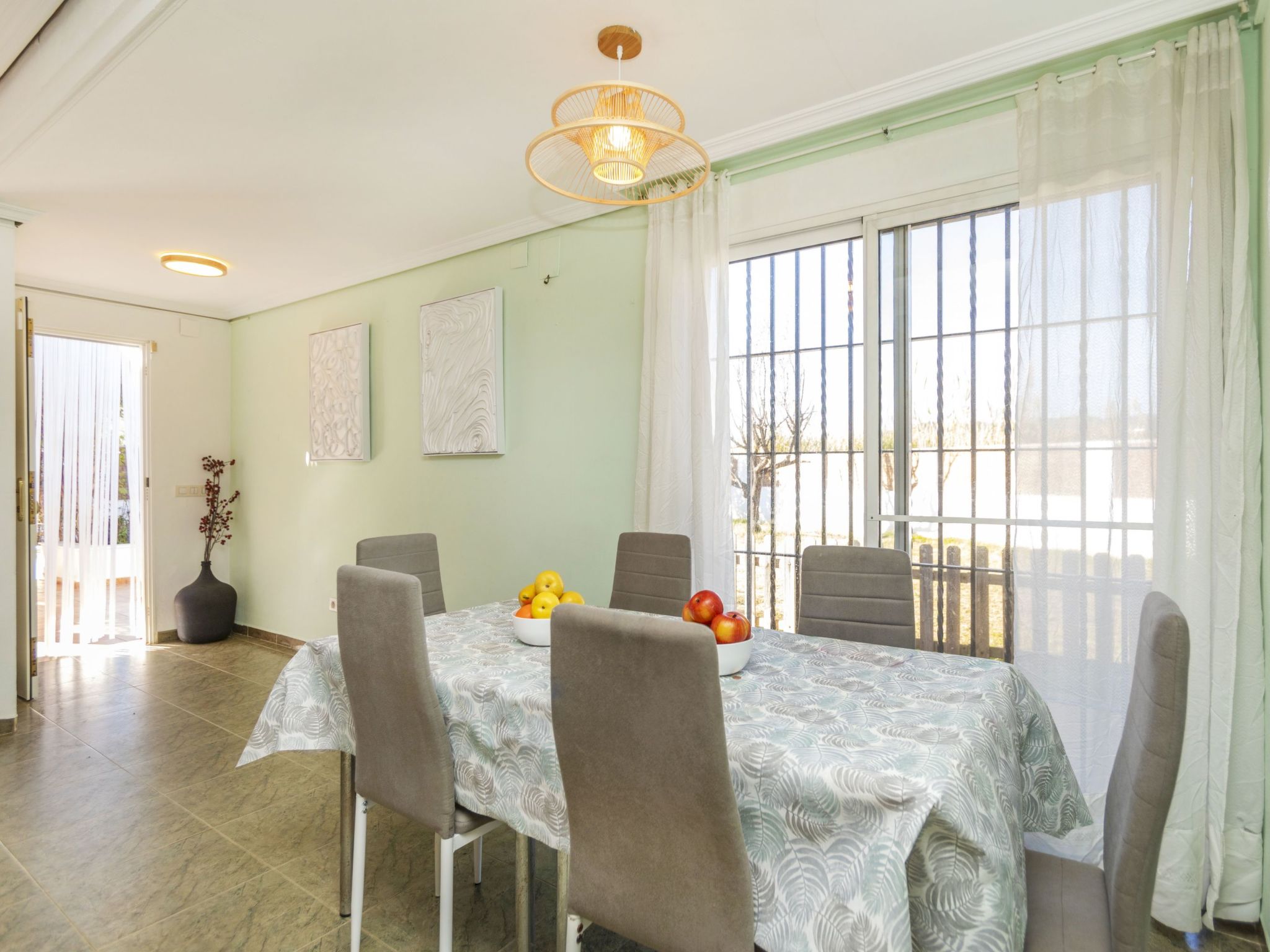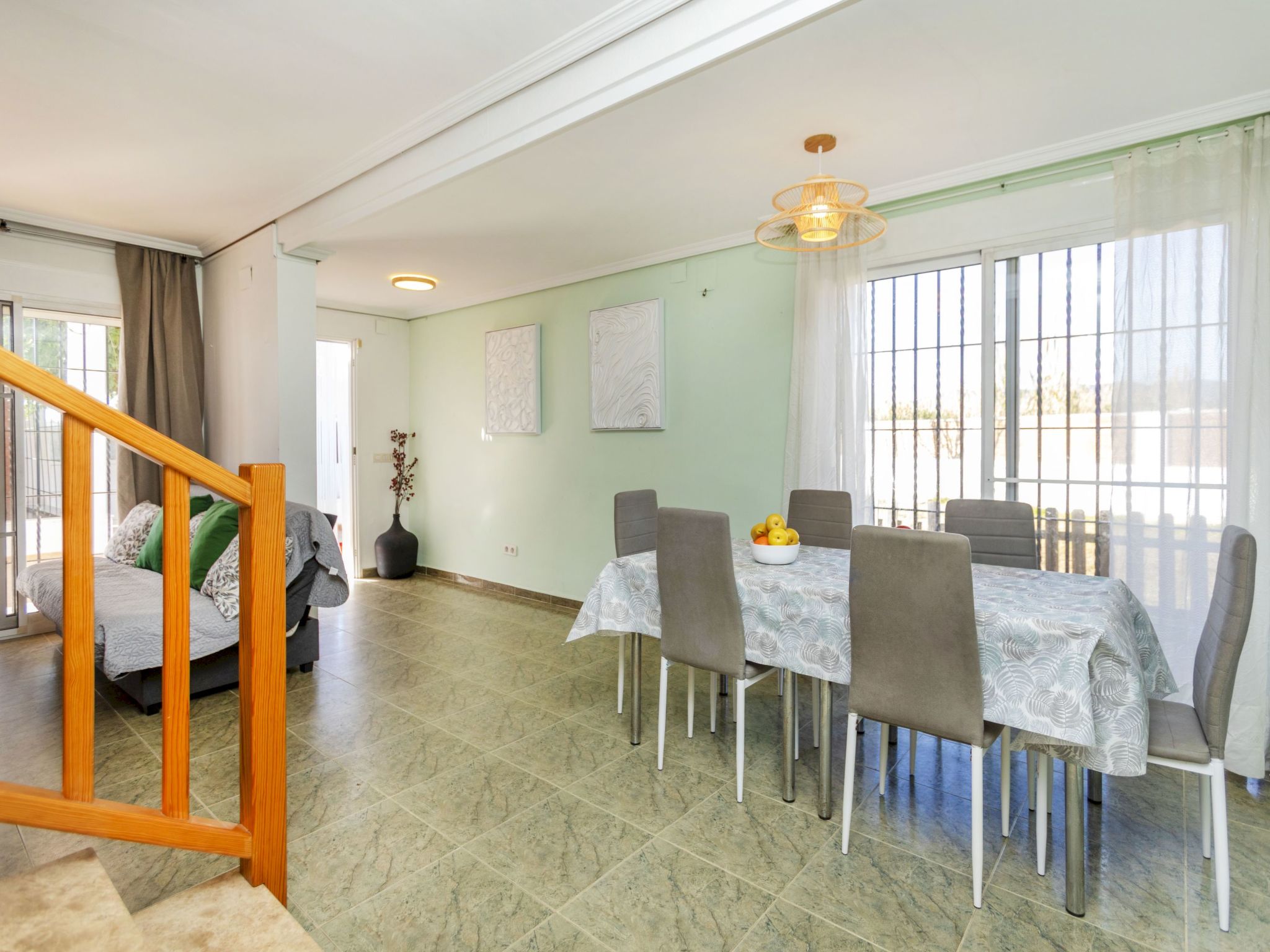 Cabanes 8 km from Oropesa: Comfortable terraced house "La Rambleta", 2 storeys. In the resort 8 km from the centre of Oropesa del Mar, in a quiet, sunny position residential area (villas), 1 km from the sea, 1 km from the beach. Private: property with wildlife garden and flowers, natural garden (fenced). Patio, roofed, parking on the premises. Shop 1 km, supermarket 2 km, restaurant 500 m, bar 1 km, bakery 3 km, bus stop 500 m, railway station "Oropesa del Mar" 4 km, sandy beach "500". Nearby attractions: Parque Acuático 3 km, Oropesa del Mar pueblo 8 km, Benicassim 20 km, Peñíscola 50 km. Please note: car recommended. Groups of teenagers on request only. Neighbourhood highly sensitive to noise. Quietness and good behaviour expected.