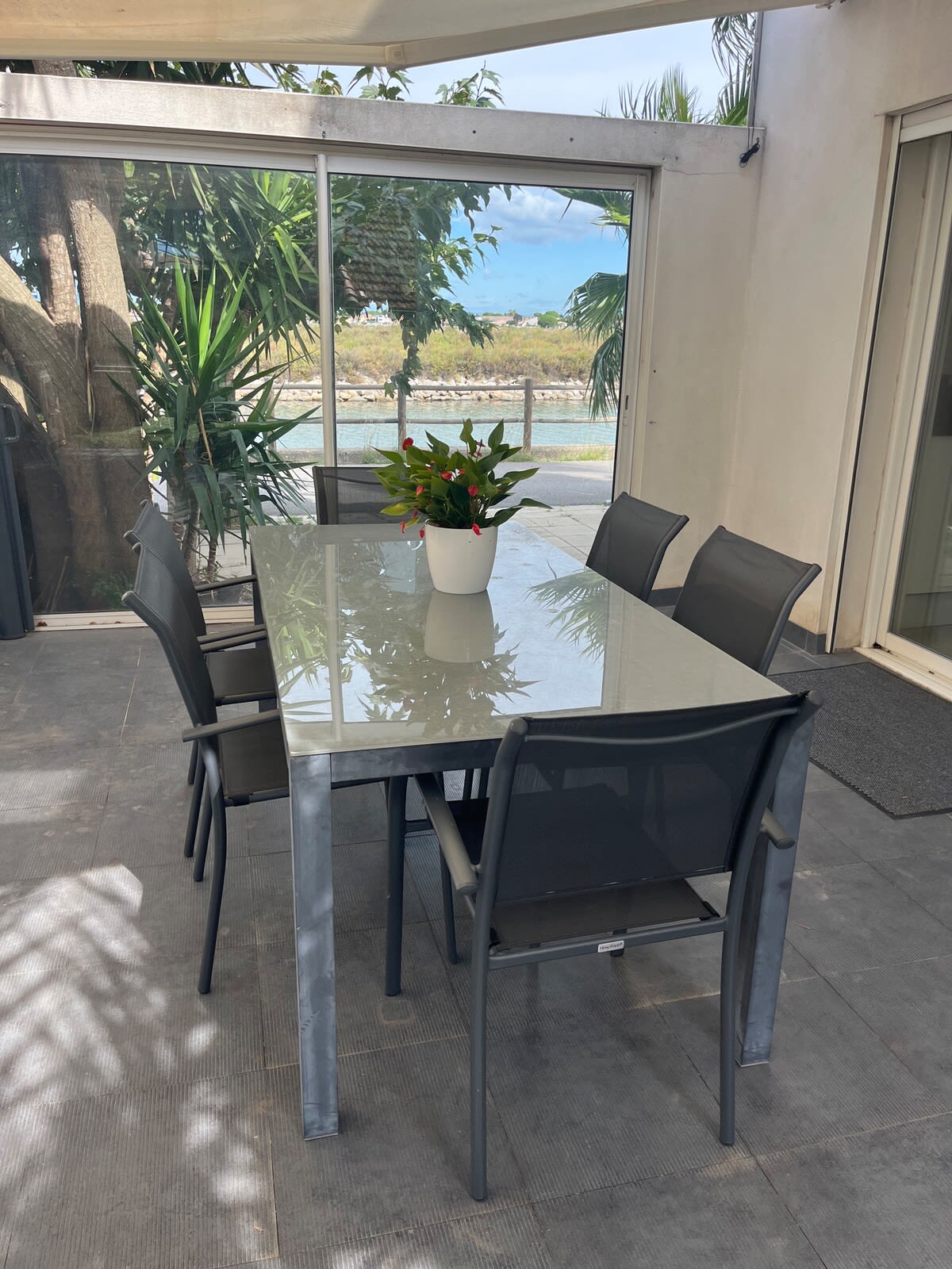 On the ground floor, the spacious, light-filled living room invites you to relax. You'll find a comfortable, air-conditioned living room and a fully equipped open-plan kitchen, opening onto a large outdoor terrace overlooking the canal. This space is ideal for sharing meals al fresco or simply admiring the scenery.