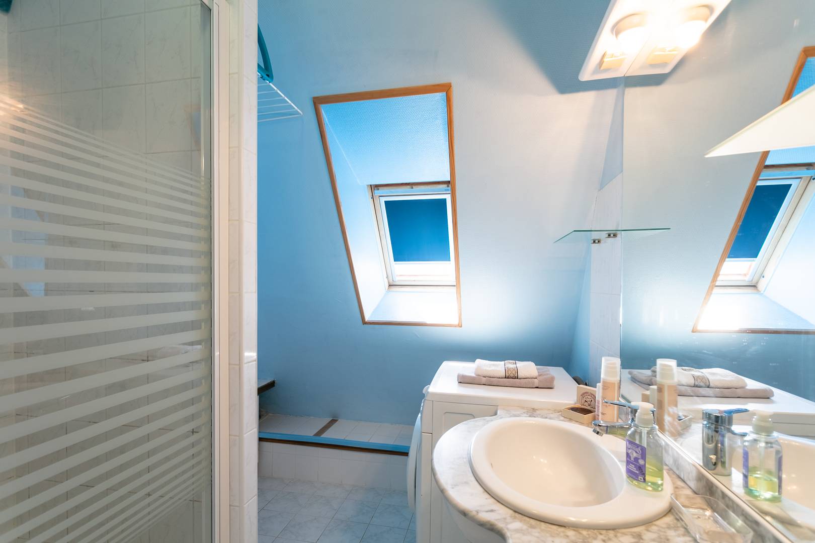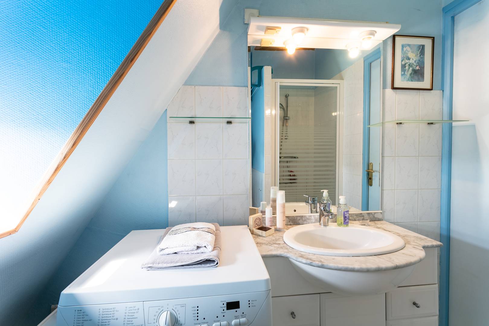 - shower room: shower, WC, sink, washing machine