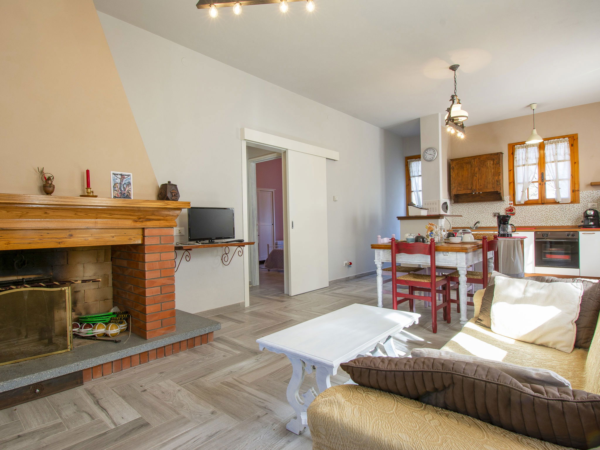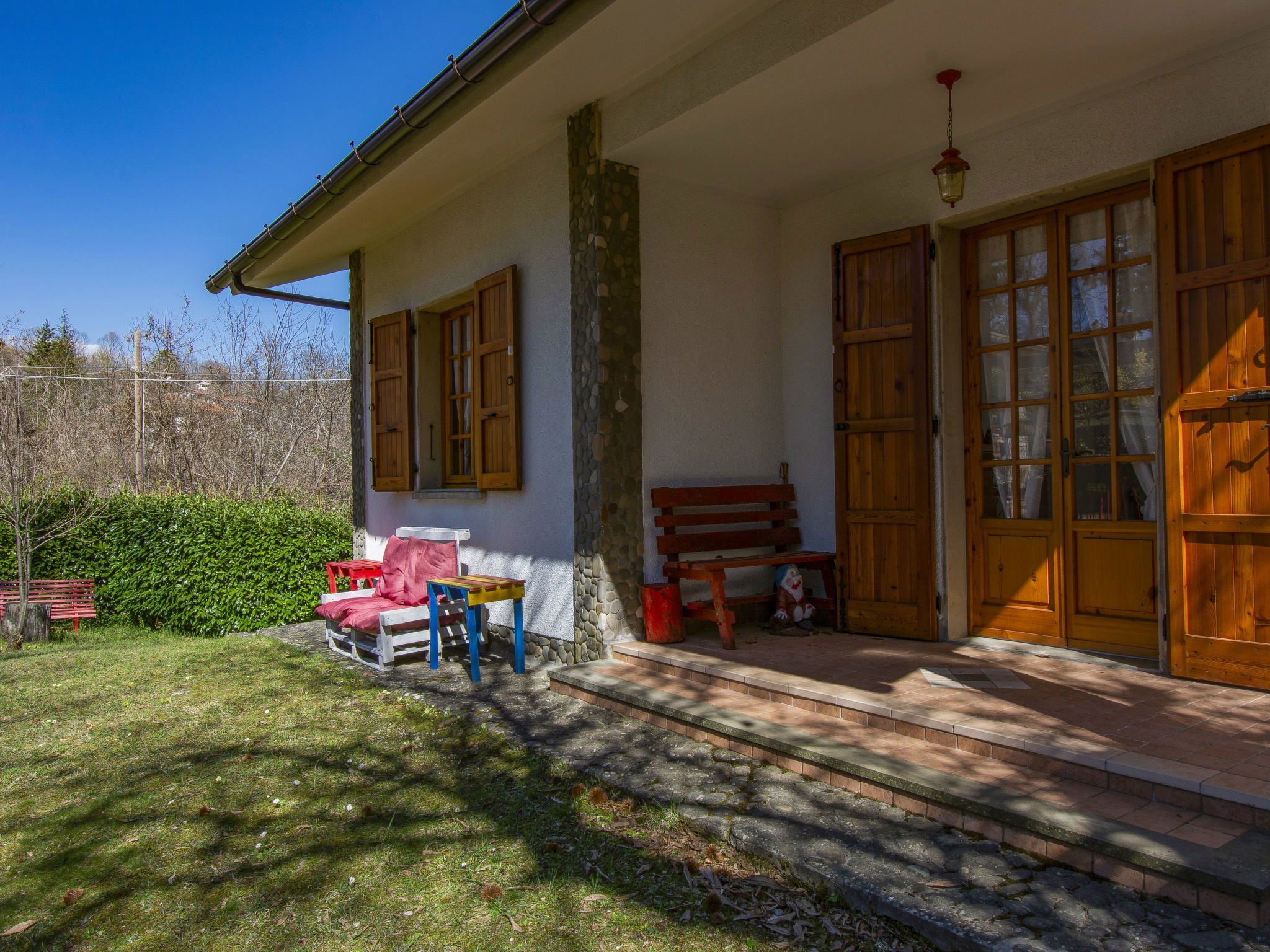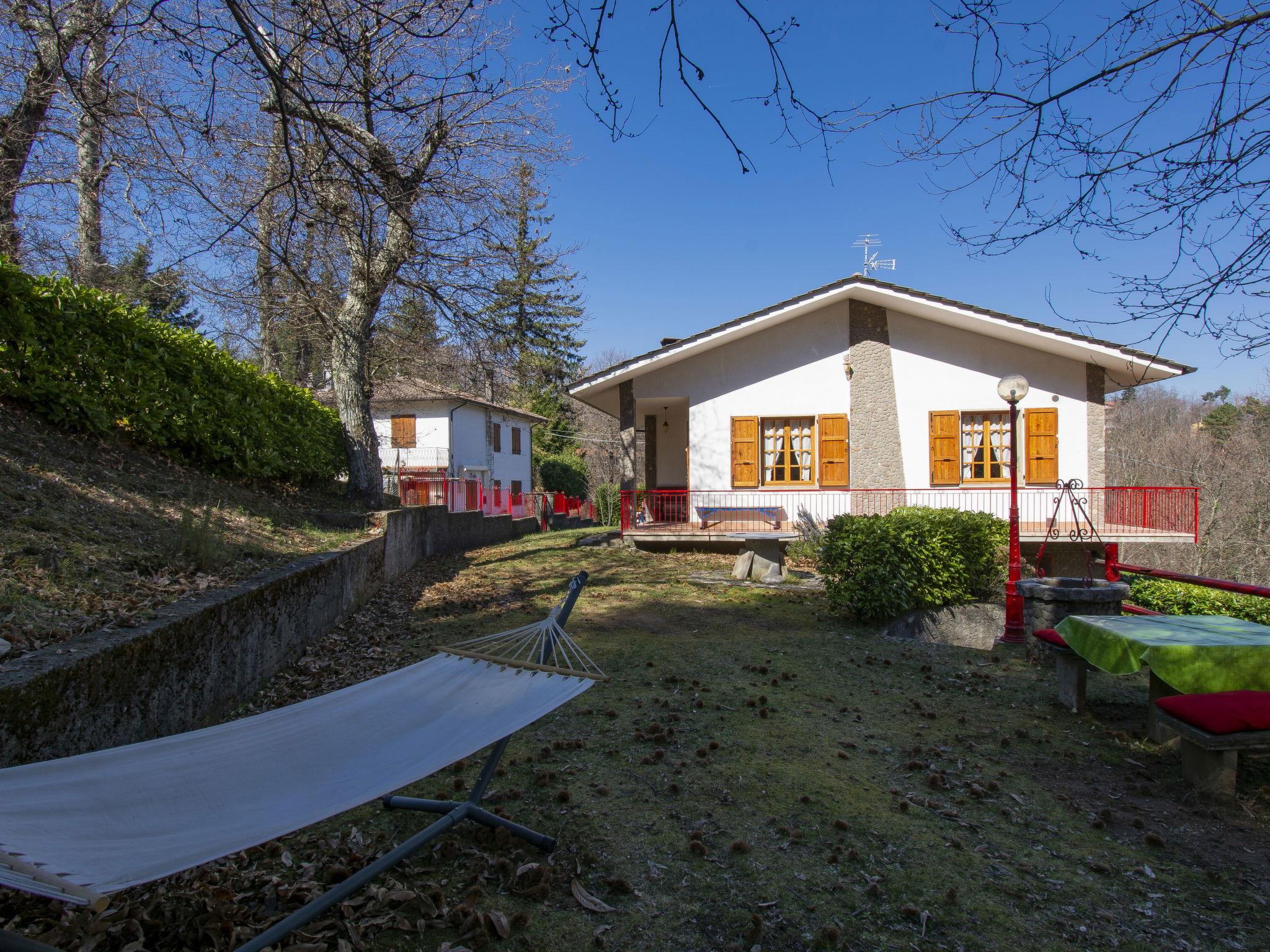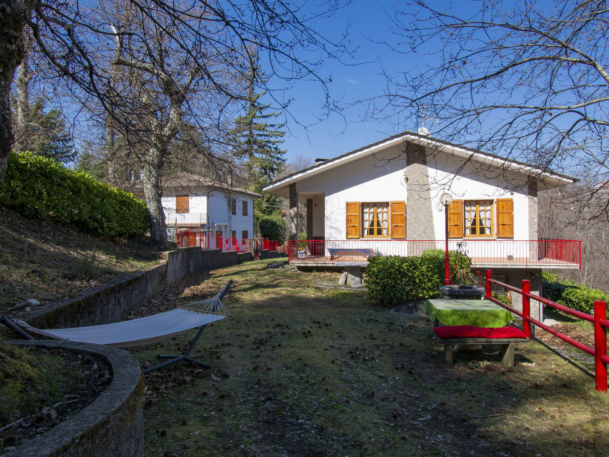 Modern, beautiful house "Vittoria", 469 m a.s.l., surrounded by trees. On the outskirts, 5 km from the centre of Marliana, in a quiet, elevated position, 60 km from the sea, in the countryside. Private: garden 300 m2 (fenced) with flowers and trees. Terrace, parking (for 2 cars) on the premises. Grocery 5 km, restaurant 300 m, bar, bus stop 300 m, sandy beach "Viareggio" 60 km. Nearby attractions: Firenze 50 km, Pistoia 25 km, Lucca 40 km, Pisa 60 km. Hiking paths: Riserva Naturale Acquerino 39 km. Please note: car recommended. Baby equipment on request (included).