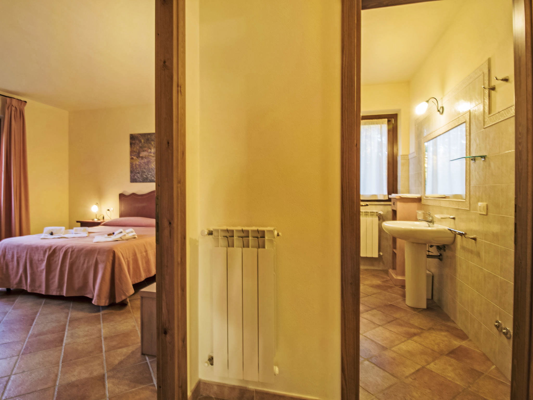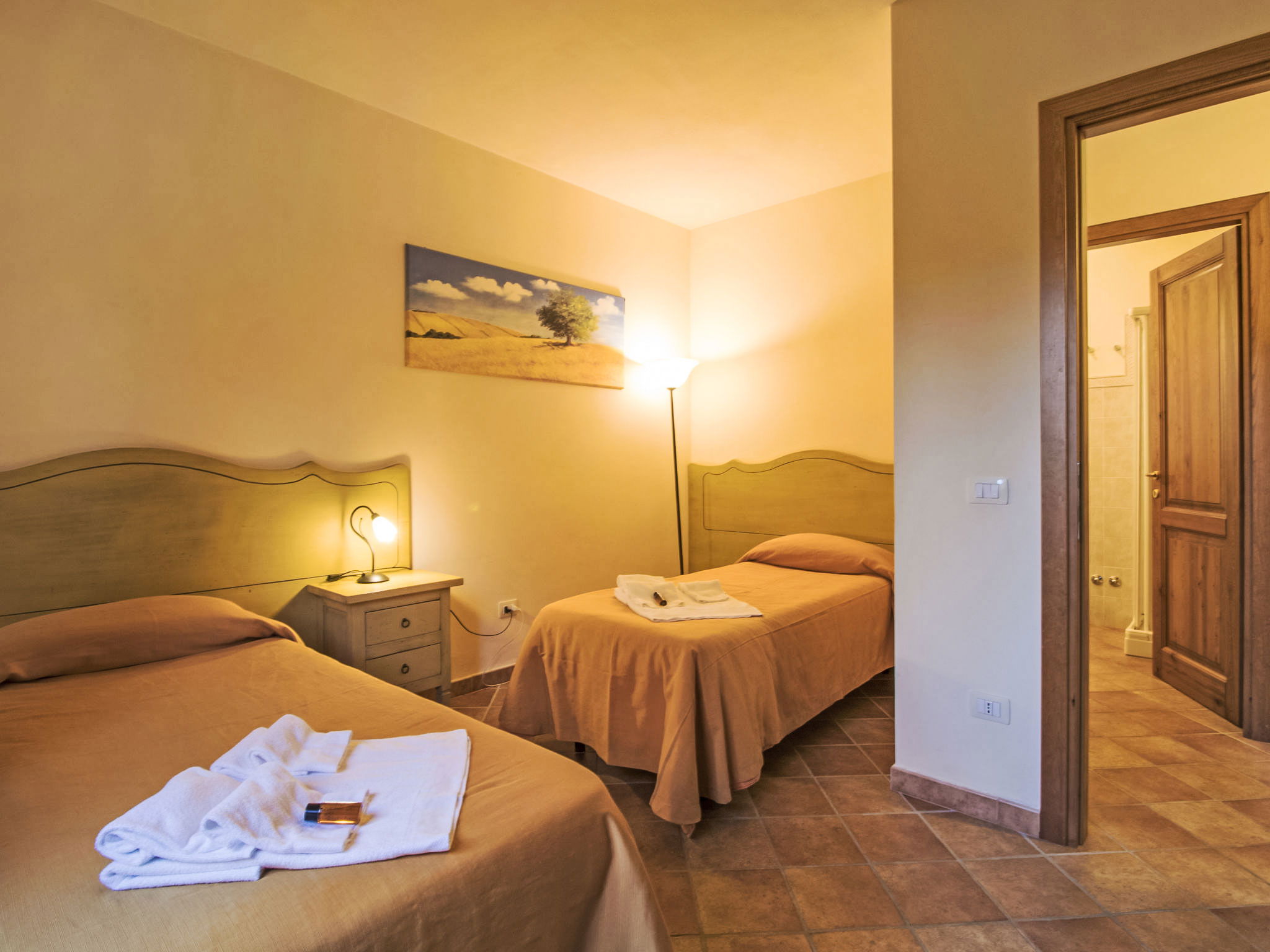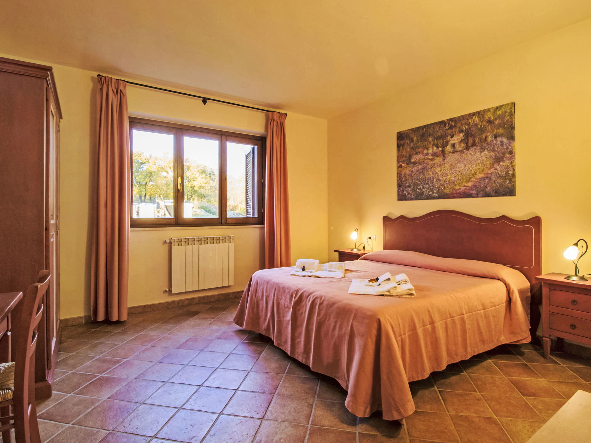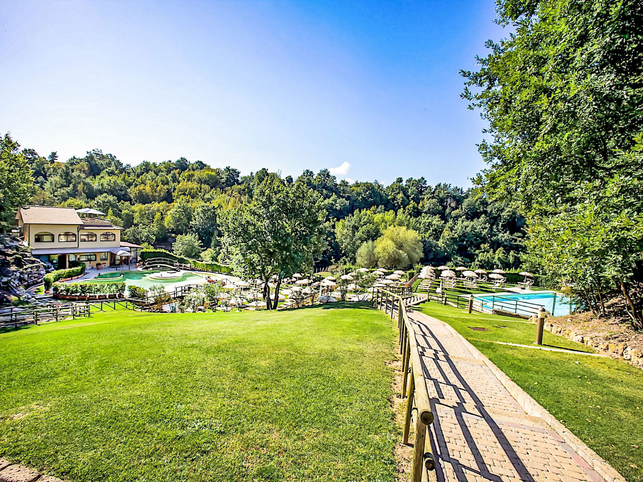 Thermal village with 30 apartments and 10 villas, 2 swimming pools including 1 thermal water from natural springs at 37°C (350m2, irregular shape) open all year round and 1 children´s pool. Every unit with private parasols and loungers in the relaxation area of the pool. Wellness center with face and body treatments and various packages, to be booked on site. Life and bike trail, partner riding school, food and wine tours. The structure develops around a millenary parish church. Beautiful resort "Thermae", 460 m a.s.l.. 10 houses in the residence. 30 apartments in the residence. 3 km from the centre of Sorano, 7 km from the centre of Pitigliano, in a sunny position, 55 km from the sea, in the countryside. For shared use: park 6 ha, 2 swimming pools (17 x 11 m, seasonal availability: 01.Jan. - 31.Dec.) with internal staircase. Unconventional pool shape. Children's pool, outdoor shower, tennis, table tennis, barbecue, children's playground. In the complex: reception, restaurant, bar, WiFi, massage (extra). Hot tub (extra). Sun terrace, laundry, washing machine (for shared use, extra), heating to be paid on the spot, heating available only from 01.Nov. - 15.Apr., bicycles available (extra). Linen change weekly. Room cleaning on request (extra). Breakfast and half board on request (extra). Motor access to the house. Parking at 200 m. E-charging station. Grocery 3 km, supermarket 7 km, restaurant 3 km, bus stop 300 m, sandy beach 55 km, bathing lake "Bolsena" 25 km. Riding stable 800 m. Nearby attractions: Grotte Di Castro 22 km, Saturnia 28 km, Capalbio 52 km, Monte Argentario 45 km. Well-known lakes can easily be reached: Bolsena 25 km. Please note: car recommended. Suitable for families. The complex has night security. Residence with electric gates. The photograph shows a typical example. Obligation to wear bathing caps.