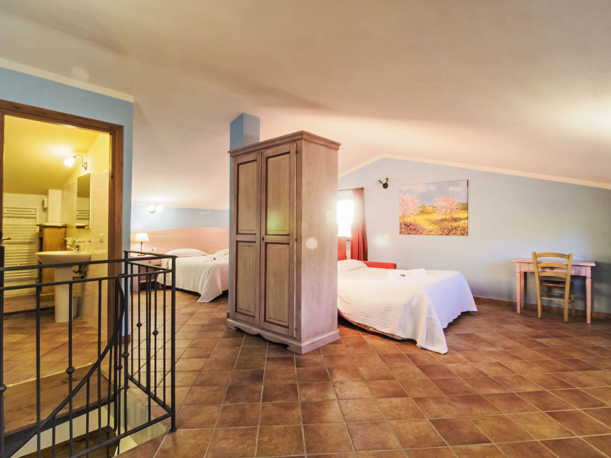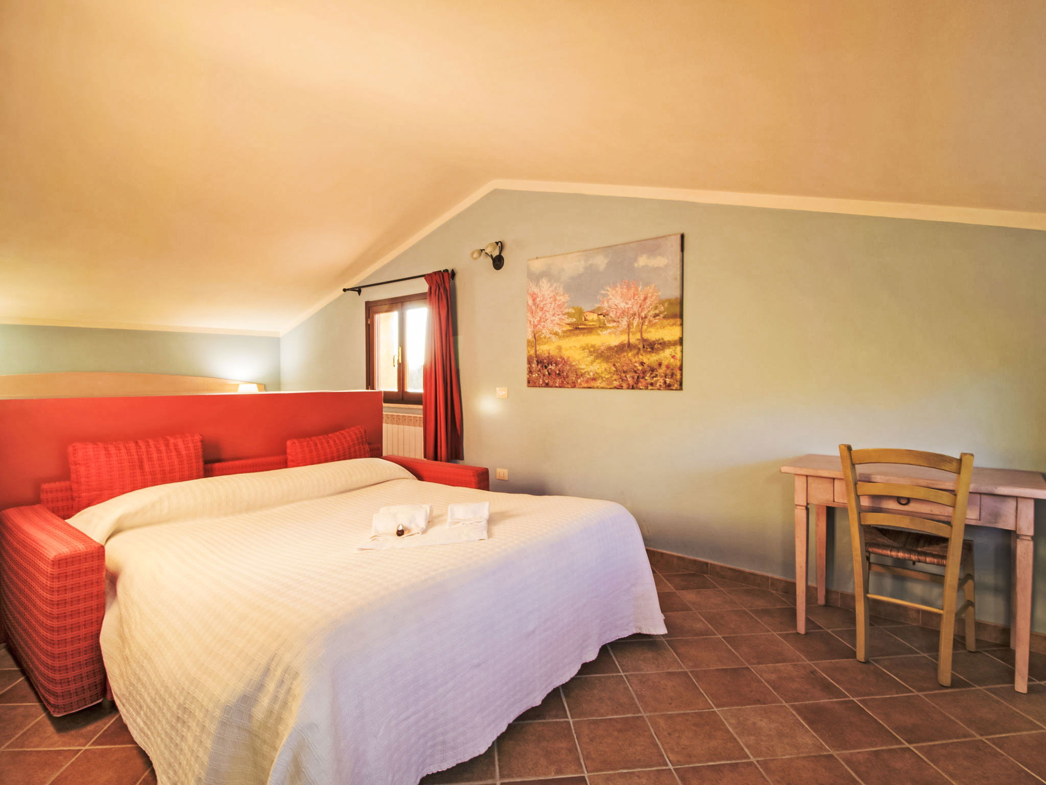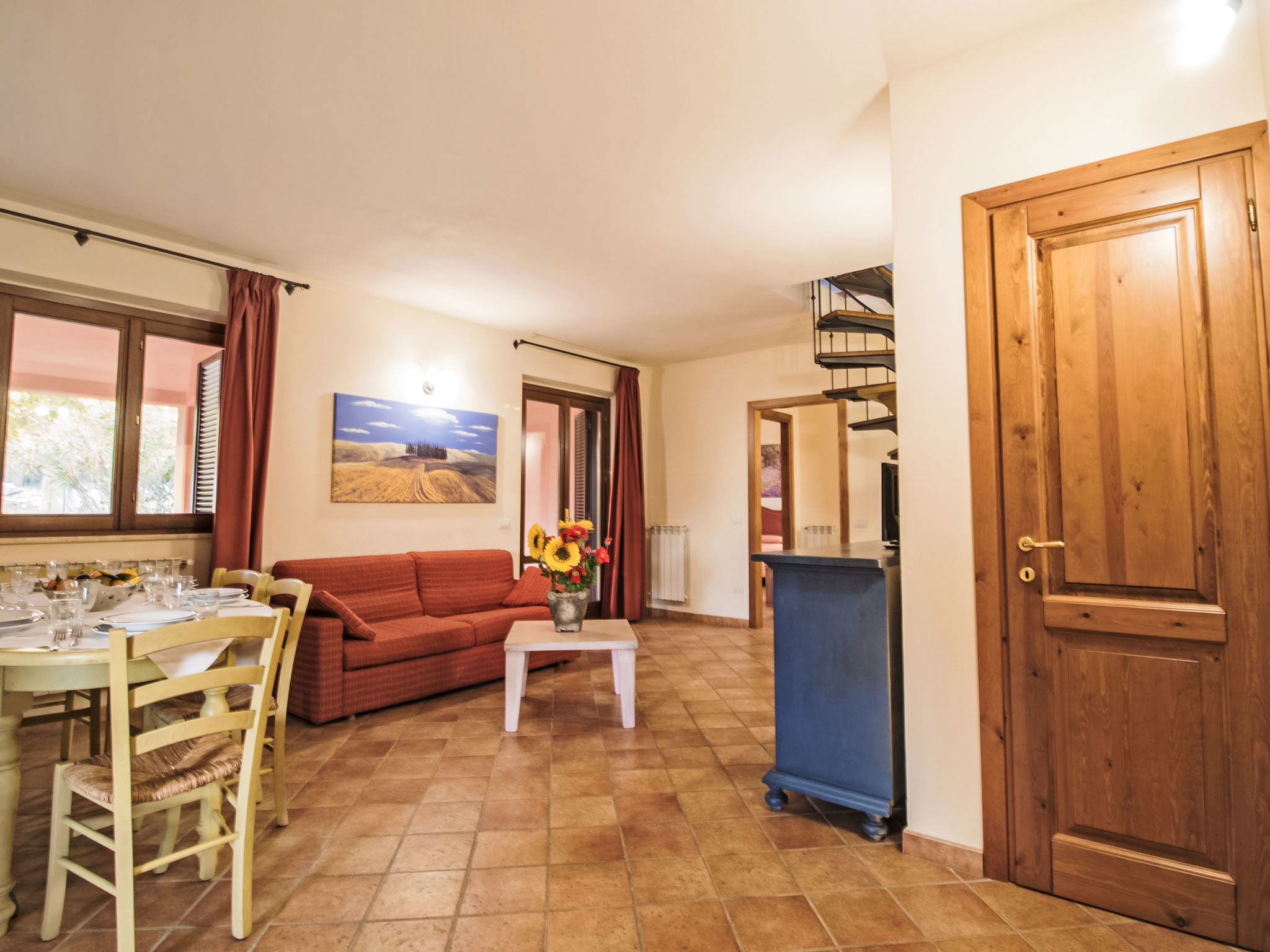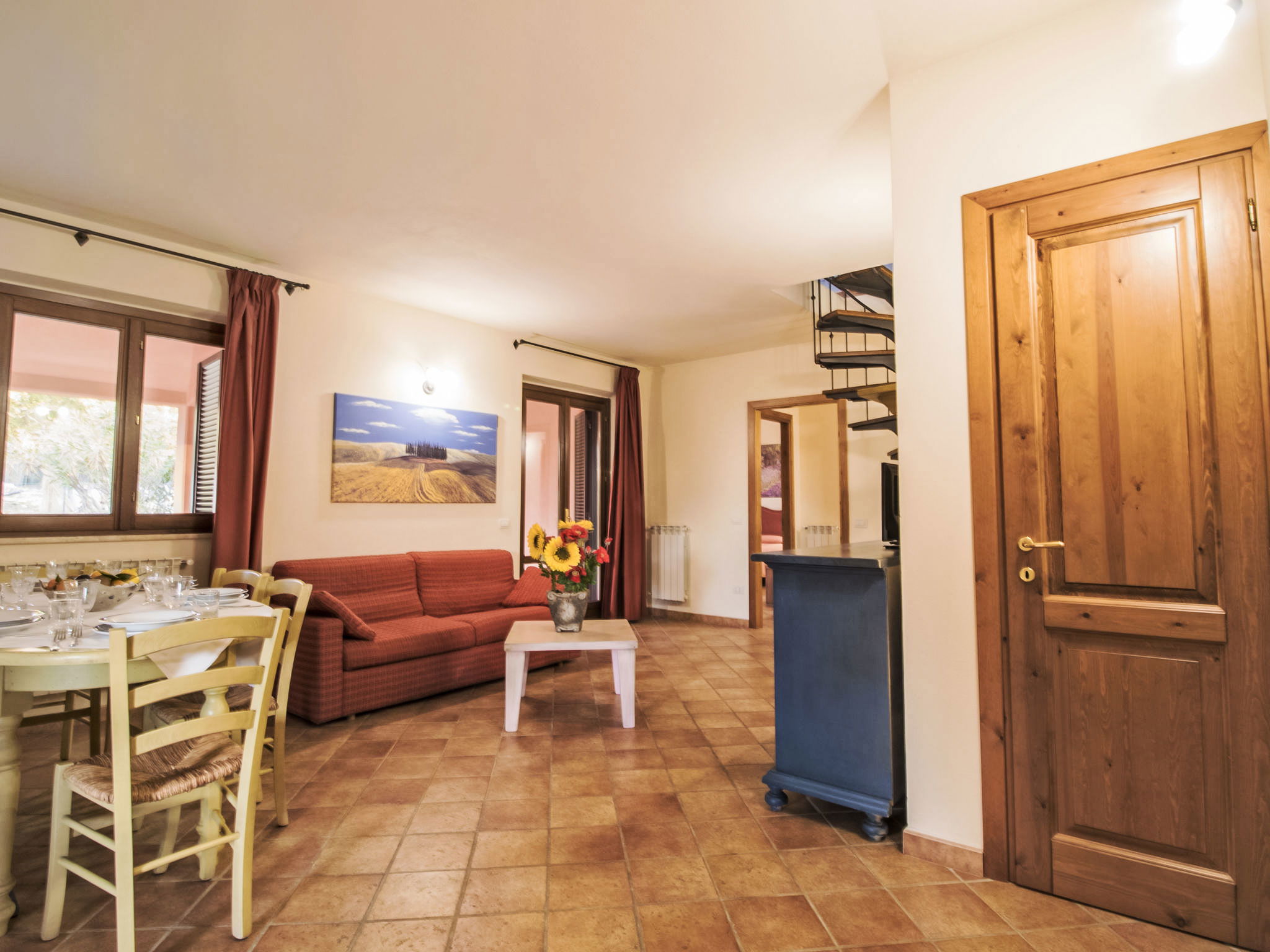 Thermal village with 30 apartments and 10 villas, 2 swimming pools including 1 thermal water from natural springs at 37°C (350m2, irregular shape) open all year round and 1 children´s pool. Every unit with private parasols and loungers in the relaxation area of the pool. Wellness center with face and body treatments and various packages, to be booked on site. Life and bike trail, partner riding school, food and wine tours. The structure develops around a millenary parish church. Beautiful resort "Thermae", 460 m a.s.l.. 10 houses in the residence. 30 apartments in the residence. 3 km from the centre of Sorano, 7 km from the centre of Pitigliano, in a sunny position, 55 km from the sea, in the countryside. For shared use: park 6 ha, 2 swimming pools (17 x 11 m, seasonal availability: 01.Jan. - 31.Dec.) with internal staircase. Unconventional pool shape. Children's pool, outdoor shower, tennis, table tennis, barbecue, children's playground. In the complex: reception, restaurant, bar, WiFi, massage (extra). Hot tub (extra). Sun terrace, laundry, washing machine (for shared use, extra), heating to be paid on the spot, heating available only from 01.Nov. - 15.Apr., bicycles available (extra). Linen change weekly. Room cleaning on request (extra). Breakfast and half board on request (extra). Motor access to the house. Parking at 200 m. E-charging station. Grocery 3 km, supermarket 7 km, restaurant 3 km, bus stop 300 m, sandy beach 55 km, bathing lake "Bolsena" 25 km. Riding stable 800 m. Nearby attractions: Grotte Di Castro 22 km, Saturnia 28 km, Capalbio 52 km, Monte Argentario 45 km. Well-known lakes can easily be reached: Bolsena 25 km. Please note: car recommended. Suitable for families. The complex has night security. Residence with electric gates. The photograph shows a typical example. Obligation to wear bathing caps.