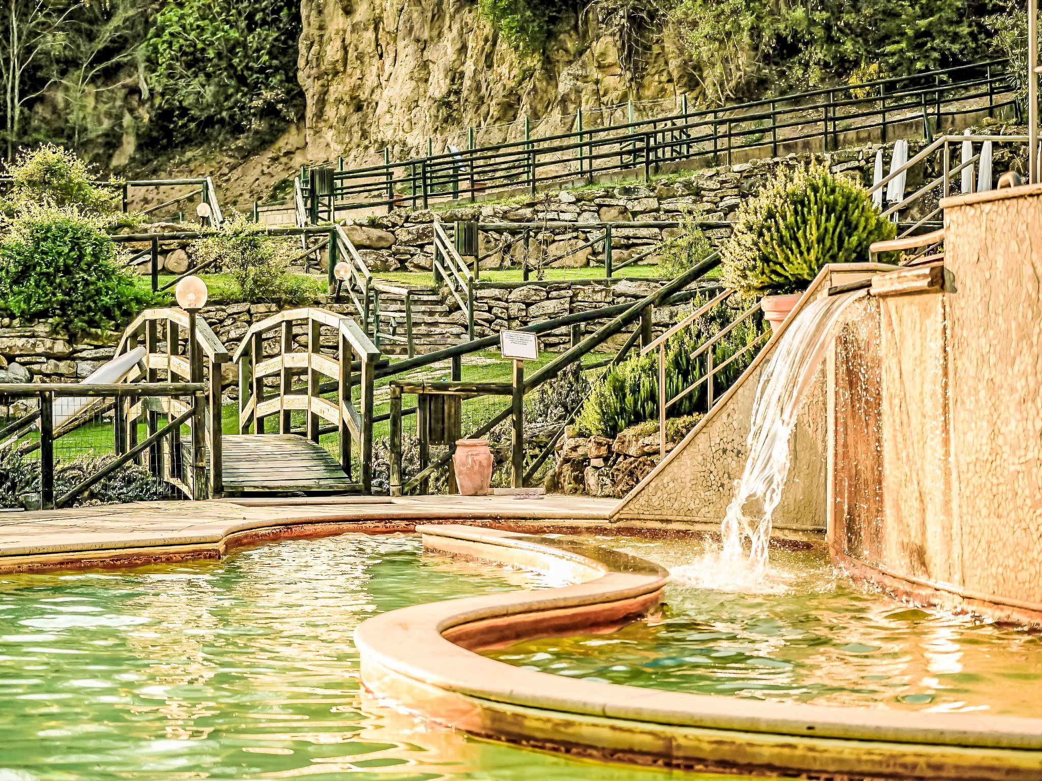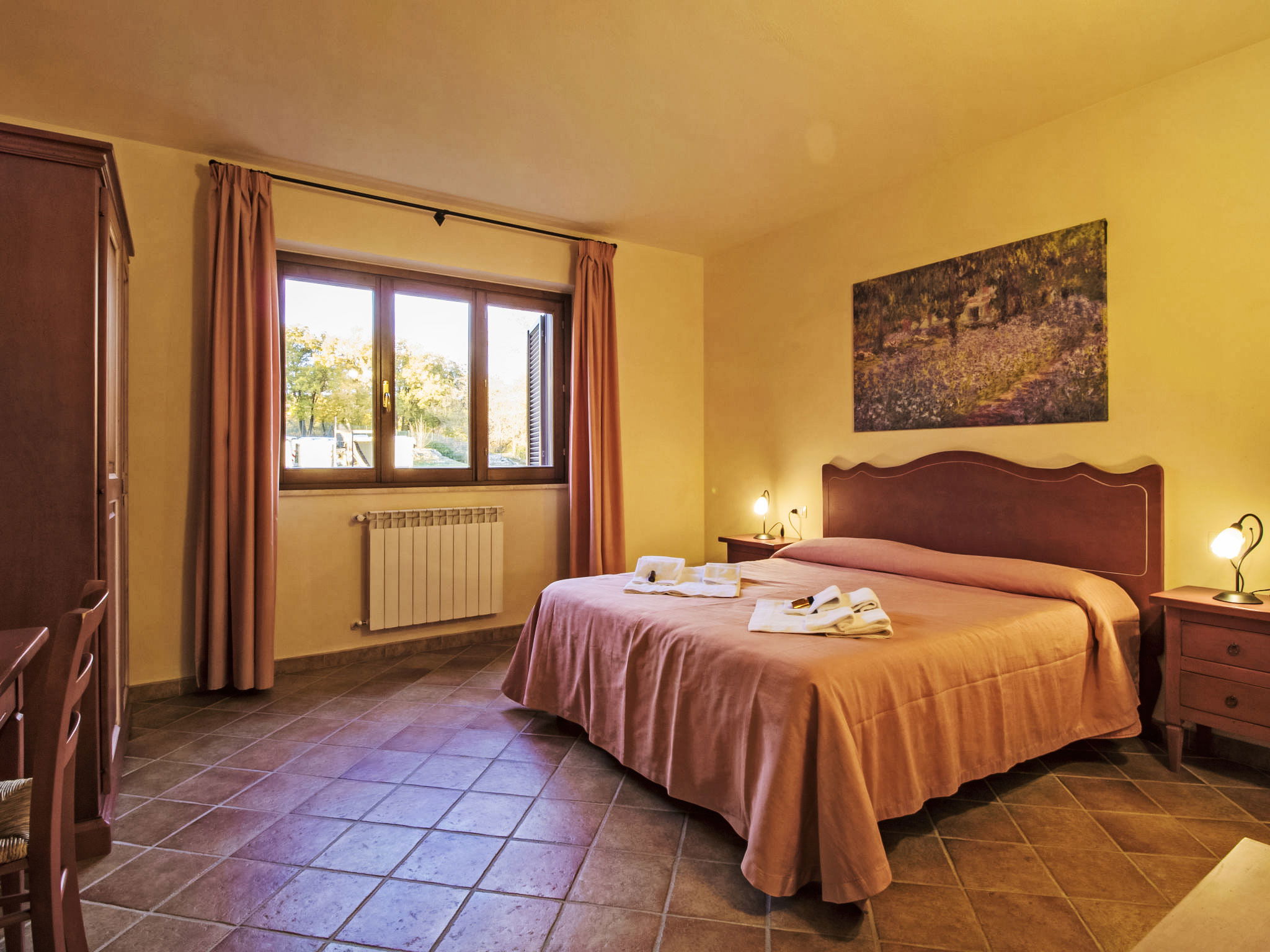 Thermal village with 30 apartments and 10 villas, 2 swimming pools including 1 thermal water from natural springs at 37°C (350m2, irregular shape) open all year round and 1 children´s pool. Every unit with private parasols and loungers in the relaxation area of the pool. Wellness center with face and body treatments and various packages, to be booked on site. Life and bike trail, partner riding school, food and wine tours. The structure develops around a millenary parish church. Beautiful resort "Thermae", 460 m a.s.l.. 10 houses in the residence. 30 apartments in the residence. 3 km from the centre of Sorano, 7 km from the centre of Pitigliano, in a sunny position, 55 km from the sea, in the countryside. For shared use: park 6 ha, 2 swimming pools (17 x 11 m, seasonal availability: 01.Jan. - 31.Dec.) with internal staircase. Unconventional pool shape. Children's pool, outdoor shower, tennis, table tennis, barbecue, children's playground. In the complex: reception, restaurant, bar, WiFi, massage (extra). Hot tub (extra). Sun terrace, laundry, washing machine (for shared use, extra), heating to be paid on the spot, heating available only from 01.Nov. - 15.Apr., bicycles available (extra). Linen change weekly. Room cleaning on request (extra). Breakfast and half board on request (extra). Motor access to the house. Parking at 200 m. E-charging station. Grocery 3 km, supermarket 7 km, restaurant 3 km, bus stop 300 m, sandy beach 55 km, bathing lake "Bolsena" 25 km. Riding stable 800 m. Nearby attractions: Grotte Di Castro 22 km, Saturnia 28 km, Capalbio 52 km, Monte Argentario 45 km. Well-known lakes can easily be reached: Bolsena 25 km. Please note: car recommended. Suitable for families. The complex has night security. Residence with electric gates. The photograph shows a typical example. Obligation to wear bathing caps.