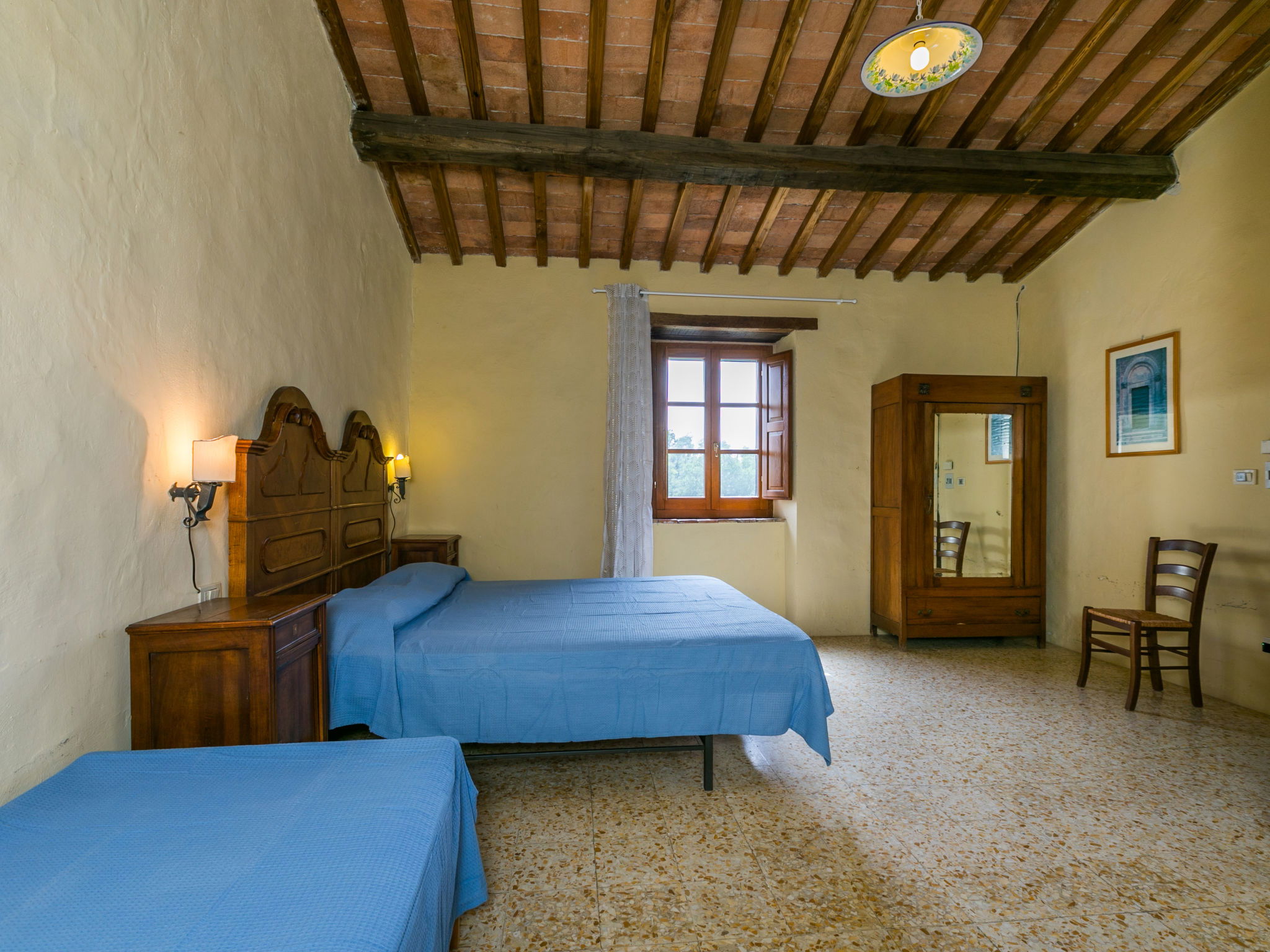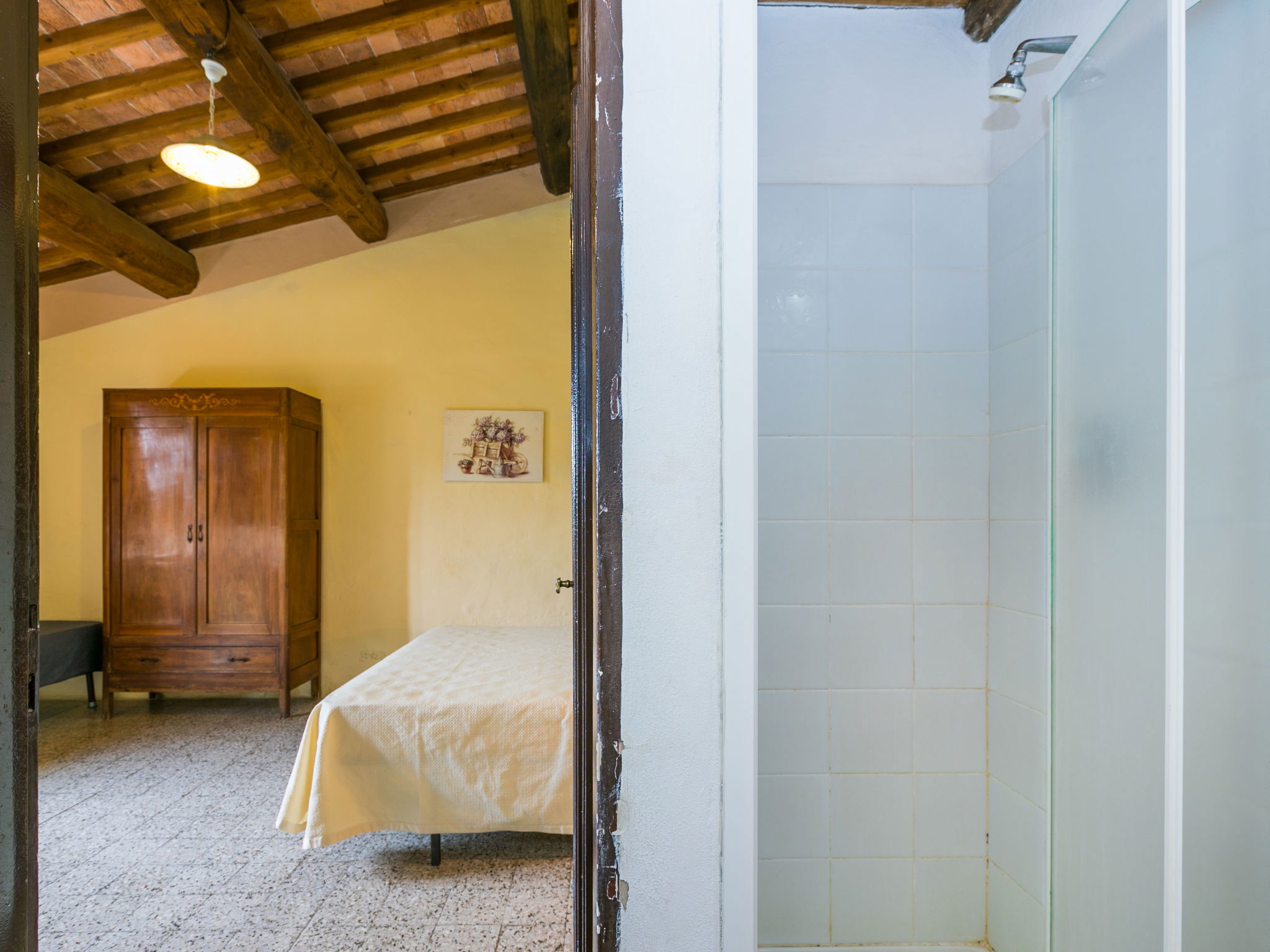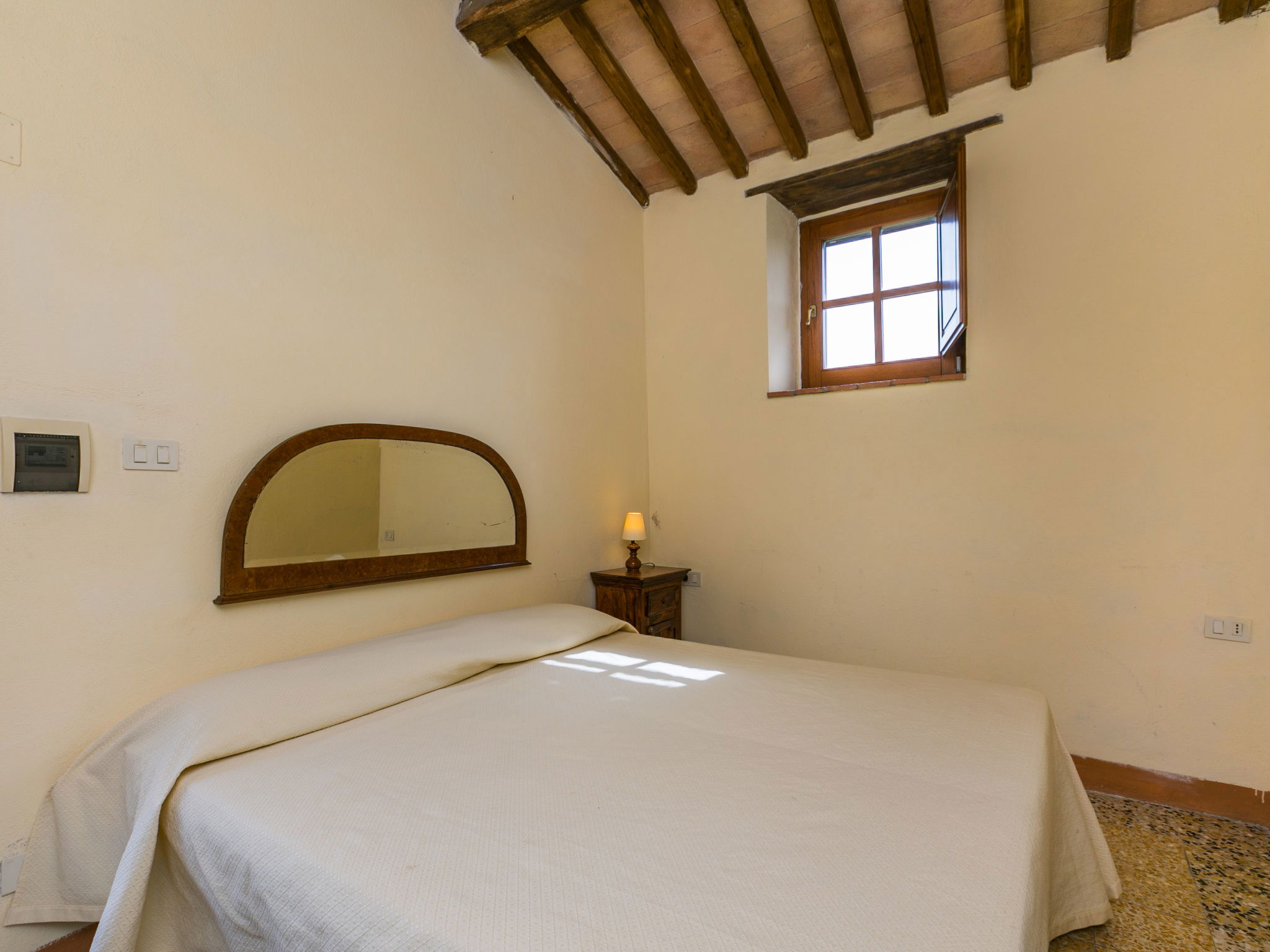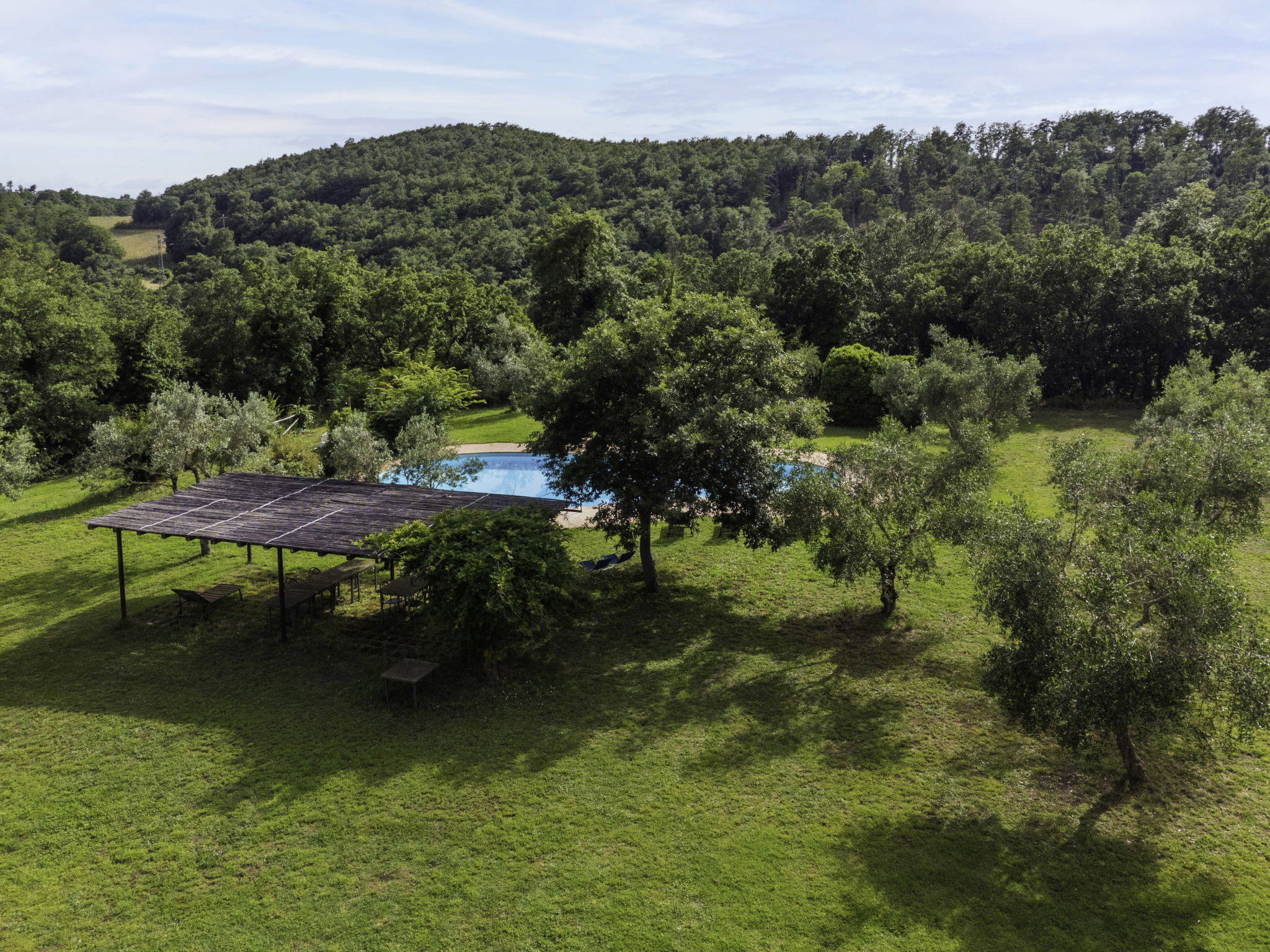 Large, rustic house "Il Piccione", 3 storeys, detached from the 14th century, surrounded by trees and meadows. 1.5 km from the centre of Sorano, 9 km from the centre of Pitigliano, in a secluded, quiet position, 50 m from the edge of the forest, 60 km from the sea, in the countryside. Private: property 12'000 m2 with lawn and trees, beautiful garden to relax, swimming pool (18 x 8 m, depth 120 cm, seasonal availability: 01.Jun. - 15.Oct.). Outdoor shower, pergola, garden furniture, barbecue. In the house: washing machine (extra). 200 m long motor access (via unmade road). Parking on the premises. Shop 1.5 km, grocery 1.5 km, supermarket 9 km, restaurant 1.9 km, bar 1.7 km, sandy beach "Albinia" 65 km, thermal baths "Terme di Sorano" 440 m, bathing lake "Bolsena" 25 km. Golf course (18 hole) 30 km, riding stable 6 km, walking paths from the house 1 km. Nearby attractions: Sovana 11 km, Saturnia 34 km, Orvieto 49 km, Viterbo 54 km, Val d´Orcia 40 km. Well-known lakes can easily be reached: Bolsena 25 km. Hiking paths: Mountain-bike 1.5 km. Please note: car recommended.
