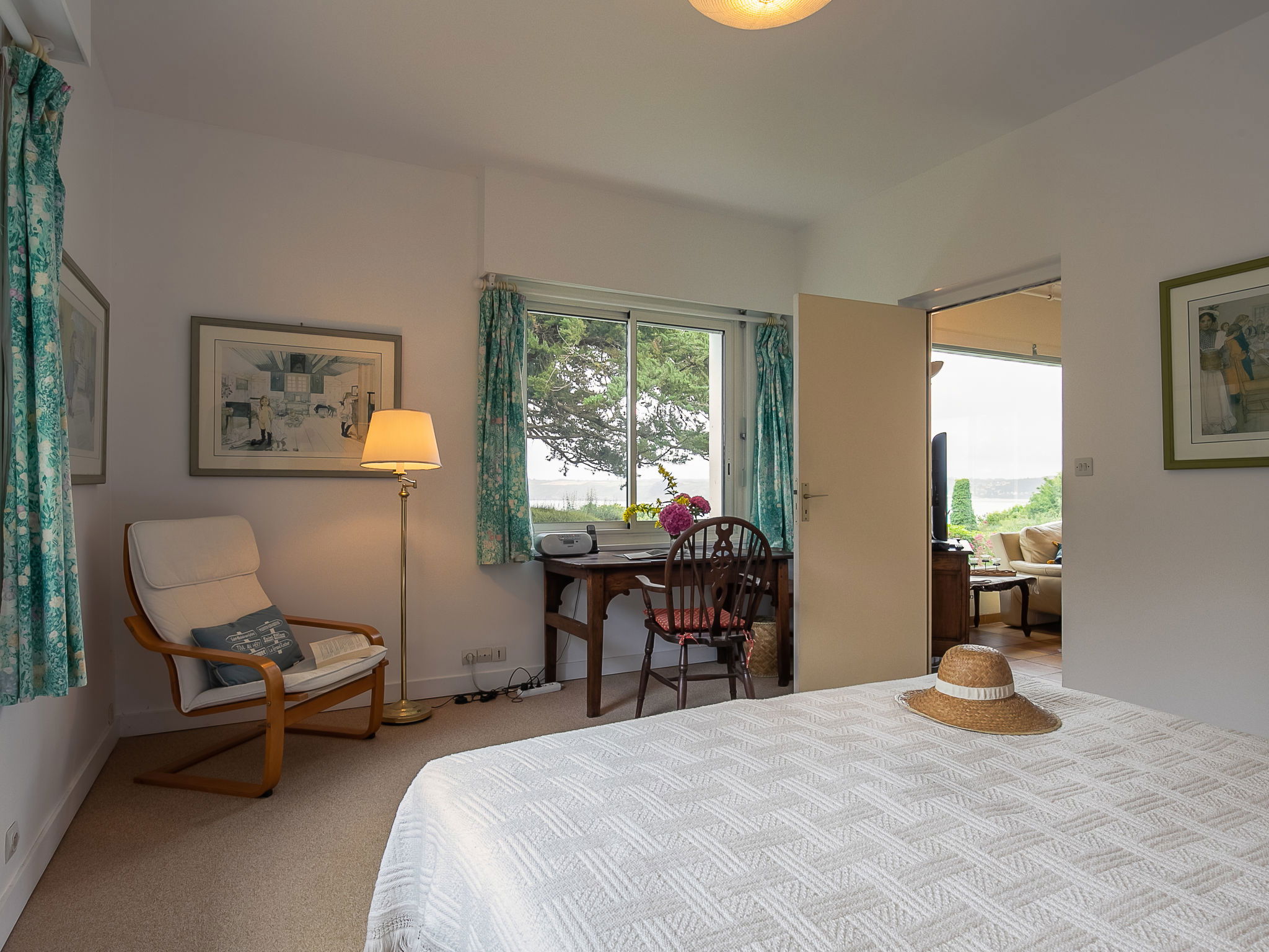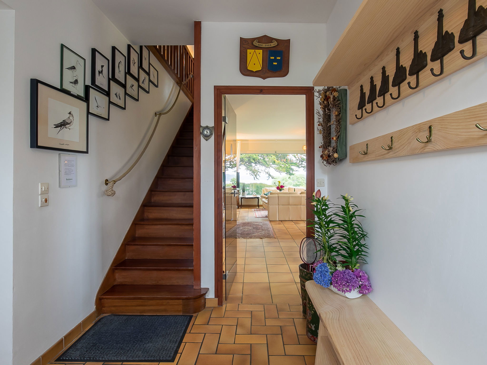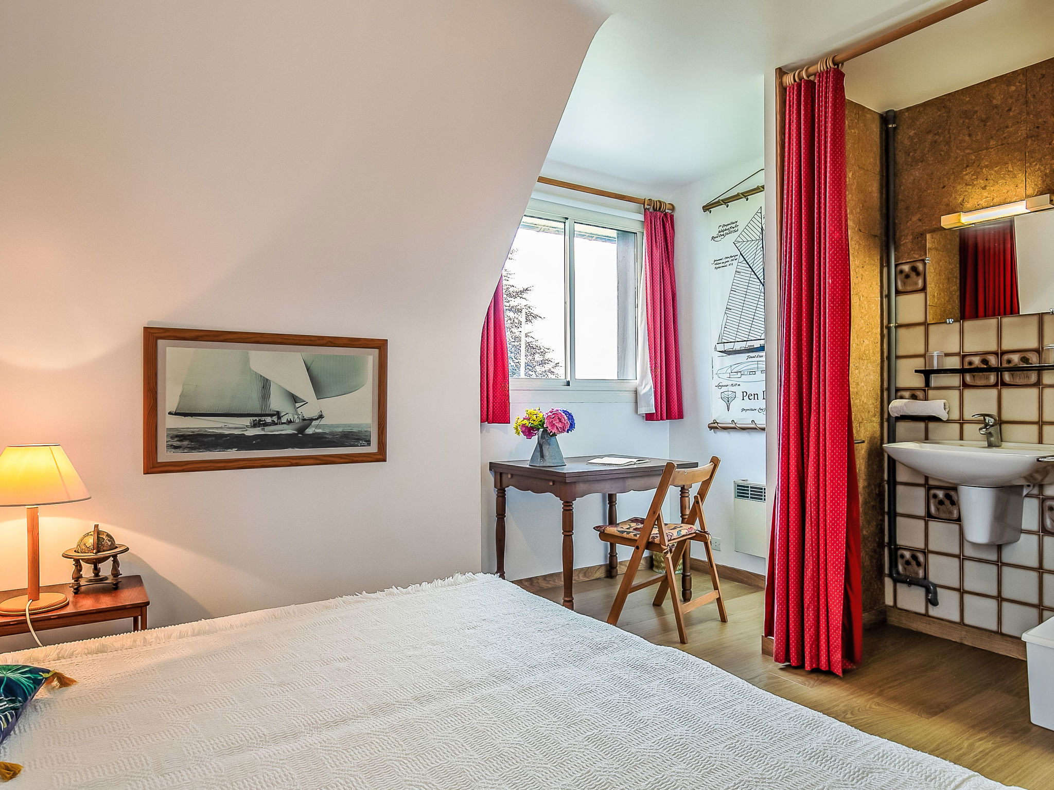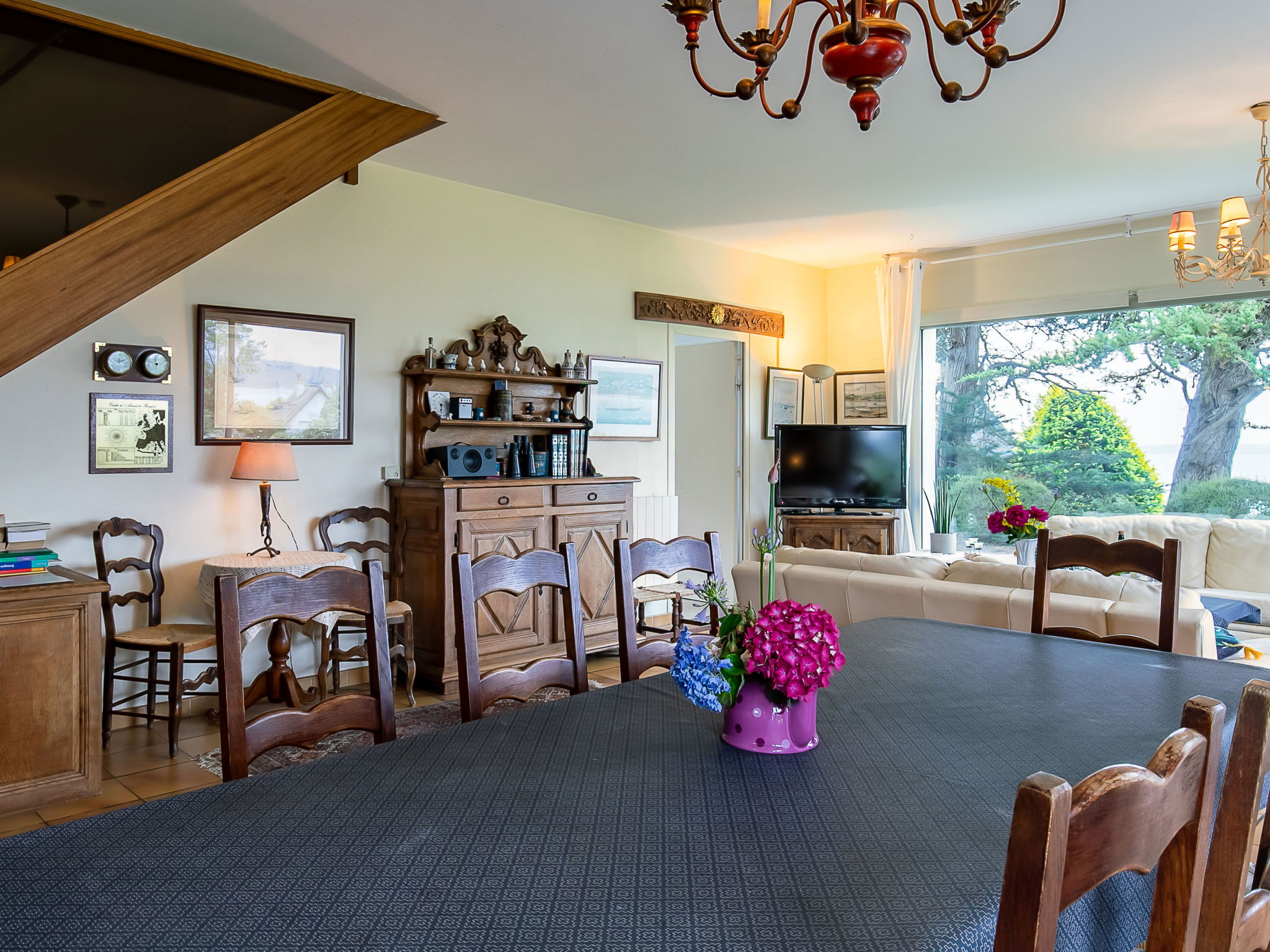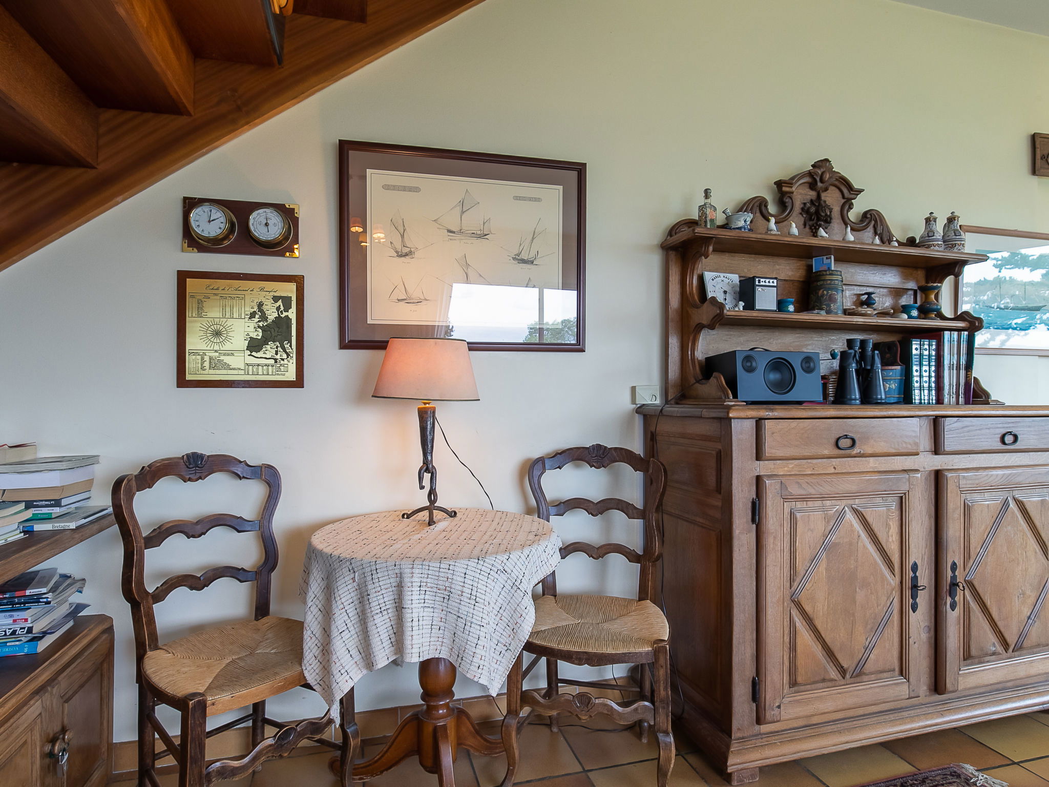 "Ker Svea", 7-room house 240 m2 on 2 levels. Beautiful and cosy furnishings: living/dining room with Scandinavian wood stove, dining table and satellite TV (flat screen), radio. Exit to the garden, to the terrace. 1 double bedroom with bath/WC and double hand-basin. Open kitchen (oven, dishwasher, 4 ceramic glass hob hotplates, freezer, grill, electric coffee machine). Sep. WC. Upper floor: 2 rooms with sloping ceilings, each room with 1 french bed (140 cm, length 190 cm), hand-basin. 1 room with sloping ceilings with 2 beds (90 cm, length 190 cm), hand-basin. 2 rooms with sloping ceilings, each room with 2 beds (90 cm, length 190 cm). Bathroom, shower, sep. WC. Electric heating. Terrace. Terrace furniture, barbecue (portable), deck chairs (3). Very beautiful panoramic view of the sea and the garden. Facilities: washing machine, dryer, iron, baby cot, hair dryer. Internet (WiFi, free). Please note: non-smoking house. Maximum 2 pets/ dogs allowed. Smoke alarm.