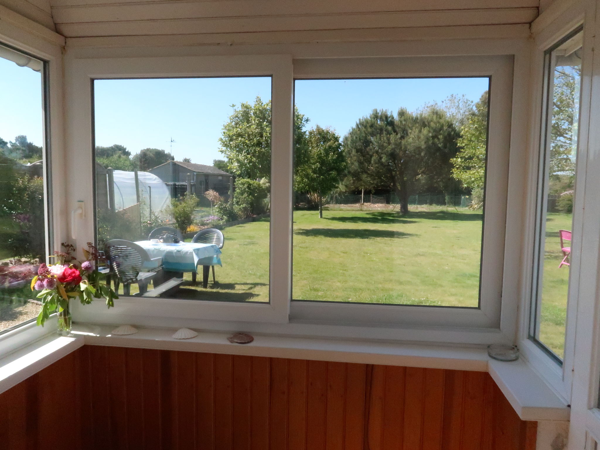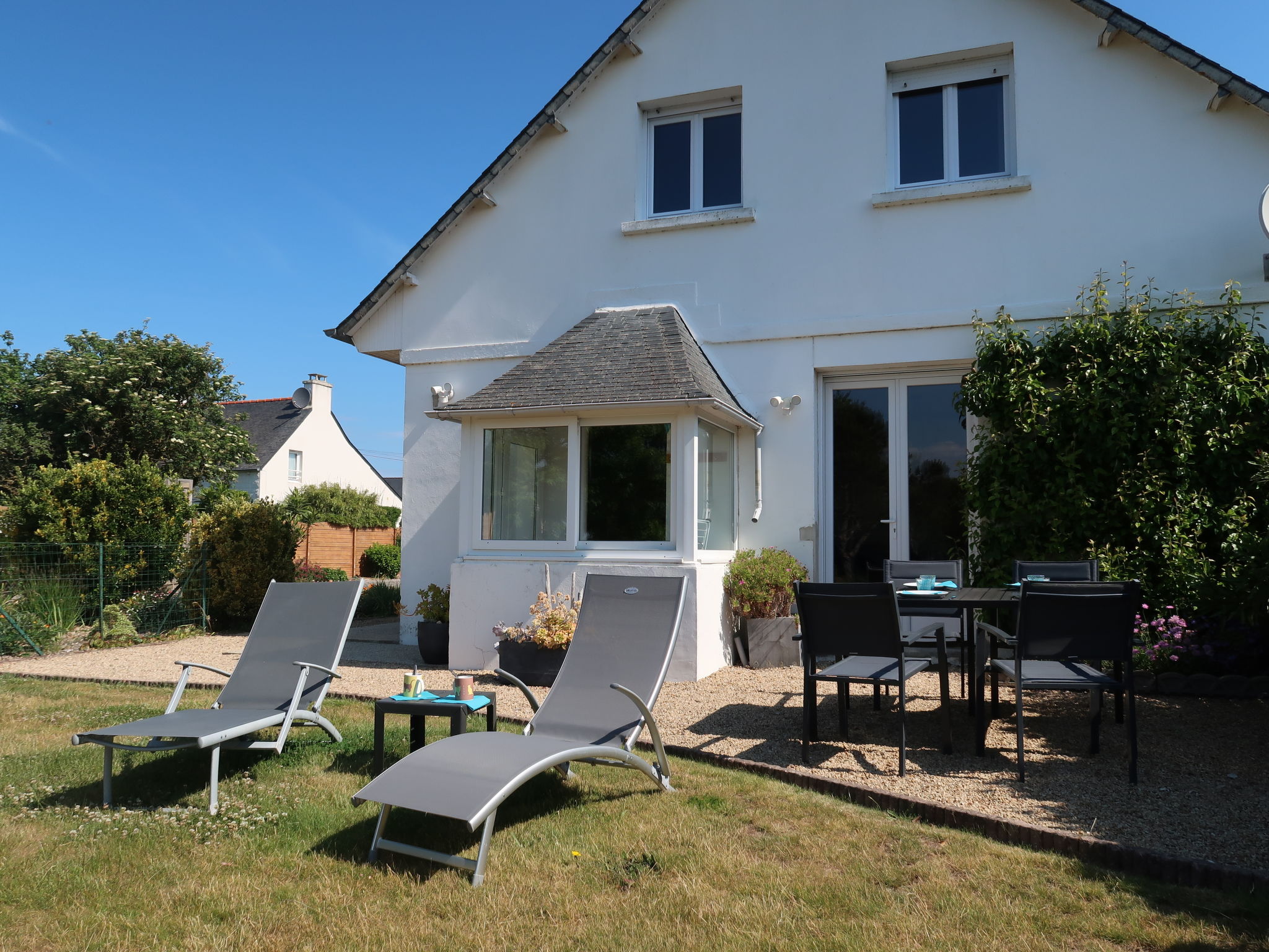 "Penn Ar Bed", 3-room house 65 m2 on 2 levels. Renovated in 2020, cosy furnishings: living/dining room with dining table and satellite TV (flat screen). Exit to the garden. Open kitchen (oven, dishwasher, 3 induction hot plates, toaster, kettle, microwave, freezer, electric coffee machine, Capsules for coffee machine (Cafetière à dosettes) extra). Shower/WC. Upper floor: 1 room with sloping ceilings with 1 french bed (160 cm, length 200 cm). 1 room with sloping ceilings with 2 beds (90 cm, length 190 cm). Sep. WC. Electric heating. Garden, south facing position. Terrace furniture, barbecue (portable), deck chairs (2). Facilities: washing machine, children's high chair, baby cot, hair dryer. Internet (WiFi, free). Please note: non-smoking house. Maximum 1 pet/ dog allowed. Private entrance, smoke alarm. Offer by a private individual according to Art. 155, IV of CGI.