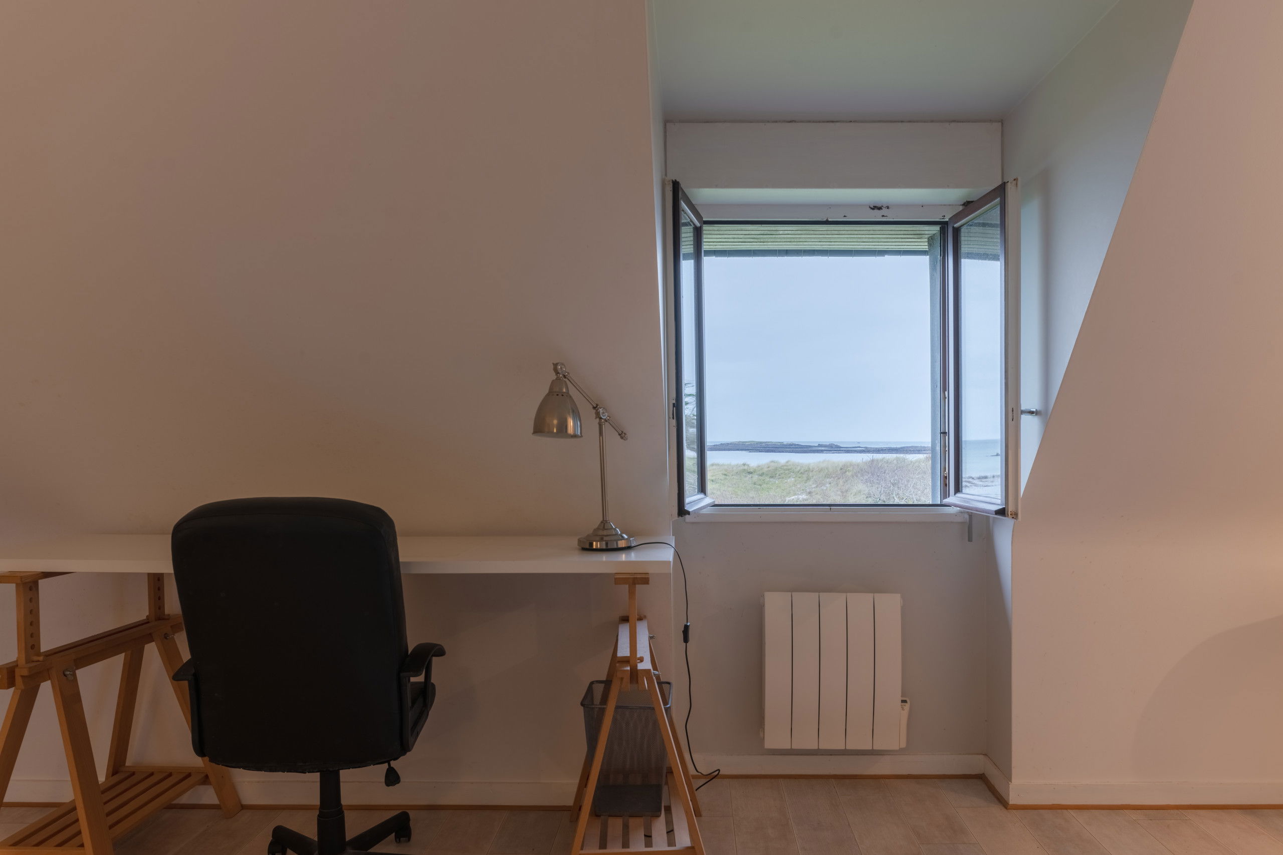 As soon as you enter, you will be captivated by the magnificent sea view of the living room. The large viewing room consists of a cosy living room with its fireplace, ideal for convivial moments, a bright dining room and an open kitchen, perfectly equipped. On the ground floor, there is also a bedroom with a Queen Size bed (160x200), a bathroom with a bathtub and toilets.