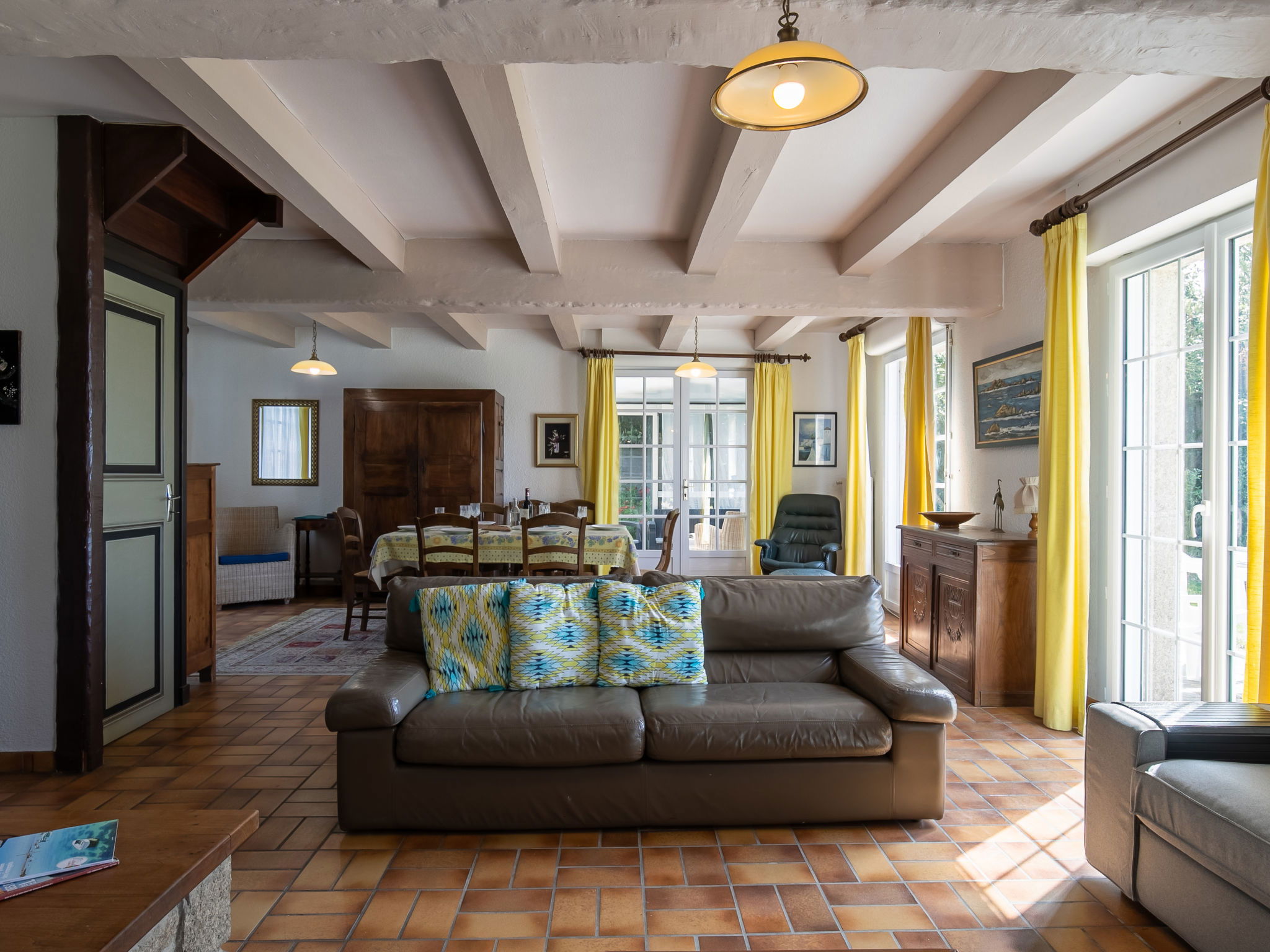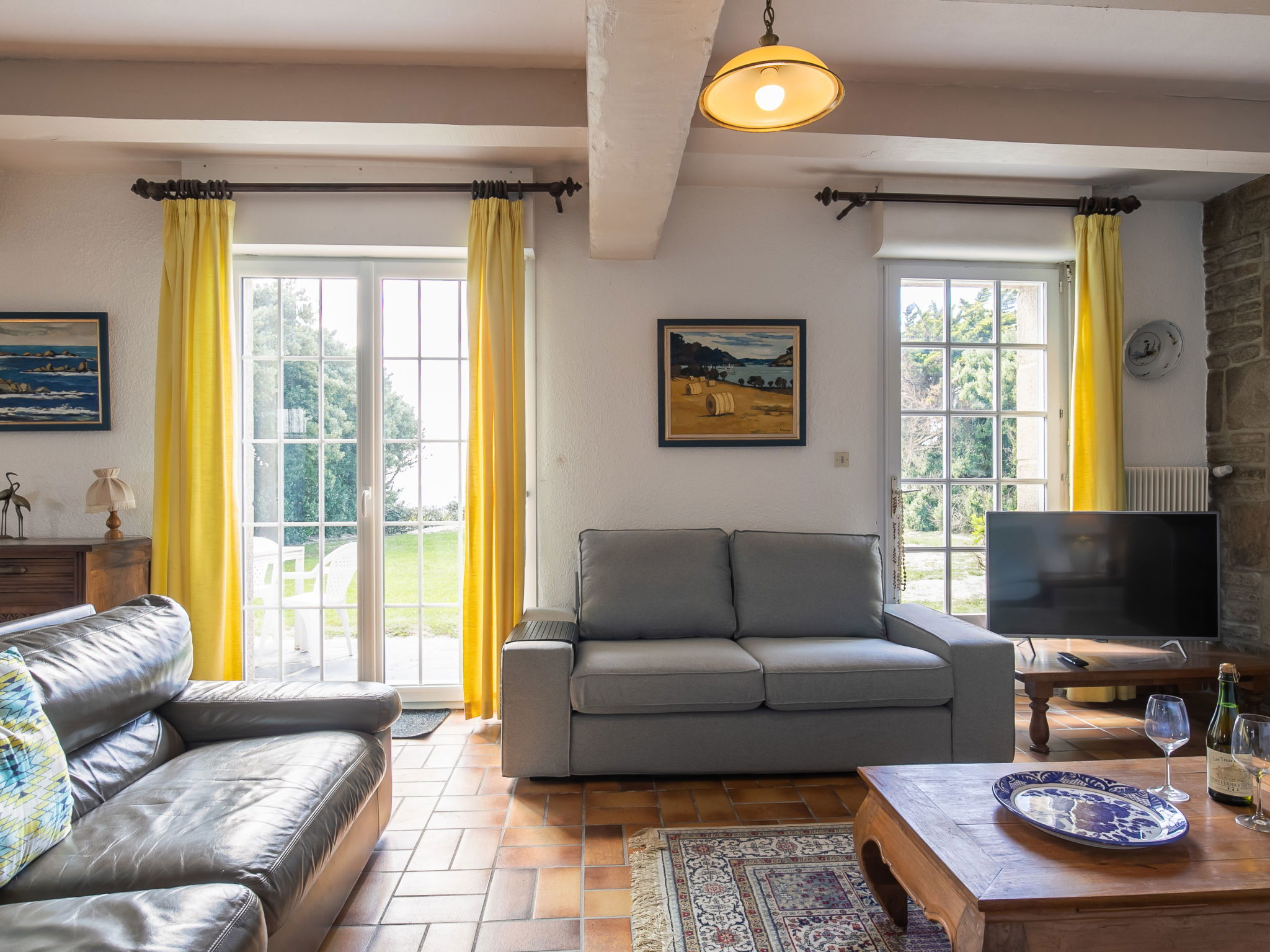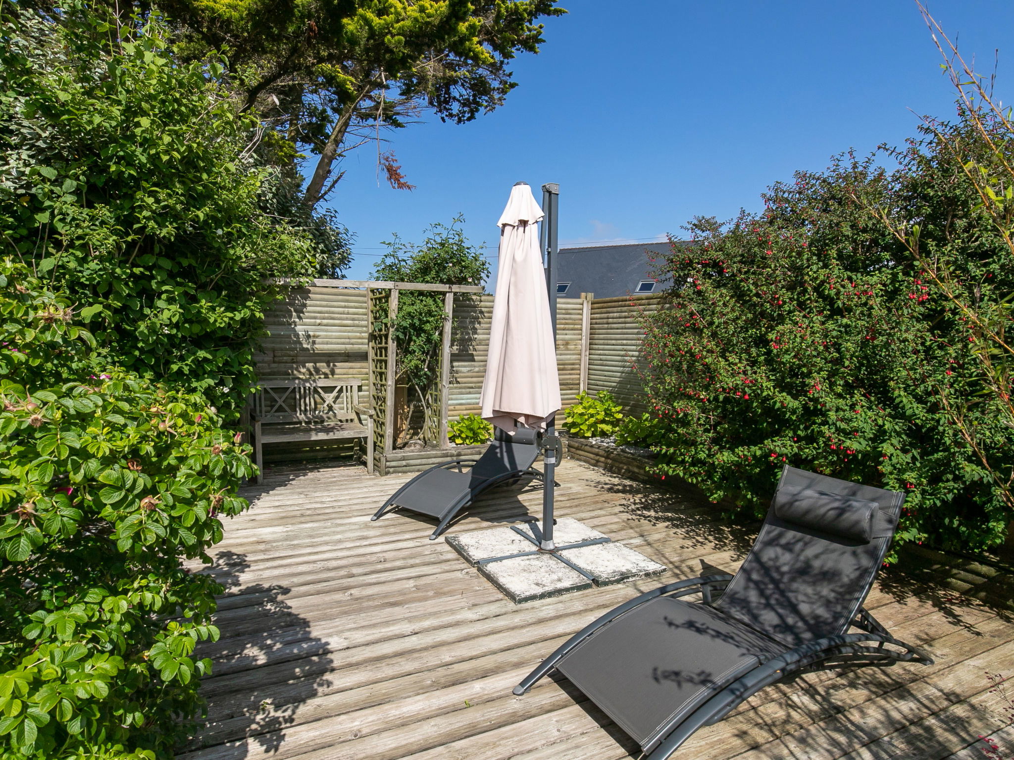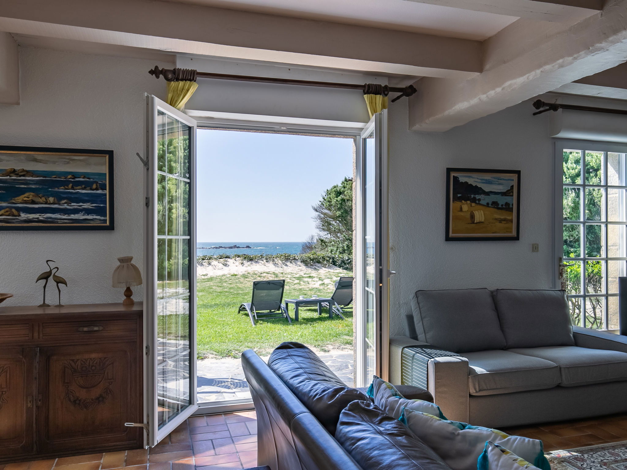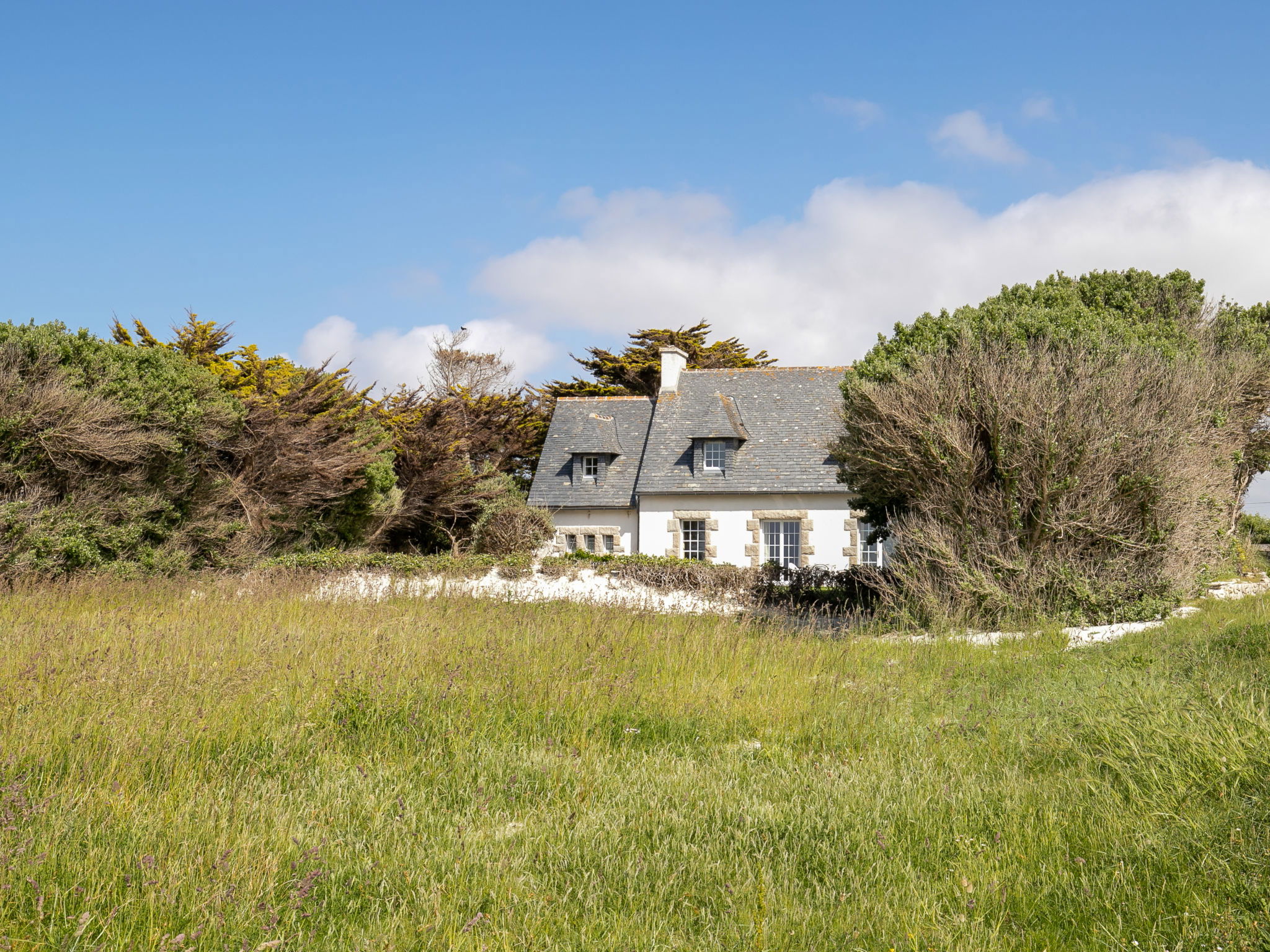 Beautiful single-family house "La Rejeane". 3.5 km from the centre of Plouescat, 50 m from the sea, from the beach, direct access to the beach. Private: garden with 2'000 m2 wildlife garden, natural garden, parking on the premises. Shop 3.5 km, supermarket 4.4 km, restaurant 3.5 km, bakery 3.5 km, bus stop 3.5 km, sandy beach "Plage Le Menfig" 50 m, indoor swimming pool 20 km, thermal baths "Thalasso Roscoff" 23 km. Marina 2 km, golf course (9 hole) 5 km, surf school 4 km, sailing school 4 km, walking paths from the house 50 m. Nearby attractions: Reserve ornithologique Keremma 10 km, château de Kerjean 13 km, Roscoff, jardin exotique et Île de Batz 23 km, Morlaix 36 km, Oceanopolis Brest 56 km.