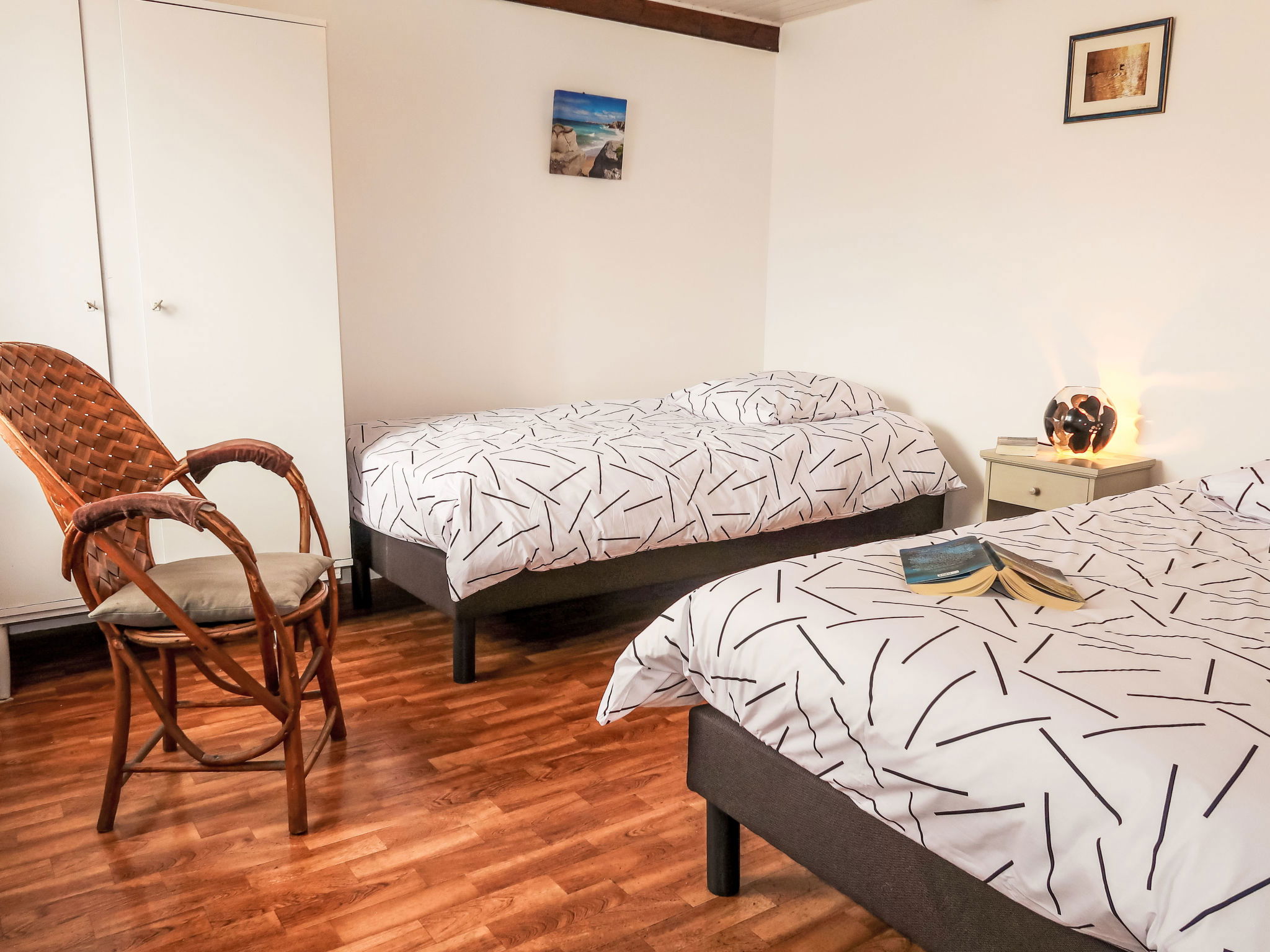 "Ti an Naod", 2-room house 30 m2. Object suitable for 2 adults. Simple furnishings: living/dining room with dining table and electric heater. 1 room with 2 beds (90 cm, length 200 cm). Kitchenette (oven, 4 gas rings, kettle, microwave, electric coffee machine) with electric heater. Shower/WC. Please note: non-smoking house. Maximum 1 pet/ dog allowed. Smoke alarm. 29206 0000 16UR