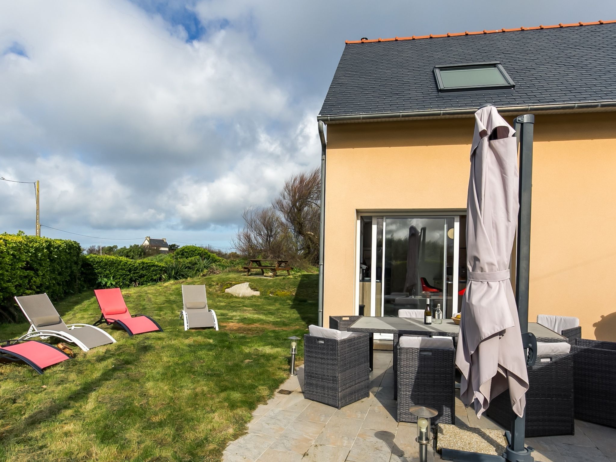 "Ty Frouden", 5-room house 140 m2. Spacious, beautiful and cosy furnishings: living room 25 m2 with TV (flat screen). Exit to the terrace. Large living/dining room 40 m2 with dining table. Open kitchen (oven, dishwasher, 4 induction hot plates, toaster, kettle, microwave, freezer, electric coffee machine, Capsules for coffee machine (senseo) extra) with bar, dining nook. Exit to the terrace. Bath/WC. Upper floor: 1 room with 1 french bed (160 cm, length 200 cm). 1 room with 3 beds (90 cm, length 190 cm). 1 room with 1 french bed (140 cm, length 190 cm). Shower/WC. Electric heating. Terrace 20 m2, south-east facing position, small terrace 5 m2, south facing position. Terrace furniture, barbecue, deck chairs (2). Facilities: washing machine, children's high chair, baby cot for up to 2 year olds. Internet (WiFi, free). Please note: non-smoking house. Maximum 1 pet/ dog allowed. Smoke alarm. Offer by a private individual according to Art. 155, IV of CGI. 29185 000021 RI