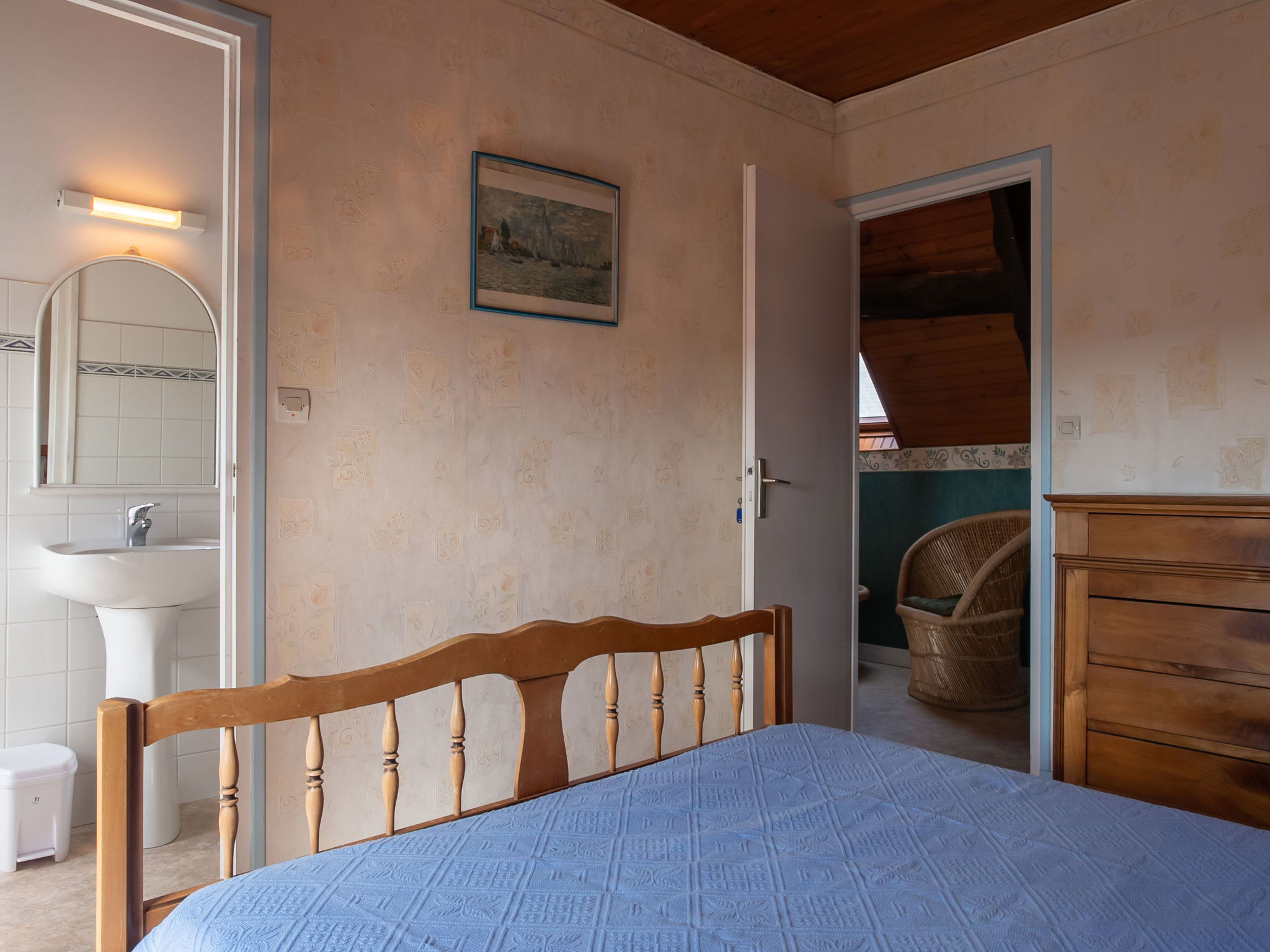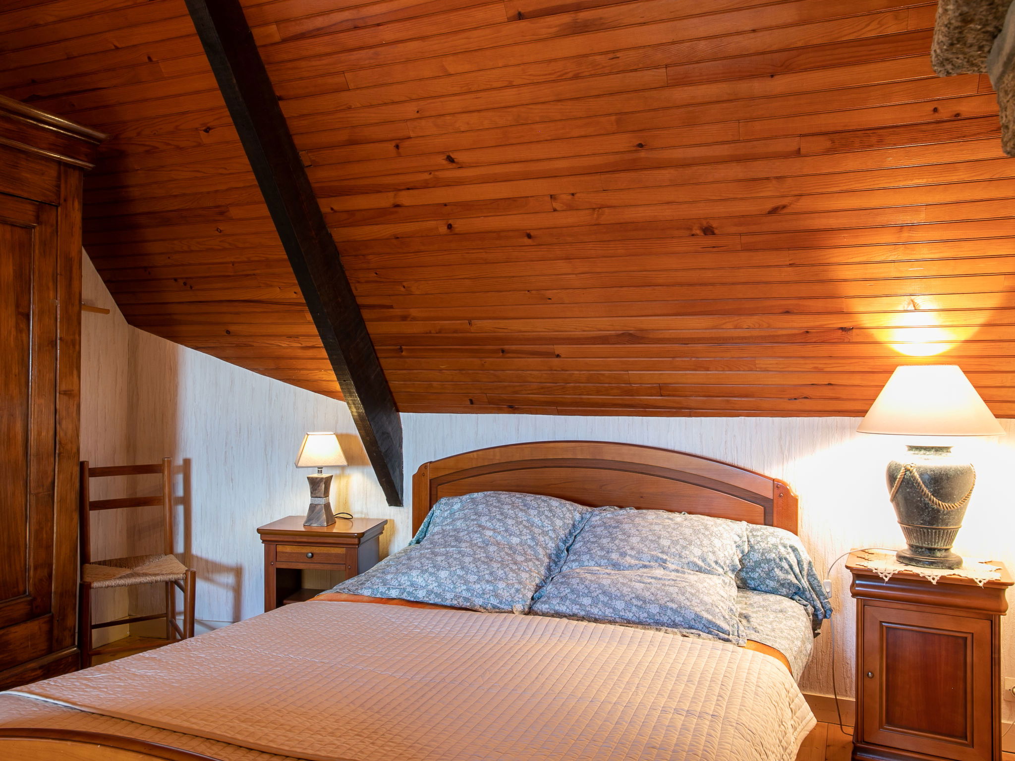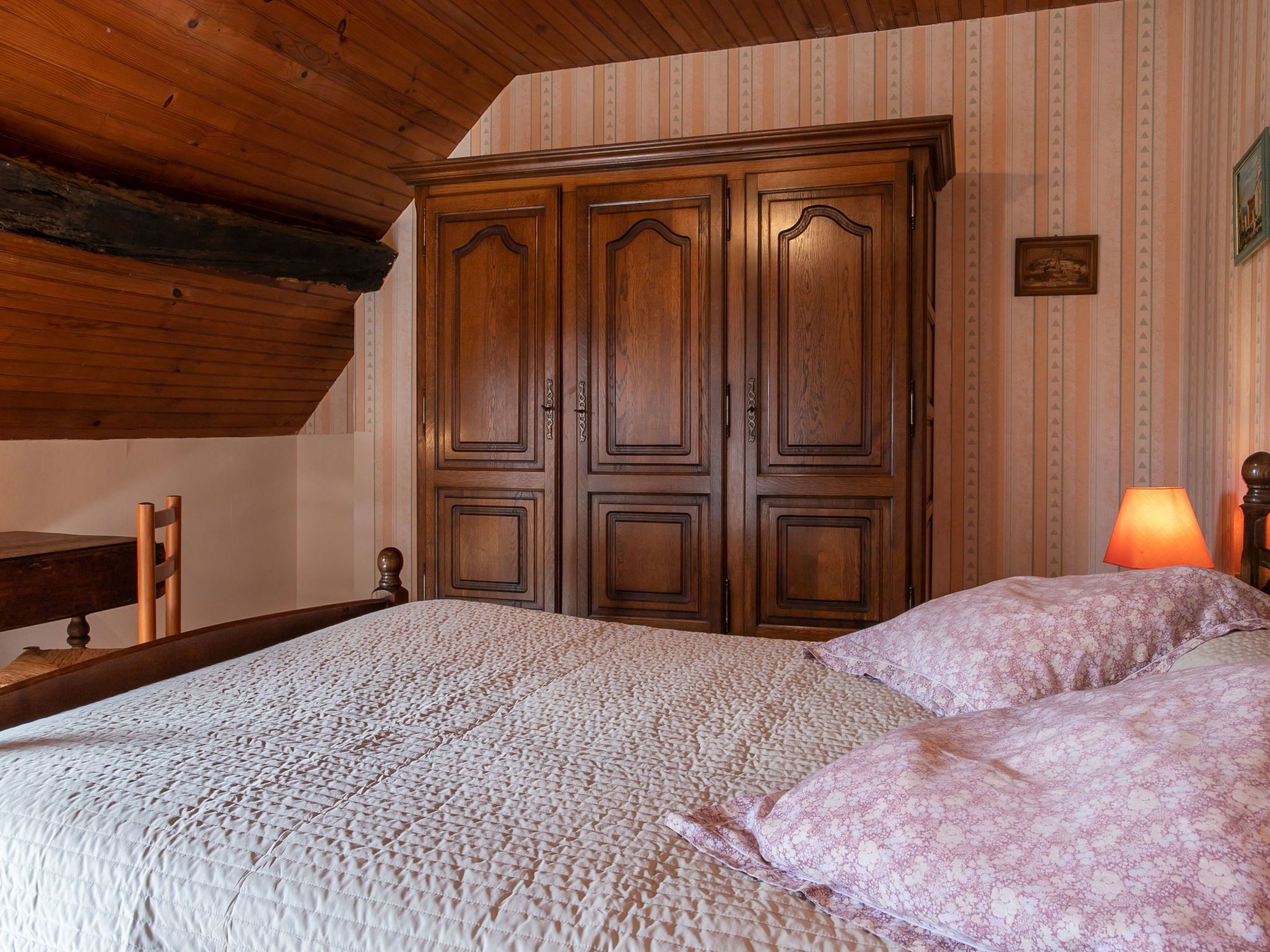 4-room house 110 m2 on 2 levels, on the upper ground floor. Beautiful and rustic furnishings: upper floor: living/dining room with open-hearth fireplace, dining table, TV, radio, CD-player and DVD. Open kitchen (1 hot plate, oven, dishwasher, 3 gas rings, toaster, kettle, microwave, freezer, electric coffee machine) with small dining table. Sep. WC. Gas heating. 2nd upper floor: (spiral staircase), 1 room with 1 french bed (140 cm, length 190 cm), bath/WC. 2 rooms, each room with 1 french bed (140 cm, length 190 cm), shower/WC. Balcony, south facing position and west facing position. Terrace furniture, barbecue (portable), deck chairs (2). Facilities: washing machine, dryer, iron, children's high chair, baby cot. Internet (WiFi, free). Please note: non-smoking house. If the additional bed is not reserved, the room with the single bed remains closed.