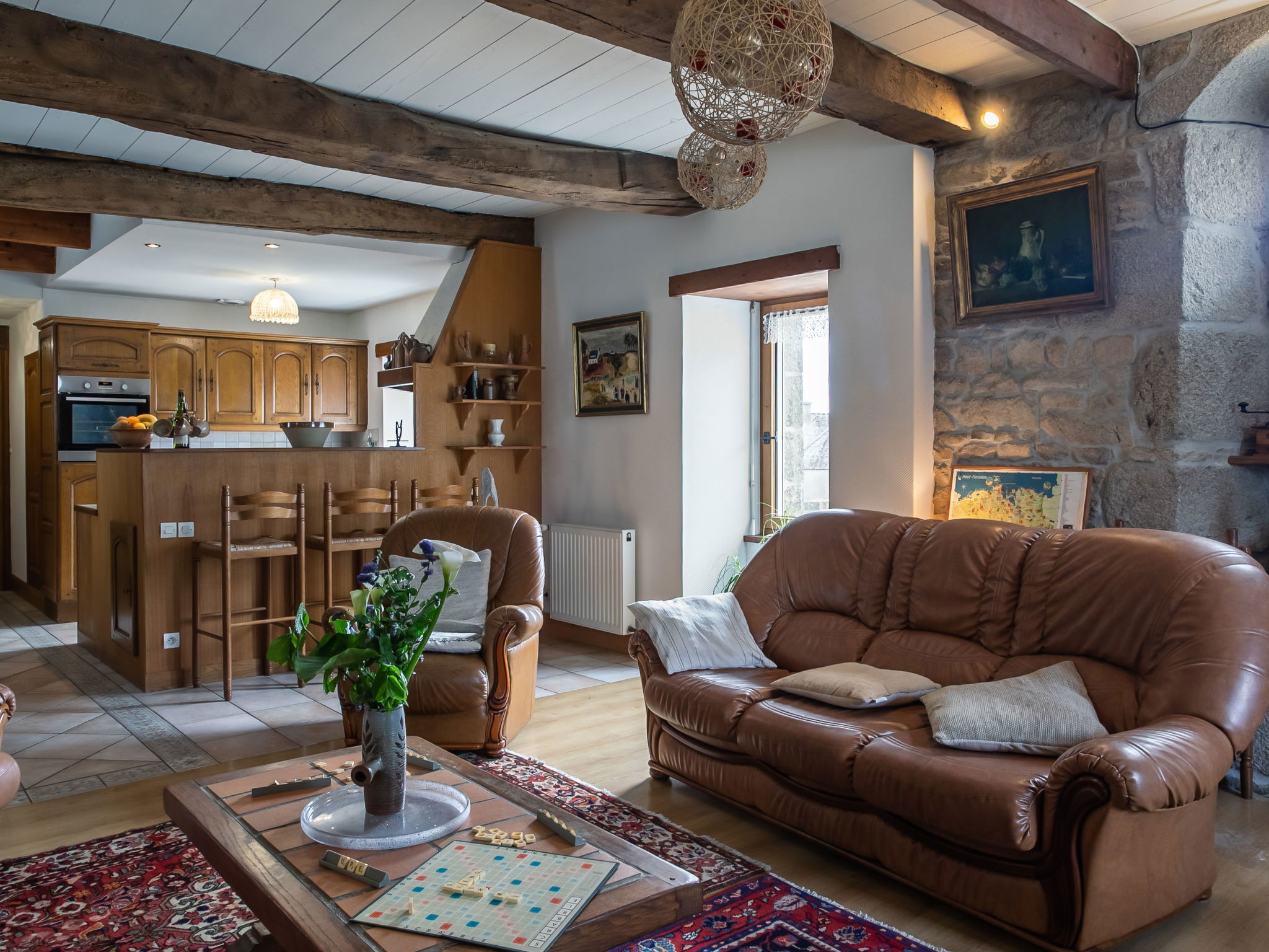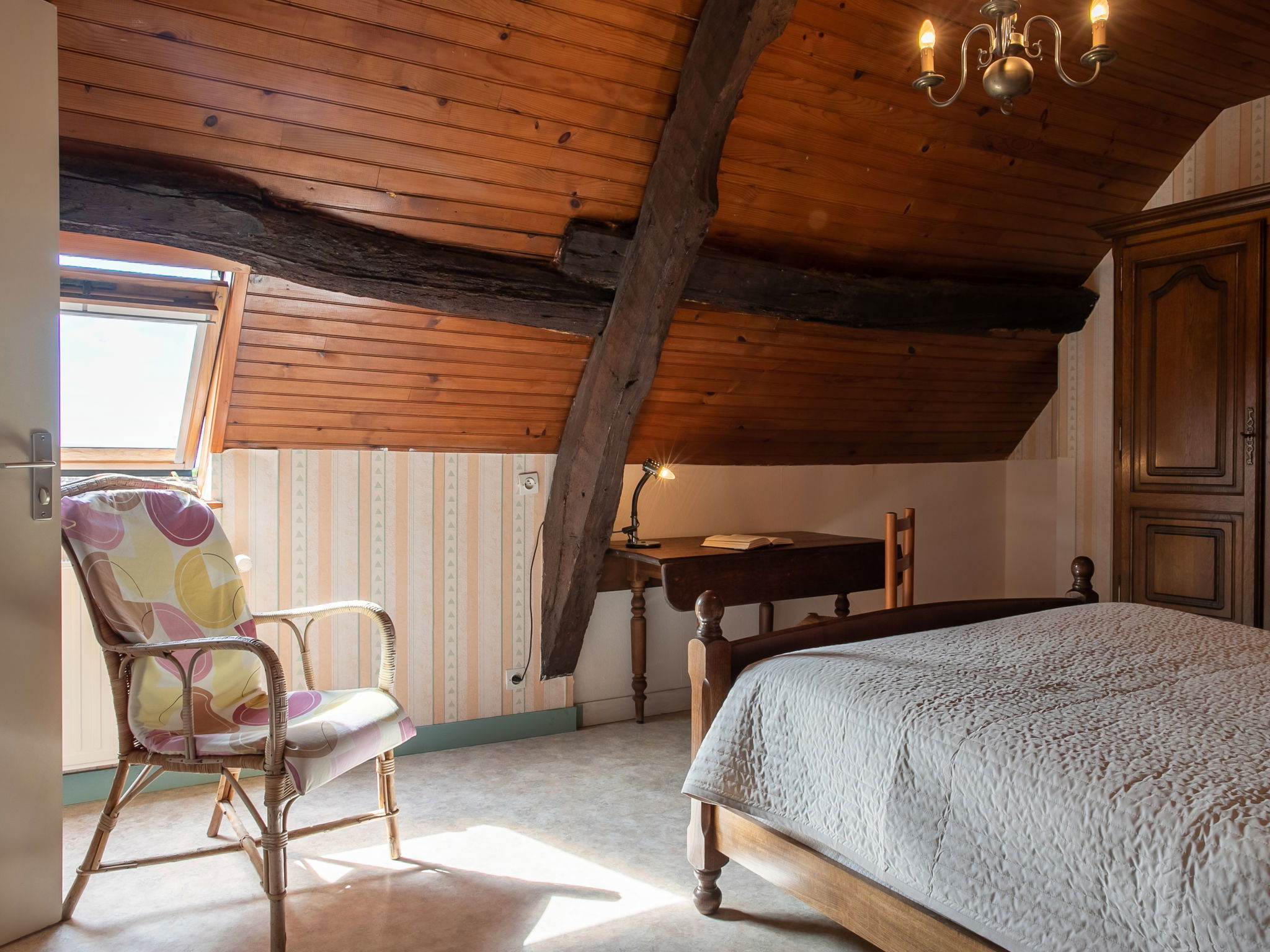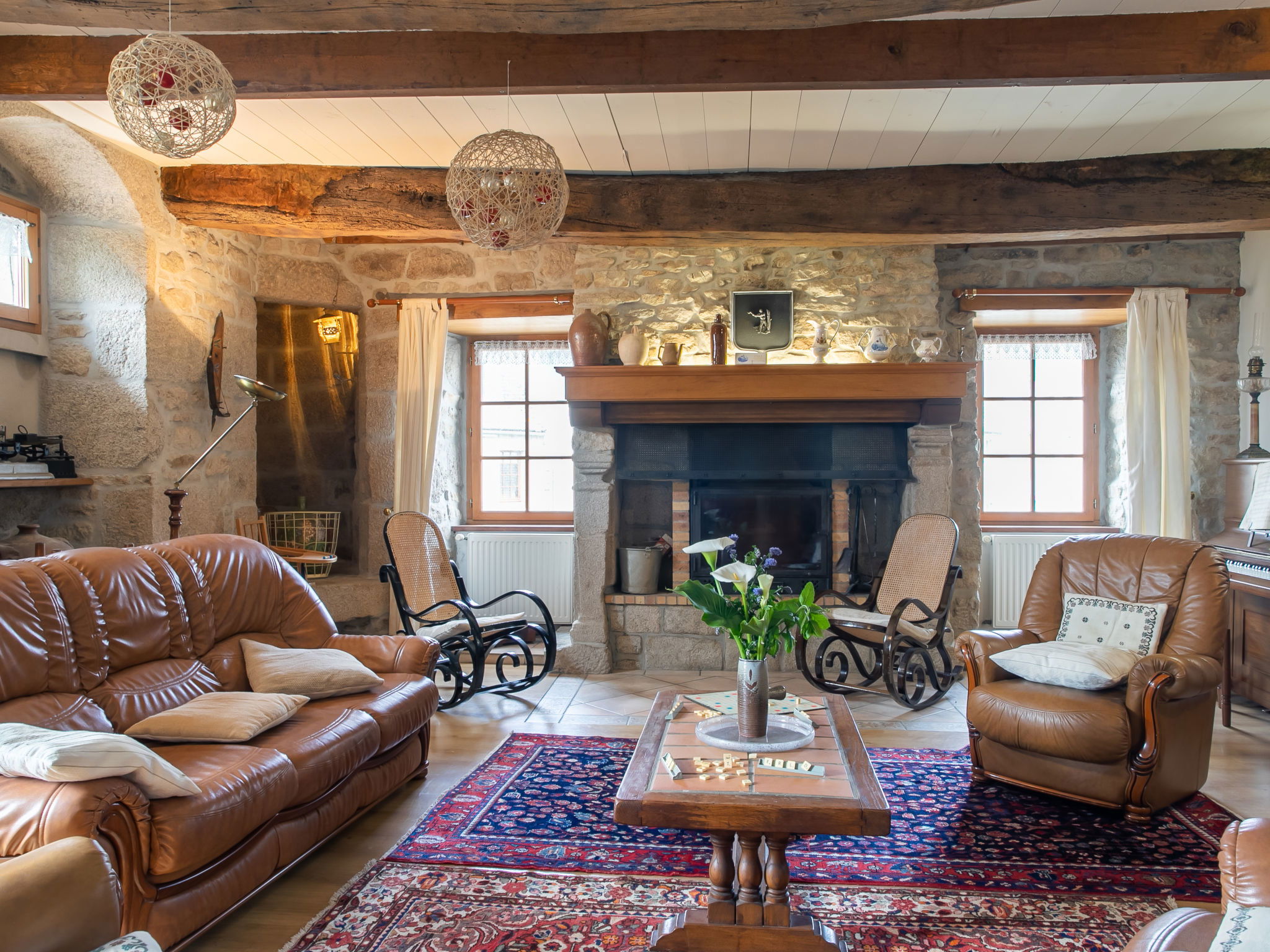 4-room house 110 m2 on 2 levels, on the upper ground floor. Beautiful and rustic furnishings: upper floor: living/dining room with open-hearth fireplace, dining table, TV, radio, CD-player and DVD. Open kitchen (1 hot plate, oven, dishwasher, 3 gas rings, toaster, kettle, microwave, freezer, electric coffee machine) with small dining table. Sep. WC. Gas heating. 2nd upper floor: (spiral staircase), 1 room with 1 french bed (140 cm, length 190 cm), bath/WC. 2 rooms, each room with 1 french bed (140 cm, length 190 cm), shower/WC. Balcony, south facing position and west facing position. Terrace furniture, barbecue (portable), deck chairs (2). Facilities: washing machine, dryer, iron, children's high chair, baby cot. Internet (WiFi, free). Please note: non-smoking house. If the additional bed is not reserved, the room with the single bed remains closed.