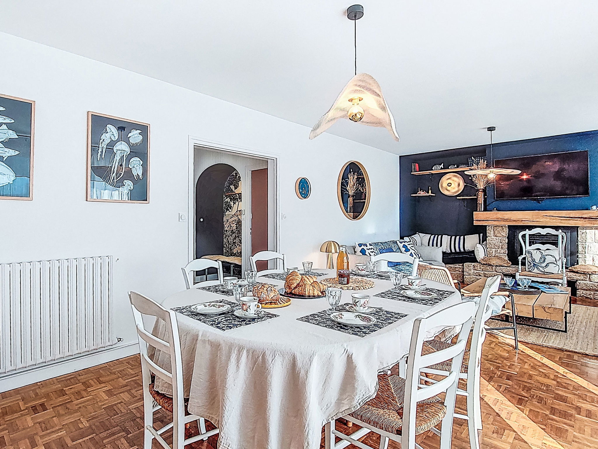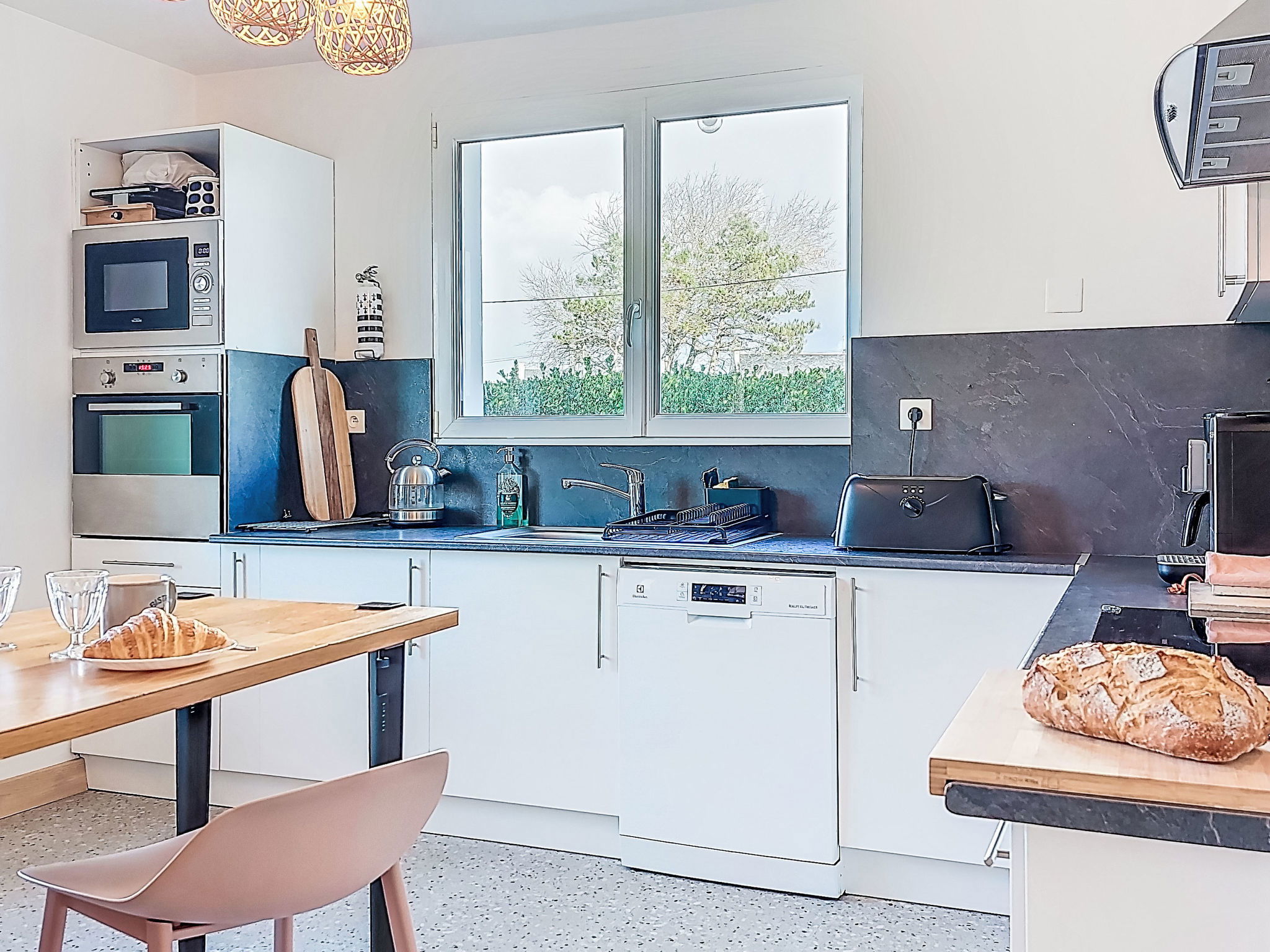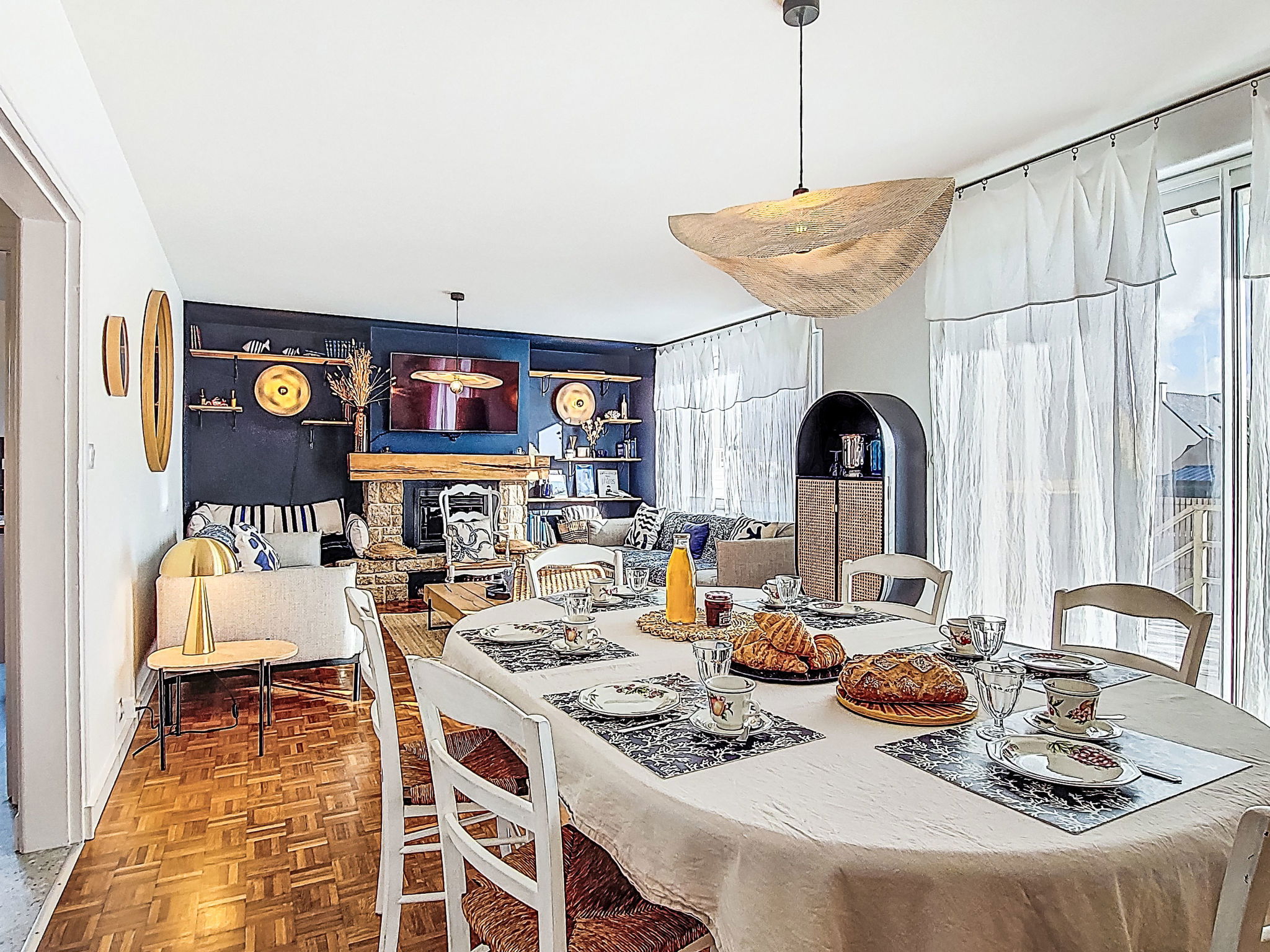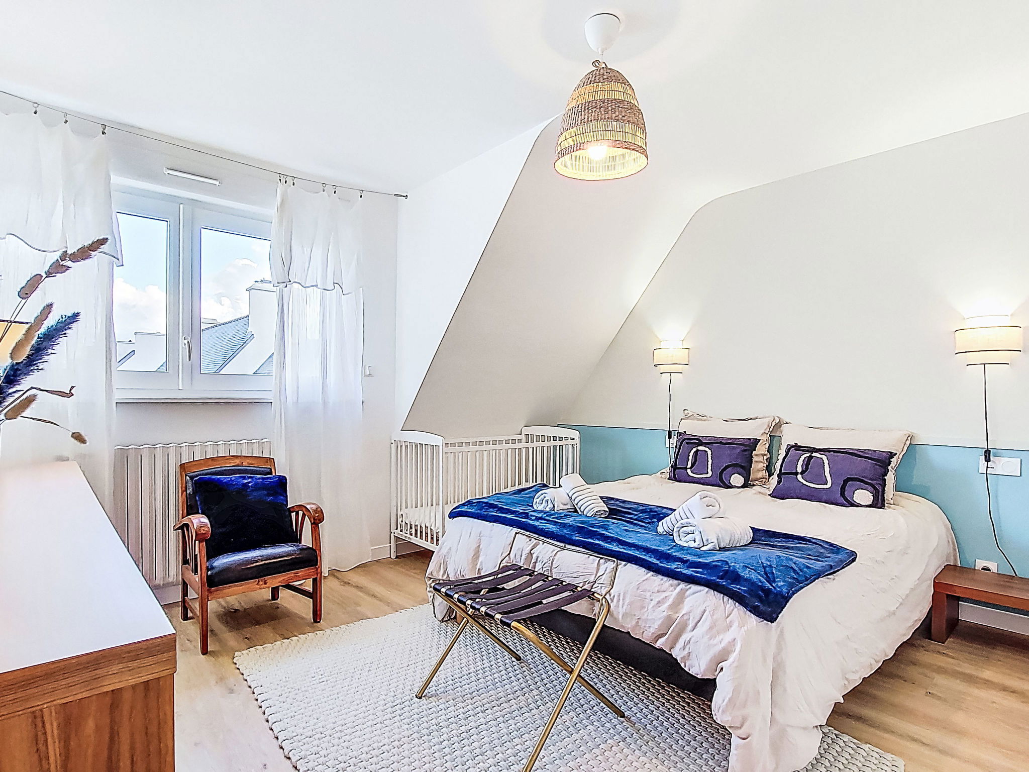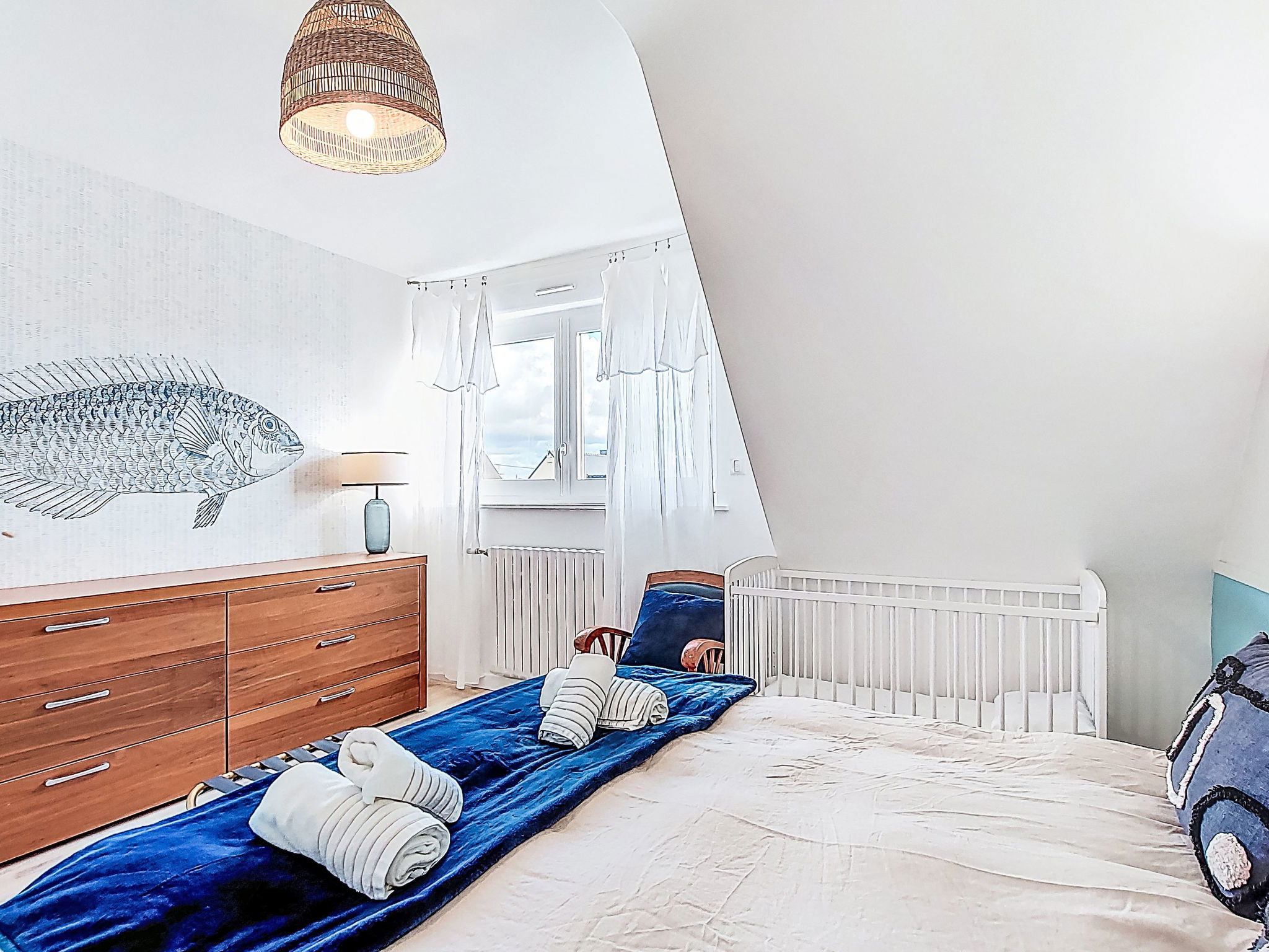 "Villa Koraill Glaz", 6-room house 140 m2 on 2 levels. Fully renovated in 2022, very comfortable and beautiful furnishings: large living/dining room 30 m2 with digital TV, flat screen and wood-burning stove. Exit to the garden, to the terrace. 1 room 14 m2 with 1 french bed (160 cm, length 200 cm). Kitchen 12 m2 (oven, dishwasher, 4 induction hot plates, toaster, kettle, microwave, freezer, electric coffee machine, raclette grill) with small dining table. Shower, sep. WC. Upper floor: 1 room 15 m2 with 1 double bed (180 cm, length 200 cm), shower. 2 rooms 12 m2, each room with 1 french bed (160 cm, length 200 cm). Shower/WC, sep. WC. Oil heating. Facilities: washing machine, dryer, iron, children's high chair, baby cot for up to 2 year olds, hair dryer, baby changing unit. Internet (WiFi, free). Please note: non-smoking house. Maximum 1 small pet/ dog allowed. Smoke alarm. Offer by a private individual according to Art. 155, IV of CGI. 29185 000177 09