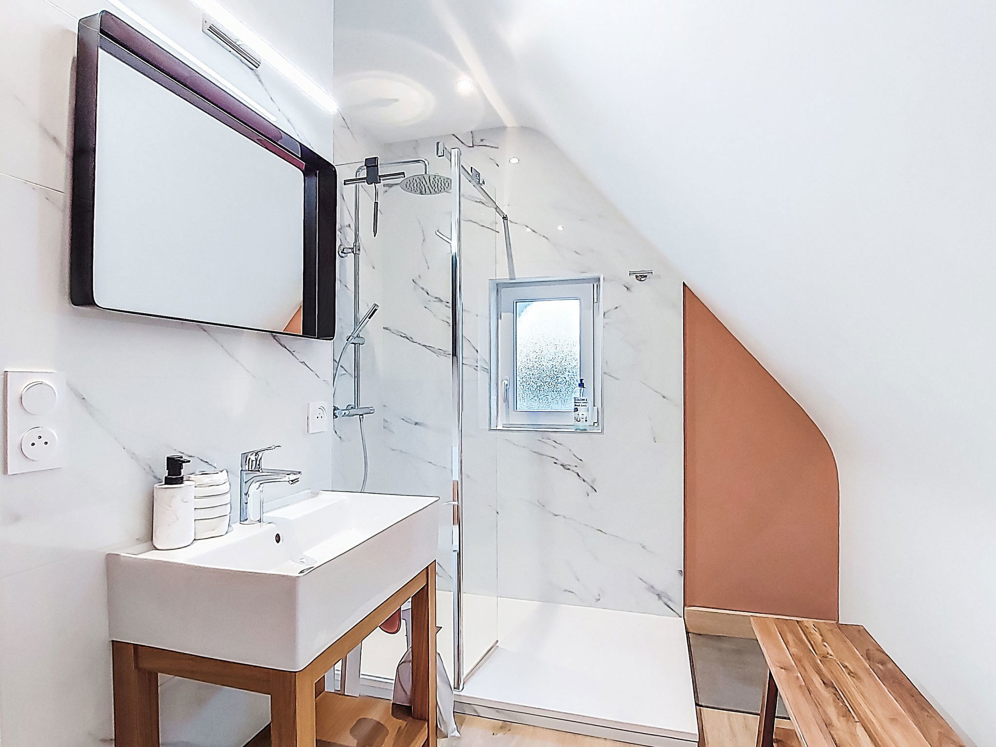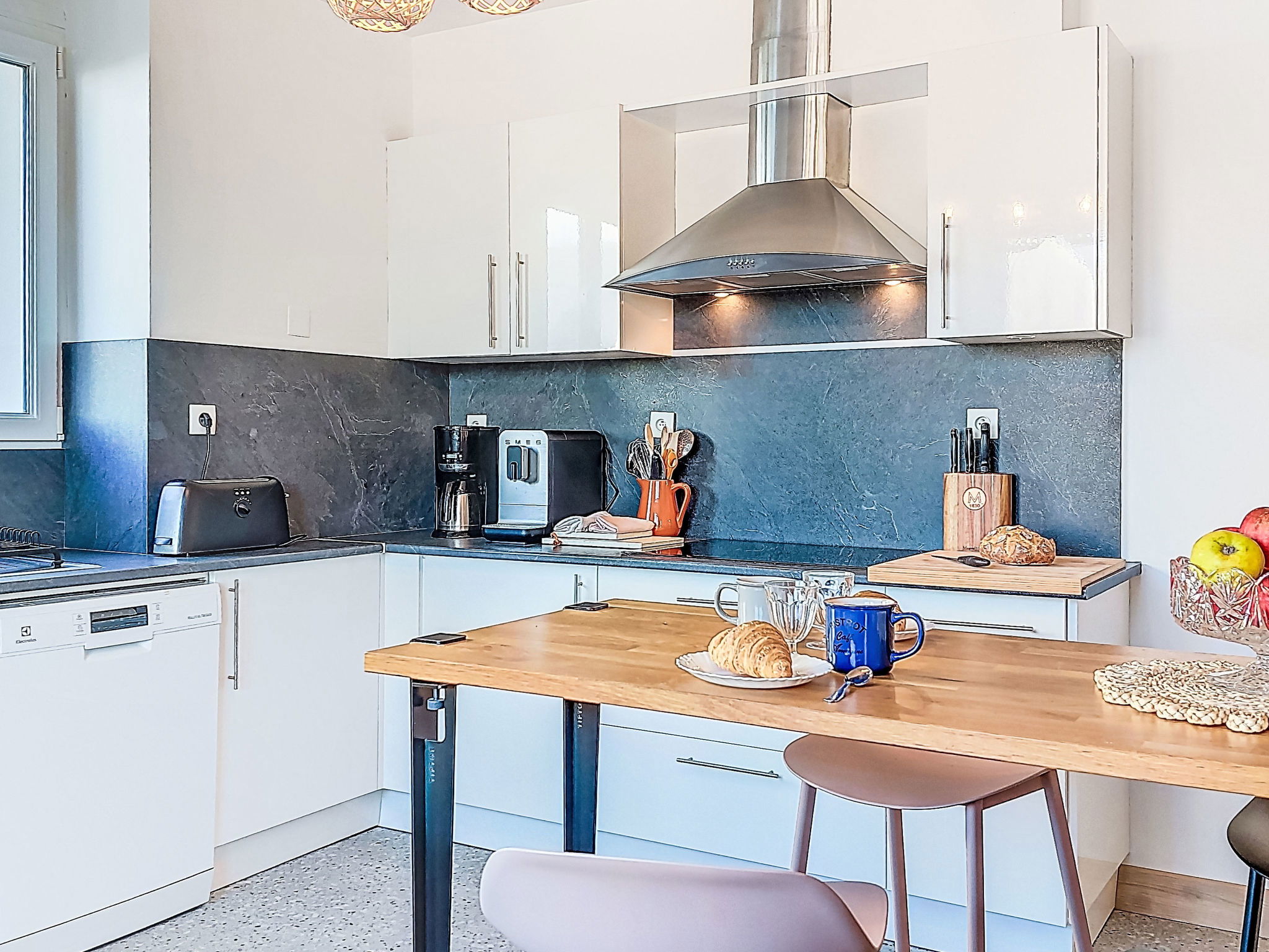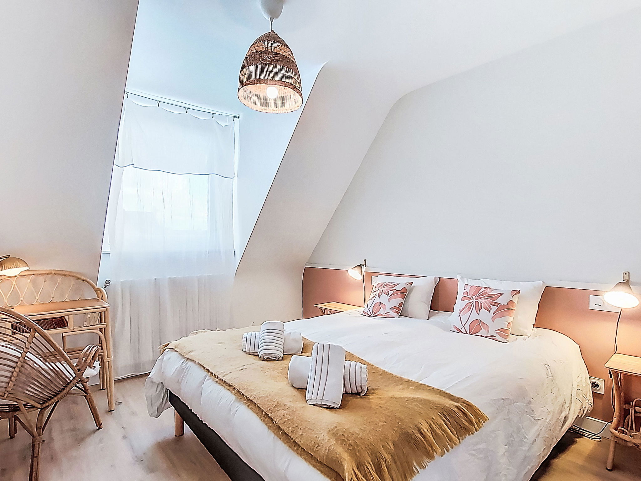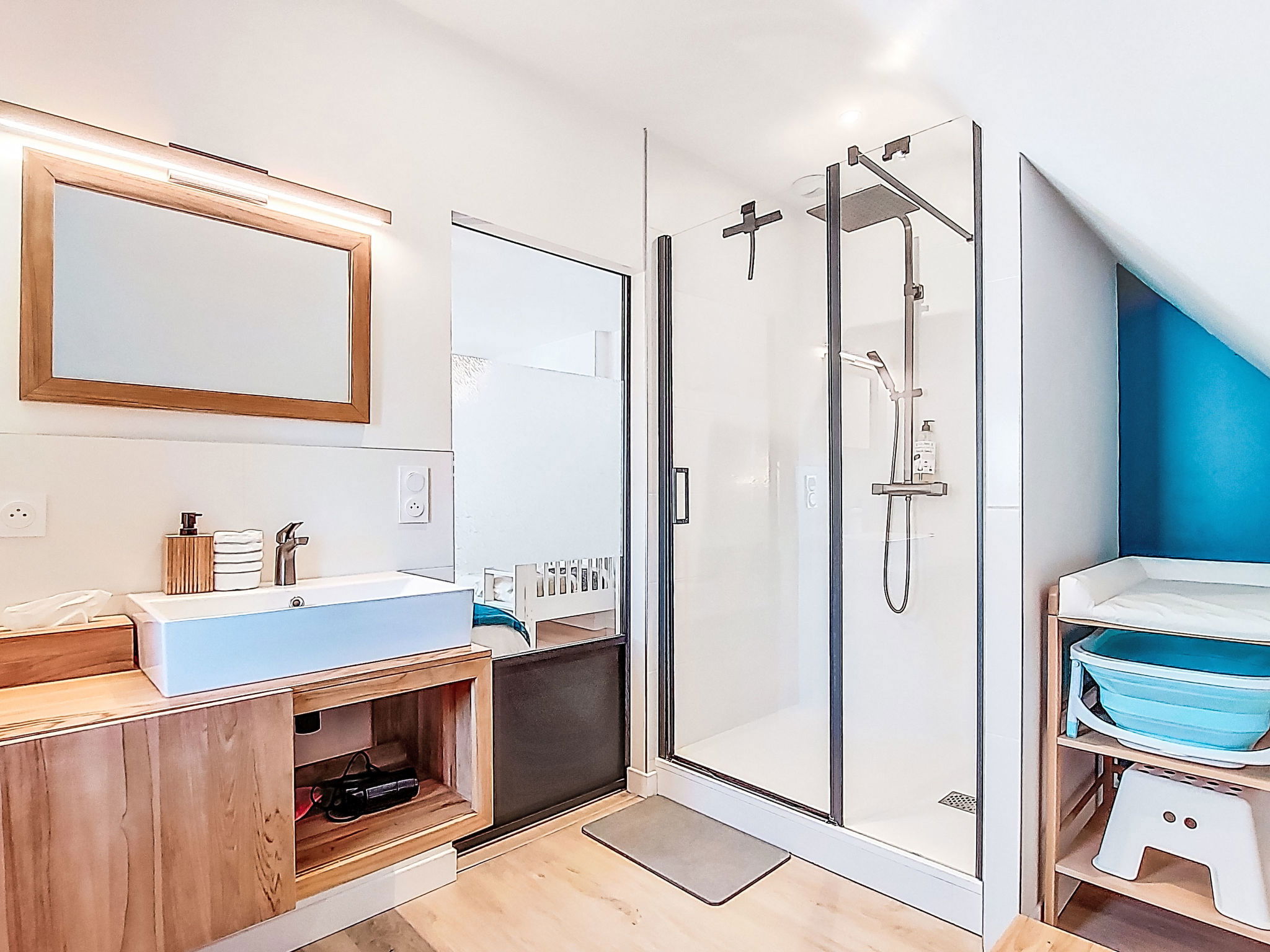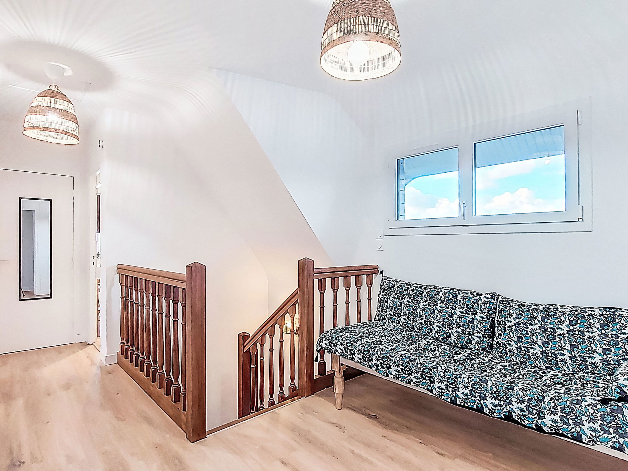 "Villa Koraill Glaz", 6-room house 140 m2 on 2 levels. Fully renovated in 2022, very comfortable and beautiful furnishings: large living/dining room 30 m2 with digital TV, flat screen and wood-burning stove. Exit to the garden, to the terrace. 1 room 14 m2 with 1 french bed (160 cm, length 200 cm). Kitchen 12 m2 (oven, dishwasher, 4 induction hot plates, toaster, kettle, microwave, freezer, electric coffee machine, raclette grill) with small dining table. Shower, sep. WC. Upper floor: 1 room 15 m2 with 1 double bed (180 cm, length 200 cm), shower. 2 rooms 12 m2, each room with 1 french bed (160 cm, length 200 cm). Shower/WC, sep. WC. Oil heating. Facilities: washing machine, dryer, iron, children's high chair, baby cot for up to 2 year olds, hair dryer, baby changing unit. Internet (WiFi, free). Please note: non-smoking house. Maximum 1 small pet/ dog allowed. Smoke alarm. Offer by a private individual according to Art. 155, IV of CGI. 29185 000177 09