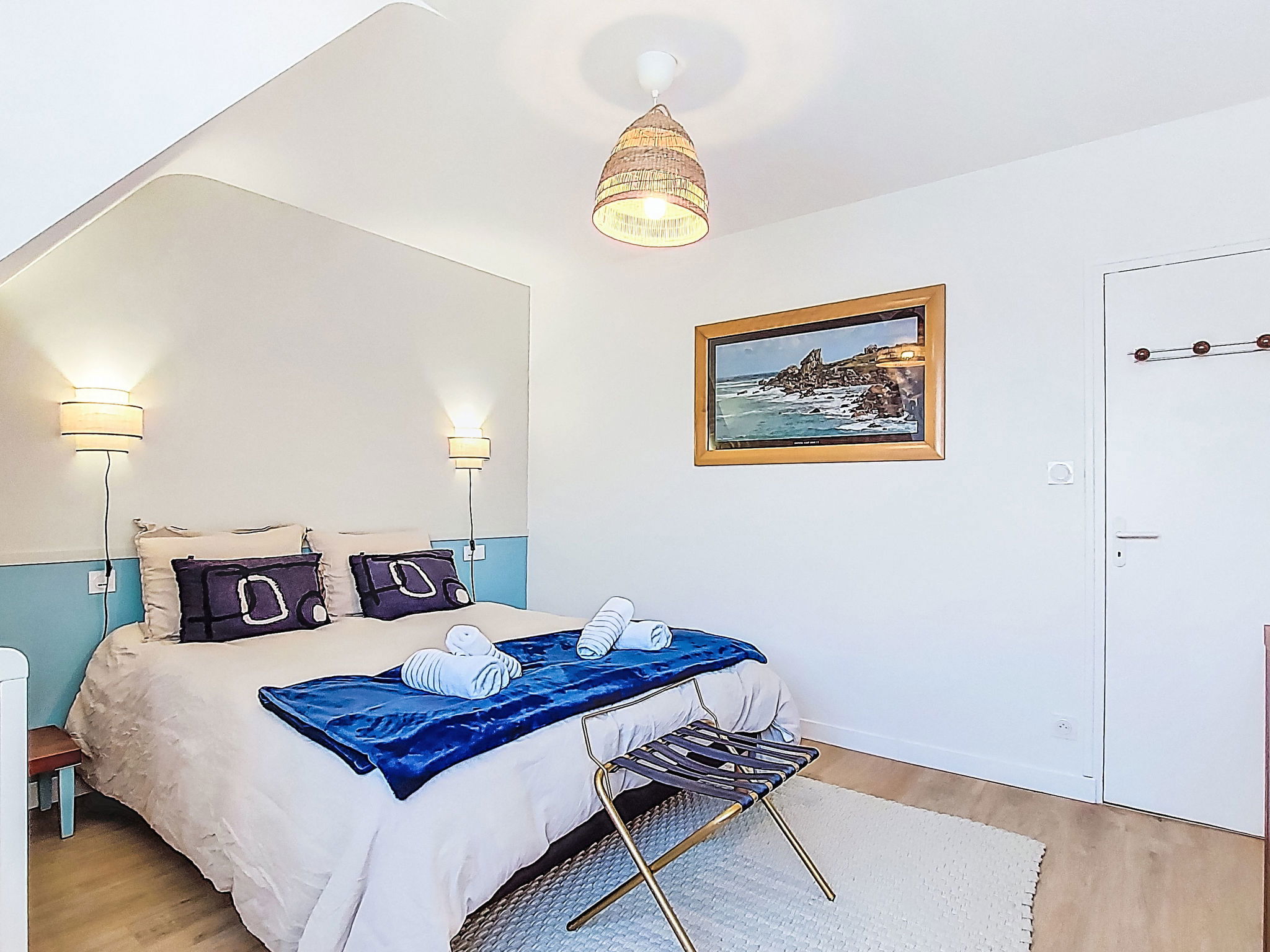 Modern, beautiful, comfortable single-family house "Villa Koraill Glaz". In the district of Porsmeur 3 km from the centre of Plouescat, in the residential district, 250 m from the sea, 250 m from the beach. Private: property 300 m2, well-kept garden with lawn and wildlife garden. Outdoor shower, hot tub, parking on the premises. Shop 3 km, grocery 3 km, supermarket 2.7 km, restaurant, bar 300 m, bakery 3 km, café 700 m, bus stop 2.5 km, ferry "Roscoff" 24 km, sandy beach "Porsmeur" 250 m, thermal baths "Thalasso Roscoff" 24 km. Sports harbour 24 km, marina 24 km, golf course (9 hole) 6 km, surf school 20 km, sailing school 660 m, minigolf 1.2 km, walking paths from the house 250 m. Nearby attractions: Char à voile, Baie du Kernic 750 m, Dunes de Keremma, réserve ornithologique 8 km, Meneham, Kerlouan 18 km, Roscoff, Jardin exotique, Île de Batz 24 km, Château de Kerjean 18 km, Morlaix 37 km. Hiking paths: GR34, sentier des Douaniers, 2 mn à pied 250 m.