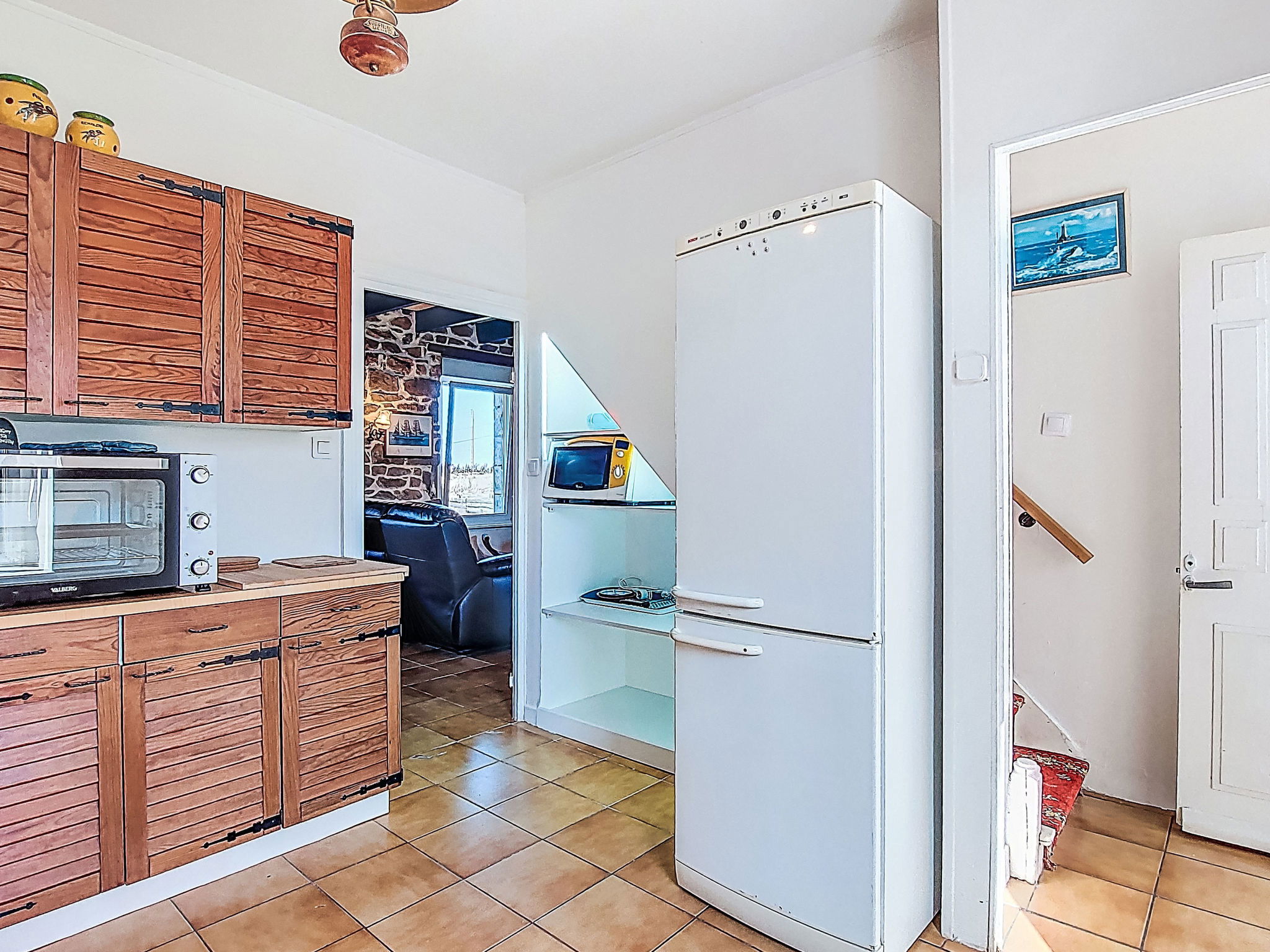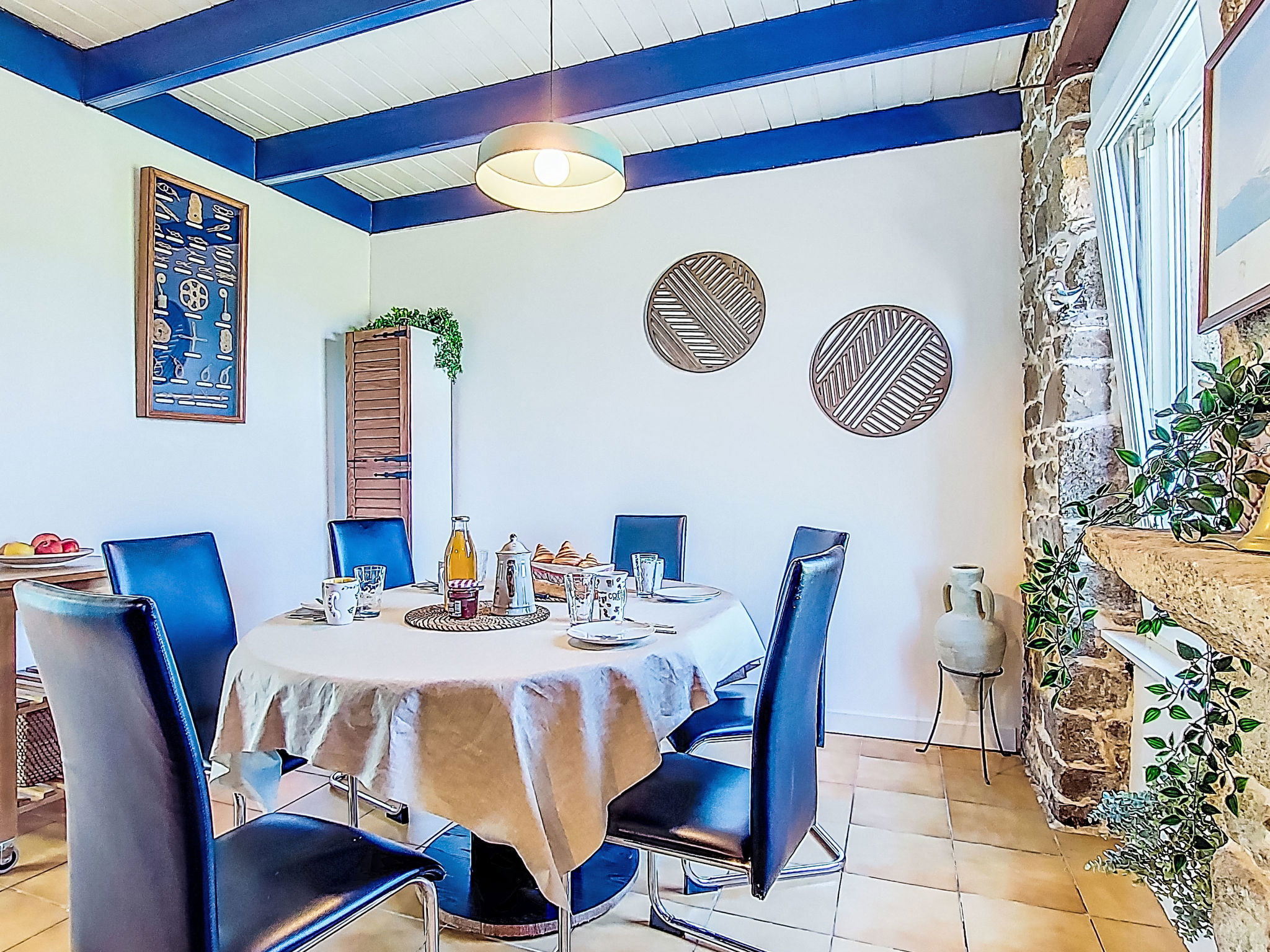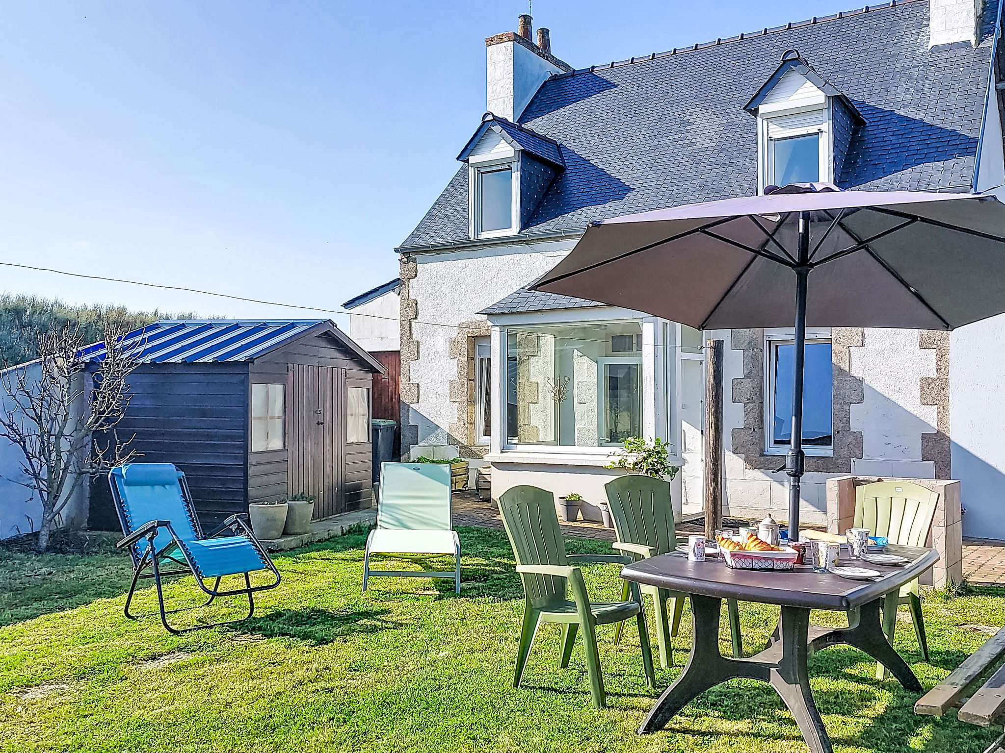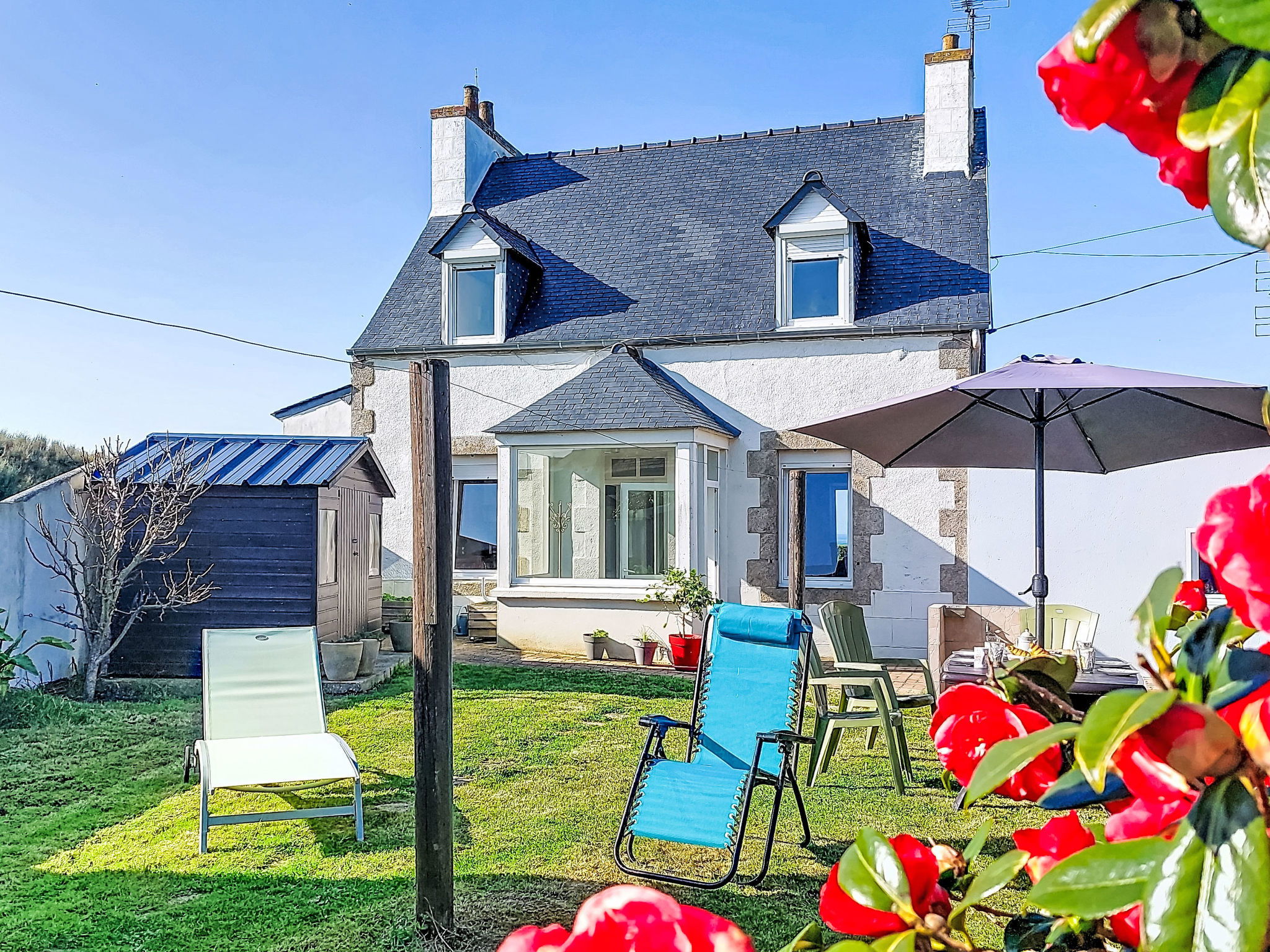 Cosy single-family house "Eden". In the district of Saint Eden 3.2 km from the centre of Plouescat, in a quiet position, 80 m from the sea, 600 m from the beach, in a cul-de-sac. Private: property 1'500 m2, well-kept garden 180 m2 (fenced) with lawn and wildlife garden, parking (for 2 cars) on the premises. Shop 3.2 km, grocery 3.2 km, supermarket 4.5 km, restaurant 3.5 km, bakery 3.2 km, café 3.2 km, bus stop 3.9 km, ferry "Roscoff" 23 km, sandy beach "Plage de Menfig" 600 m, thermal baths "Roscoff" 23 km. Sports harbour 23 km, marina 23 km, golf course (9 hole) 5 km, surf school 18 km, sailing school 3.8 km, minigolf 3.3 km, walking paths from the house 70 m. Nearby attractions: Plage Les Amiets 4 km, Réserve ornithologique, Dunes de Keremma 22 km, Jardin exotique Roscoff, Île de Batz 22 km, Carantec, Baie de Morlaix 28 km, Morlaix 35 km, Château de Kerjean à St Vougay 20 km. Hiking paths: GR34, sentier des douaniers 70 m.