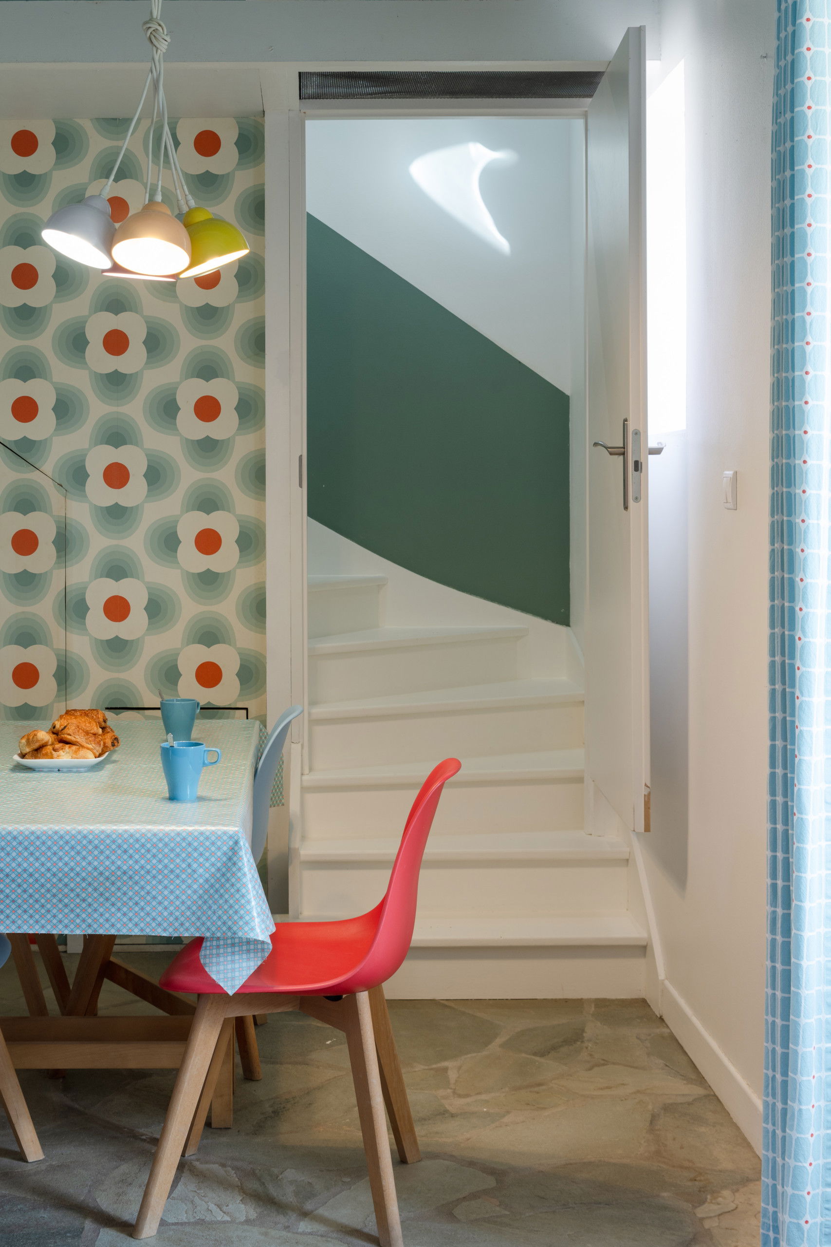 Upon entering, you will find a kitchen with a vintage style, fully equipped, with a friendly dining table. Nearby, separate toilets for added comfort. If you take the stairs located to the right of the entrance door, you will find a spacious bedroom with a double bed (160x200) and a bathtub.