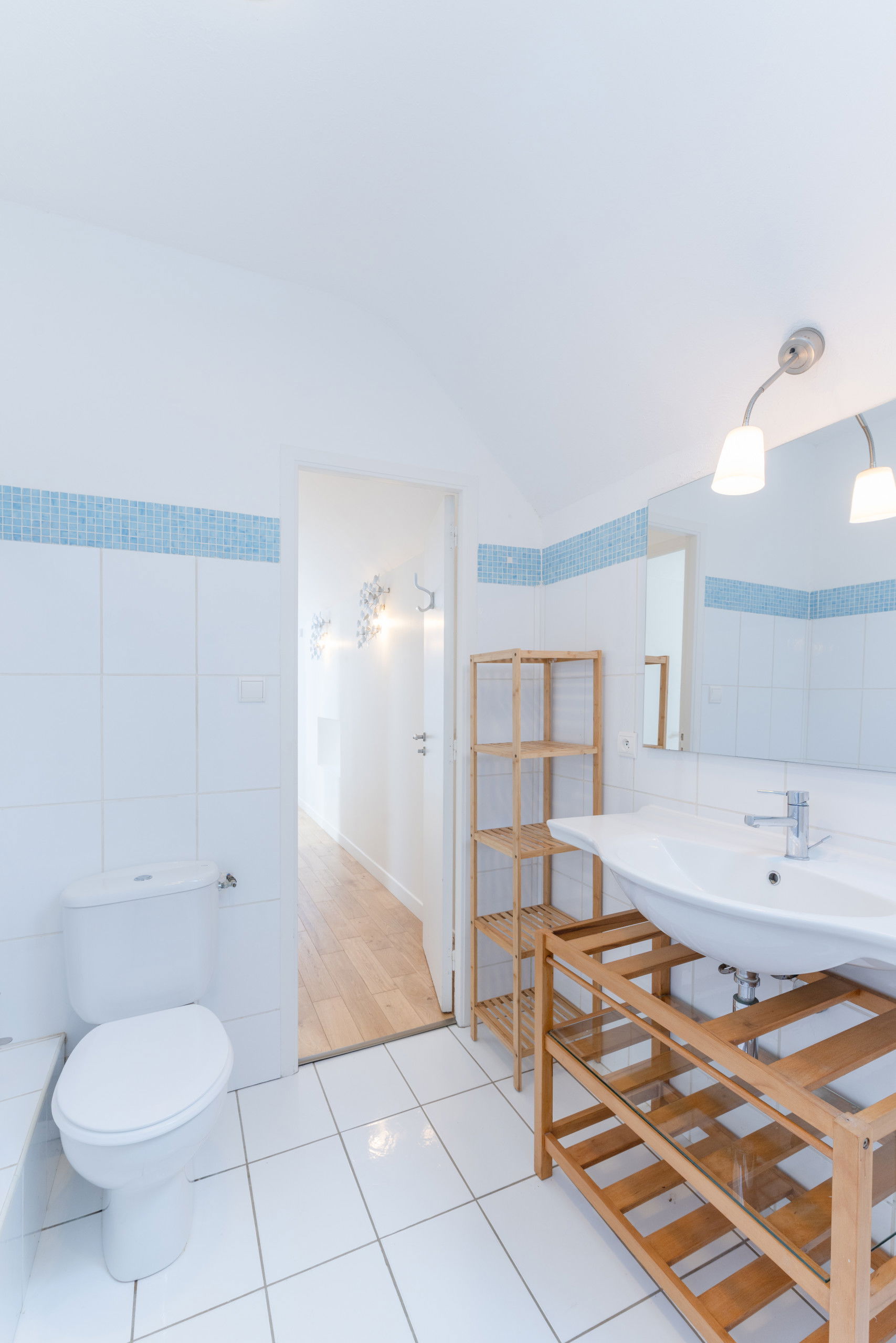 On the floor you will find three bedrooms, two with double beds (160x200), and one bedroom with two single beds (90x190). A bathroom with shower and toilet is located at the end of the corridor.