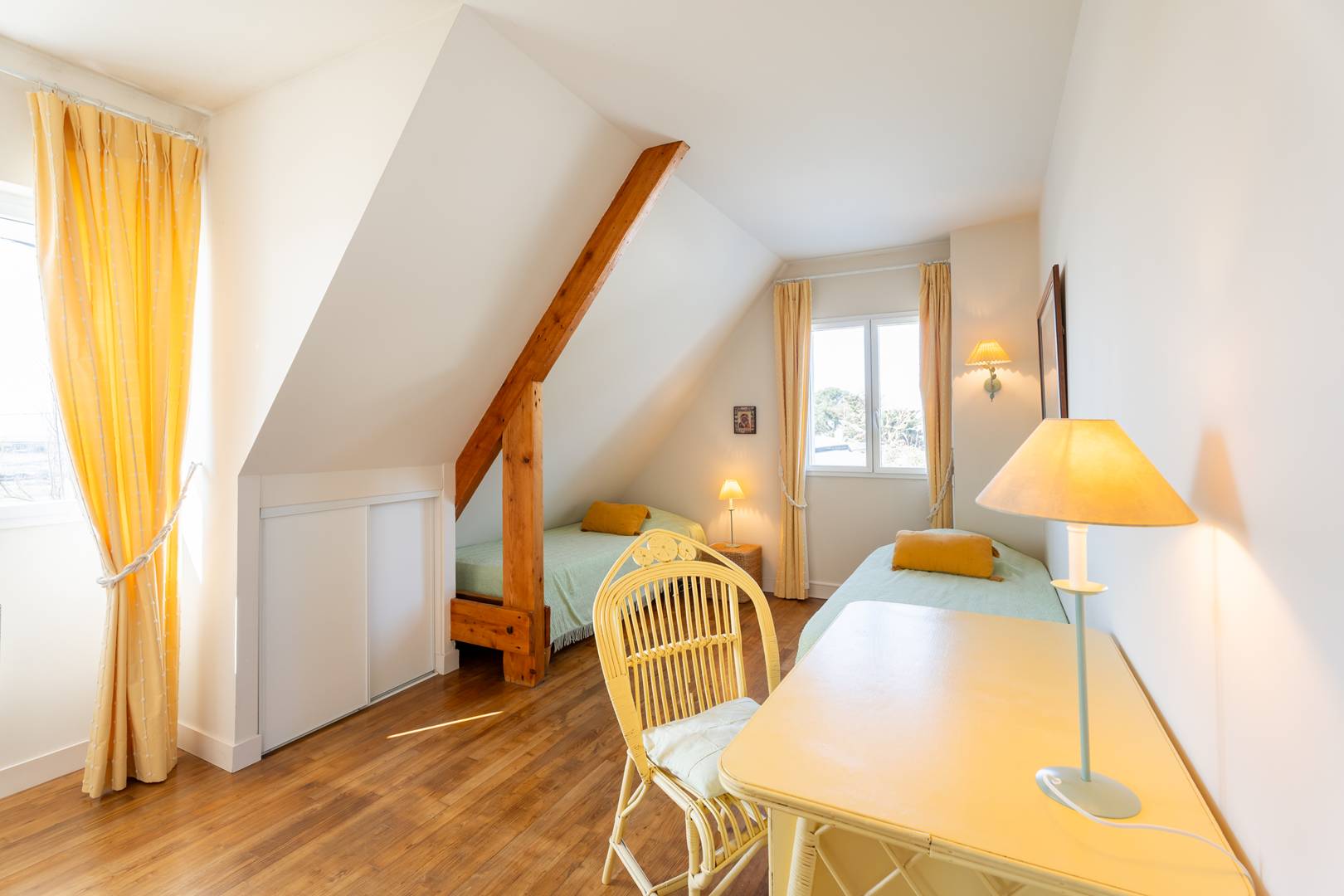 - 1 bedroom with 2 single beds (80, duvets) and SEA VIEW