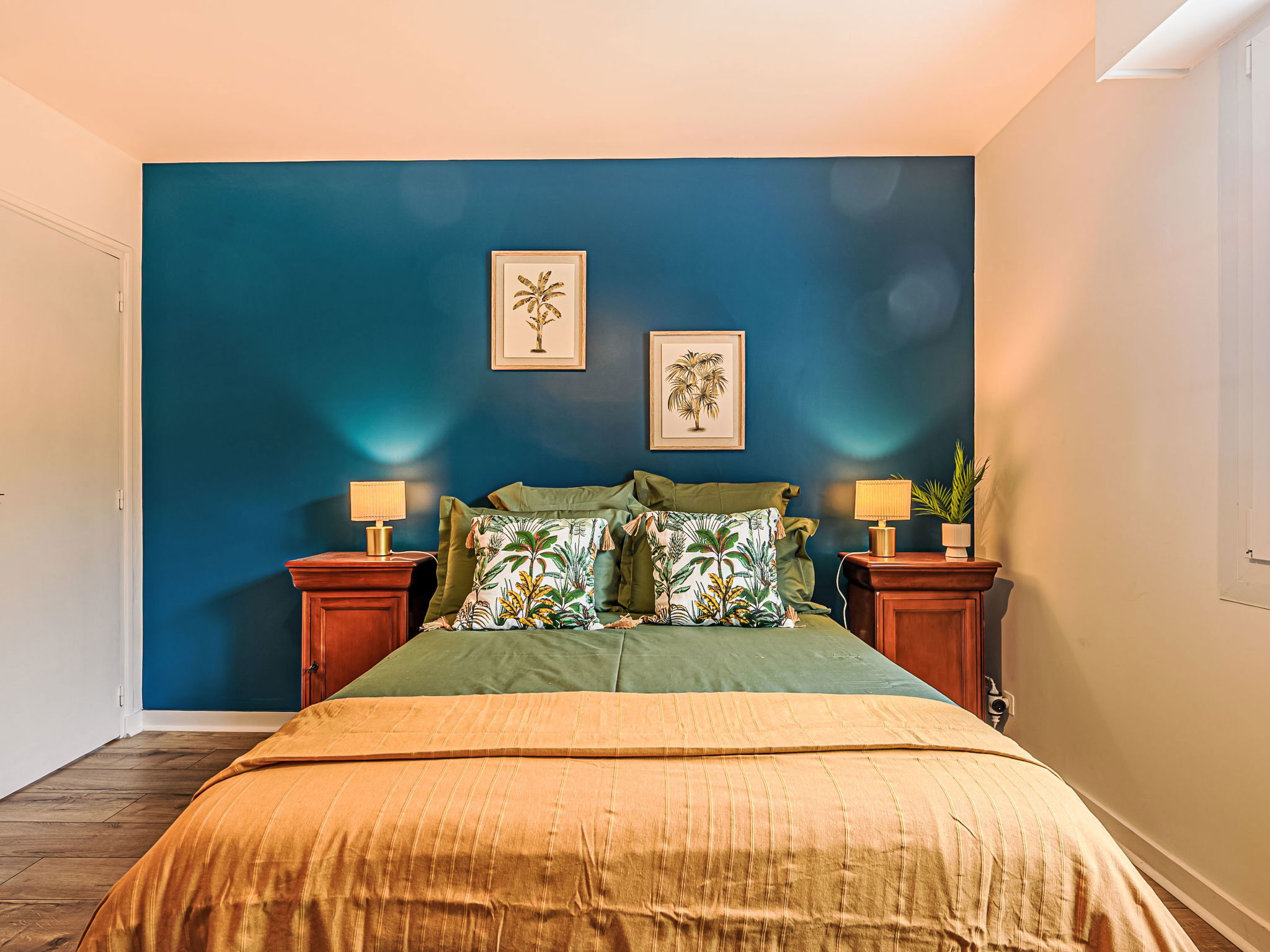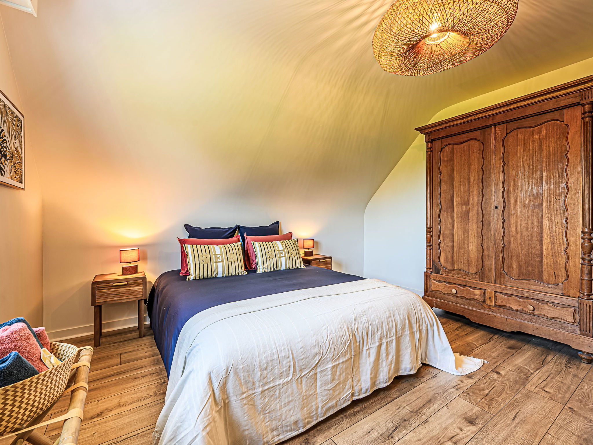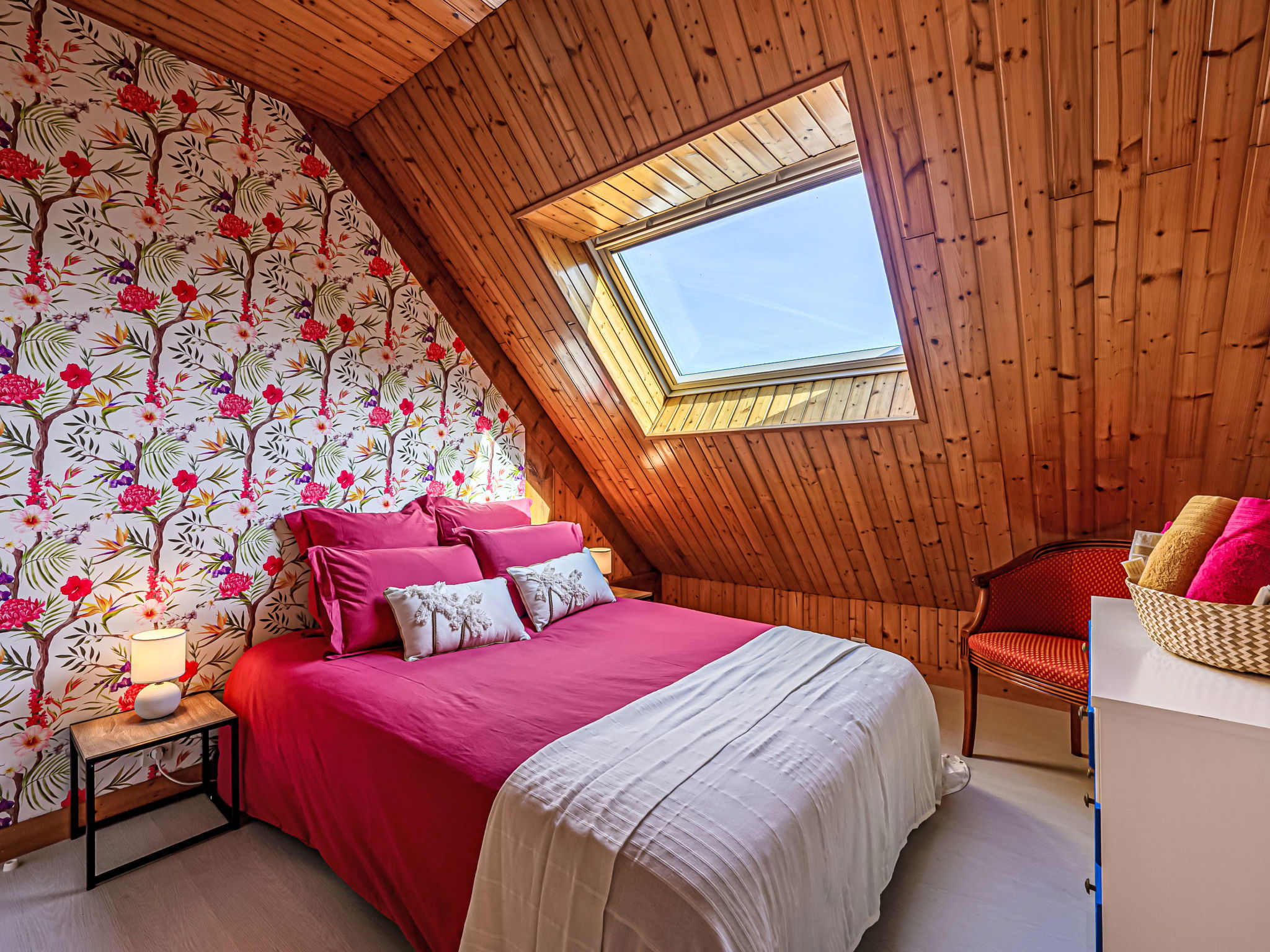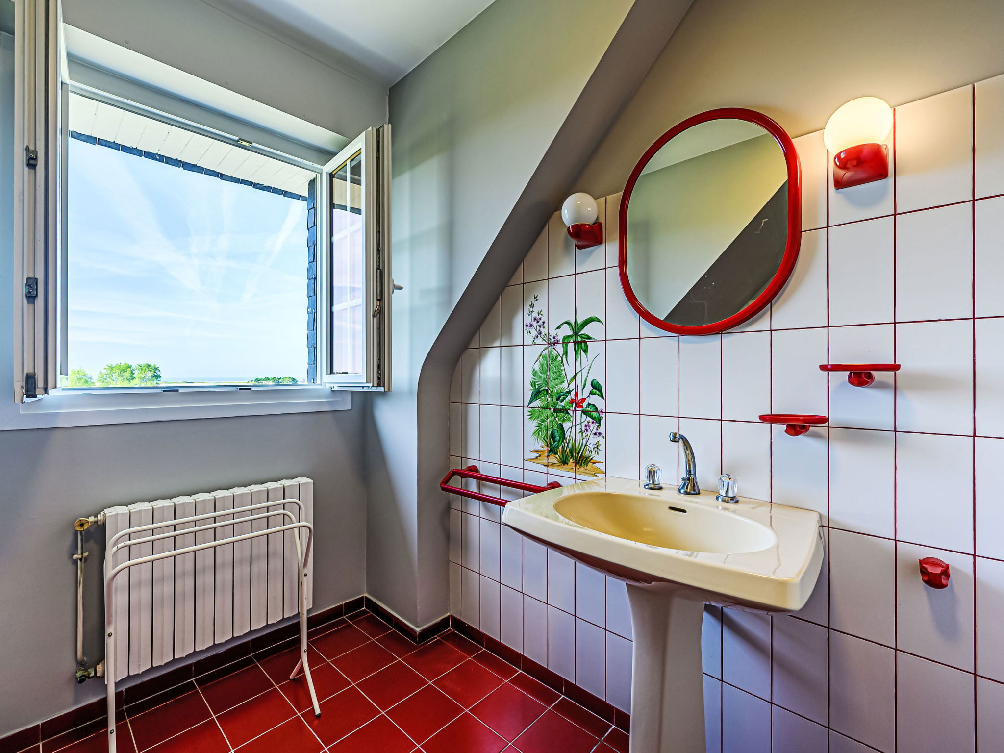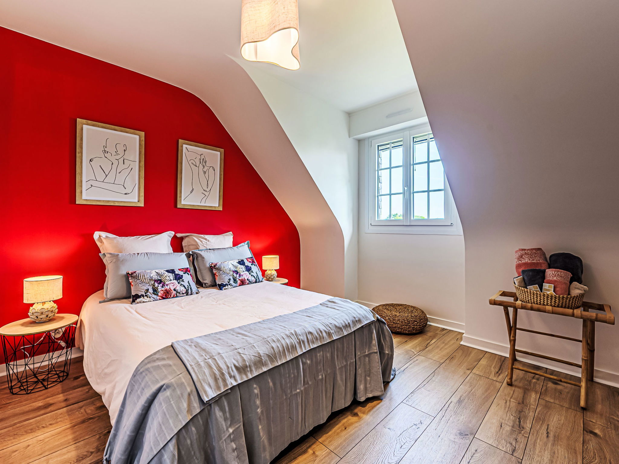 "Villa Colette", 6-room house 134 m2. Comfortable furnishings: living/dining room with TV (flat screen). Exit to the garden. 1 room with 1 french bed (1 x 140 cm, length 190 cm). Kitchen (oven, dishwasher, 4 gas rings, toaster, kettle, microwave, electric coffee machine). Shower, sep. WC. Upper floor: 1 room with 1 french bed (1 x 140 cm, length 190 cm). 1 room with 1 french bed (1 x 140 cm, length 190 cm). 1 room with 1 french bed (1 x 160 cm, length 200 cm). 1 room with 1 french bed (1 x 140 cm, length 190 cm). Bathroom, sep. WC. Large garden. Terrace furniture, barbecue. Partial view of the sea. Facilities: washing machine. Internet (WiFi, free). Parking. Please note: maximum 1 pet/ dog allowed. Smoke alarm. 56169250010 PL