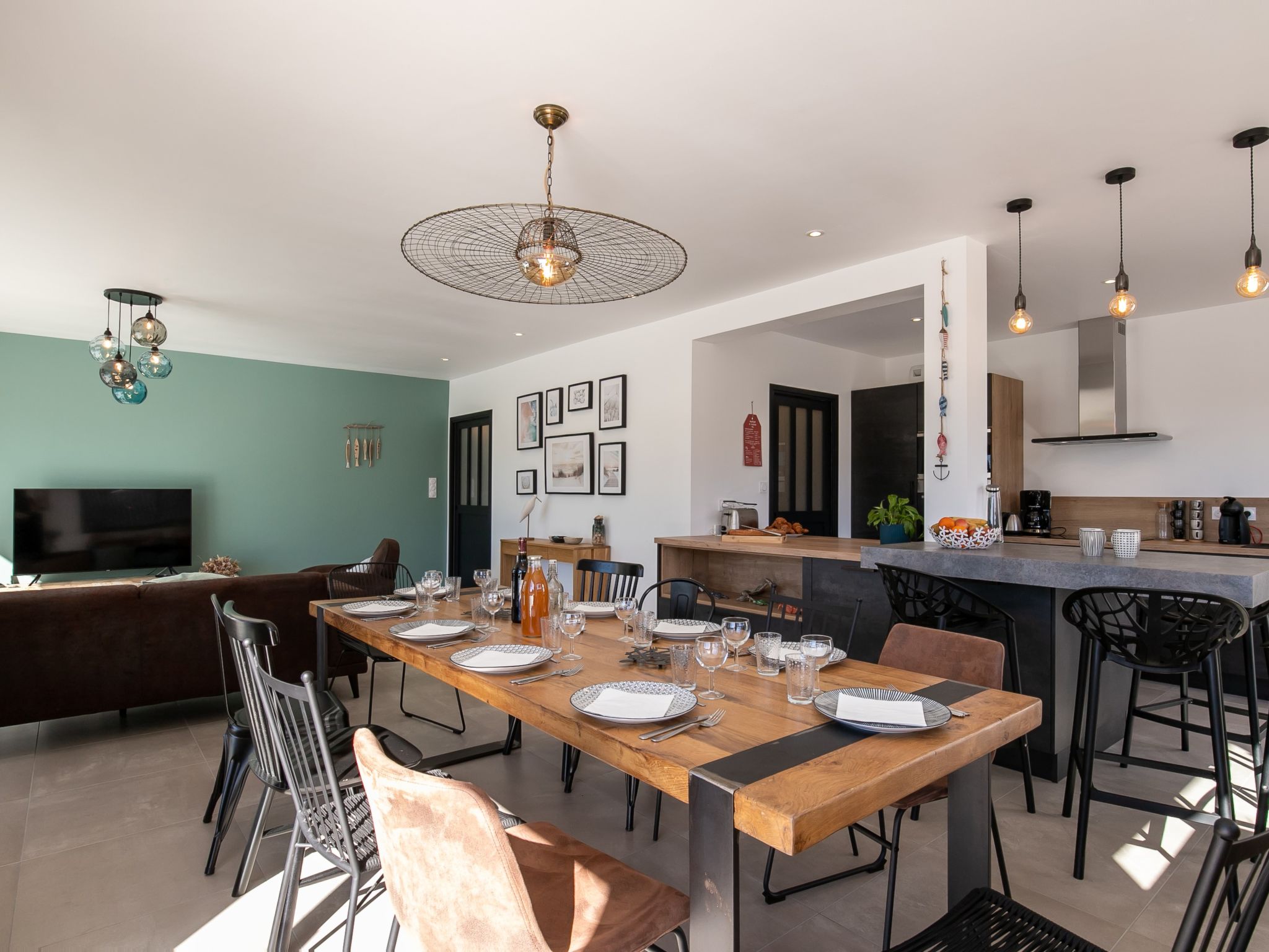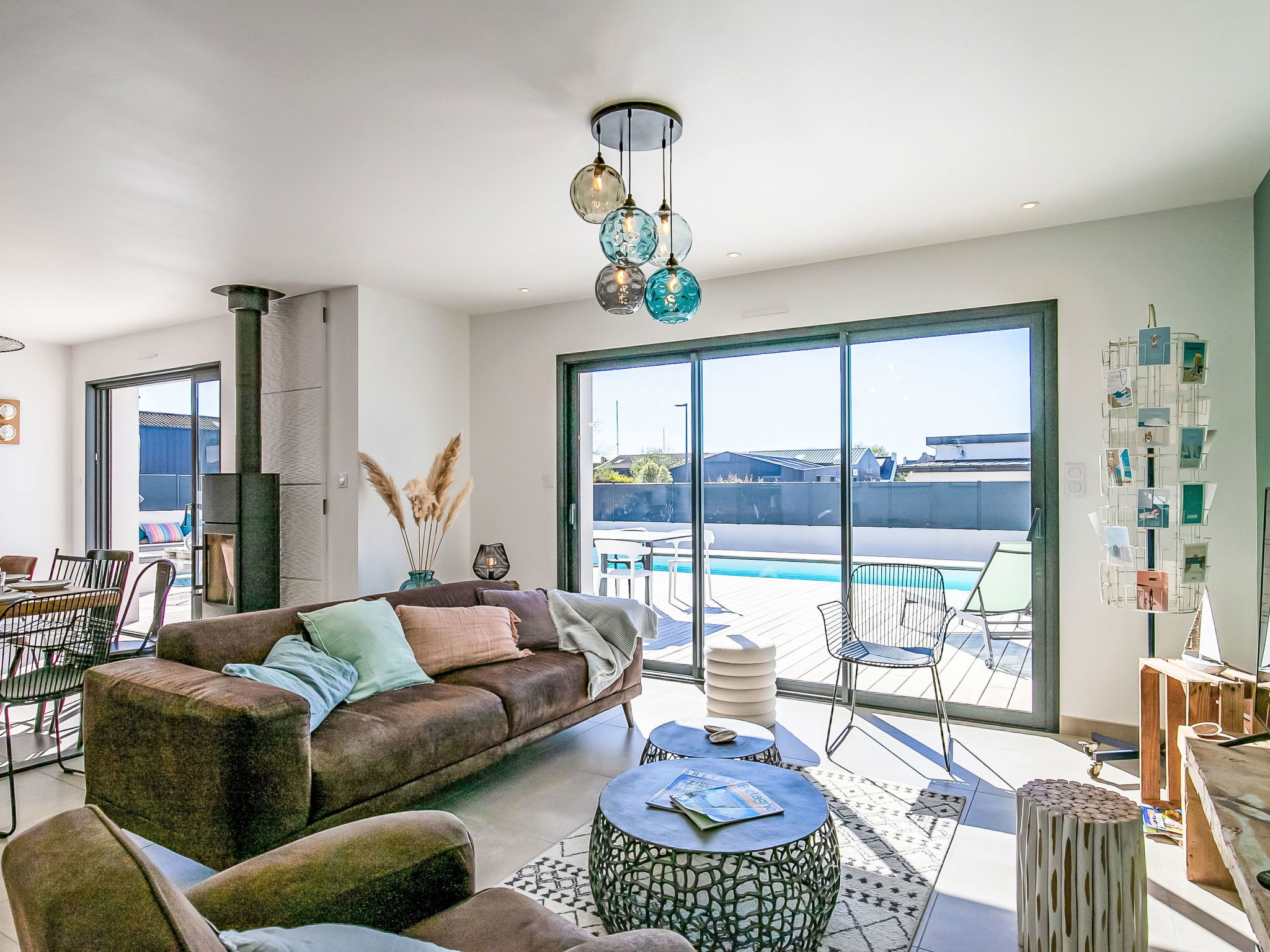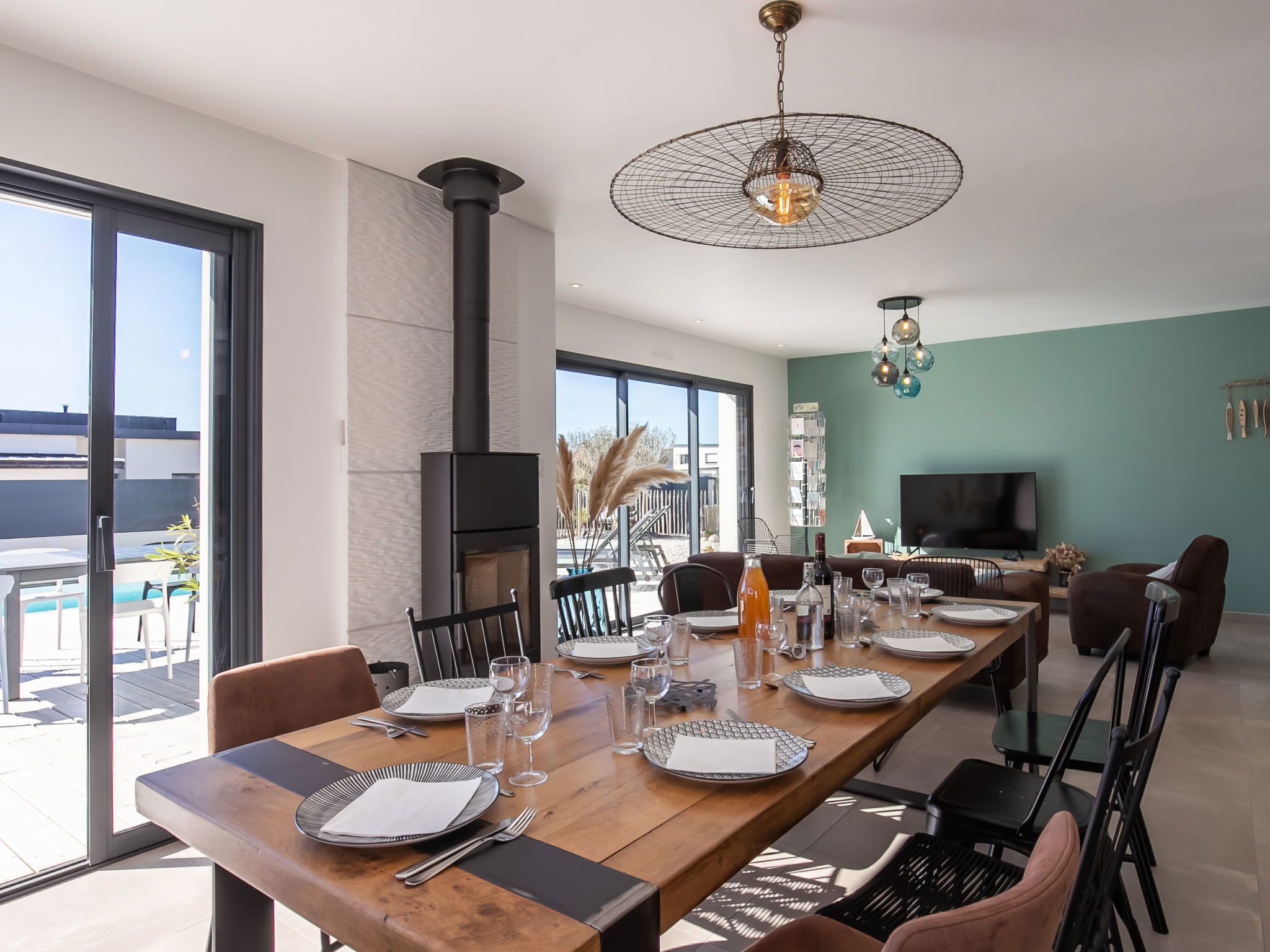 "Au Gré du Vent", 5-room villa 132 m2. Object suitable for 6 adults + 4 children. Spacious and bright, beautiful and tasteful furnishings: open large living/dining room 52 m2 with digital TV and wood-burning stove. Exit to the garden, to the terrace, to the swimming pool. 1 room with Dressing room with 1 french bed (160 cm, length 200 cm), shower. Large, open kitchen (oven, dishwasher, 3 induction hot plates, toaster, kettle, microwave, freezer, electric coffee machine, Capsules for coffee machine (Senseo) extra). Sep. WC. Upper floor: 1 room with 2 beds (90 cm, length 200 cm). 1 room with 1 french bed (160 cm, length 200 cm). 1 room with 2 x 2 bunk beds (90 cm, length 200 cm). Bath/shower, sep. WC, double hand-basin. Electric heating. Large terrace 120 m2, south-west facing position. Terrace furniture, barbecue (portable), deck chairs (4). Facilities: washing machine, dryer, iron, children's high chair, baby cot for up to 2 year olds, hair dryer. Internet (WiFi, free). Please note: suitable for families. Non-smoking house. Maximum 1 small pet/ dog allowed. Smoke alarm. Offer by a private individual according to Art. 155, IV of CGI. 1