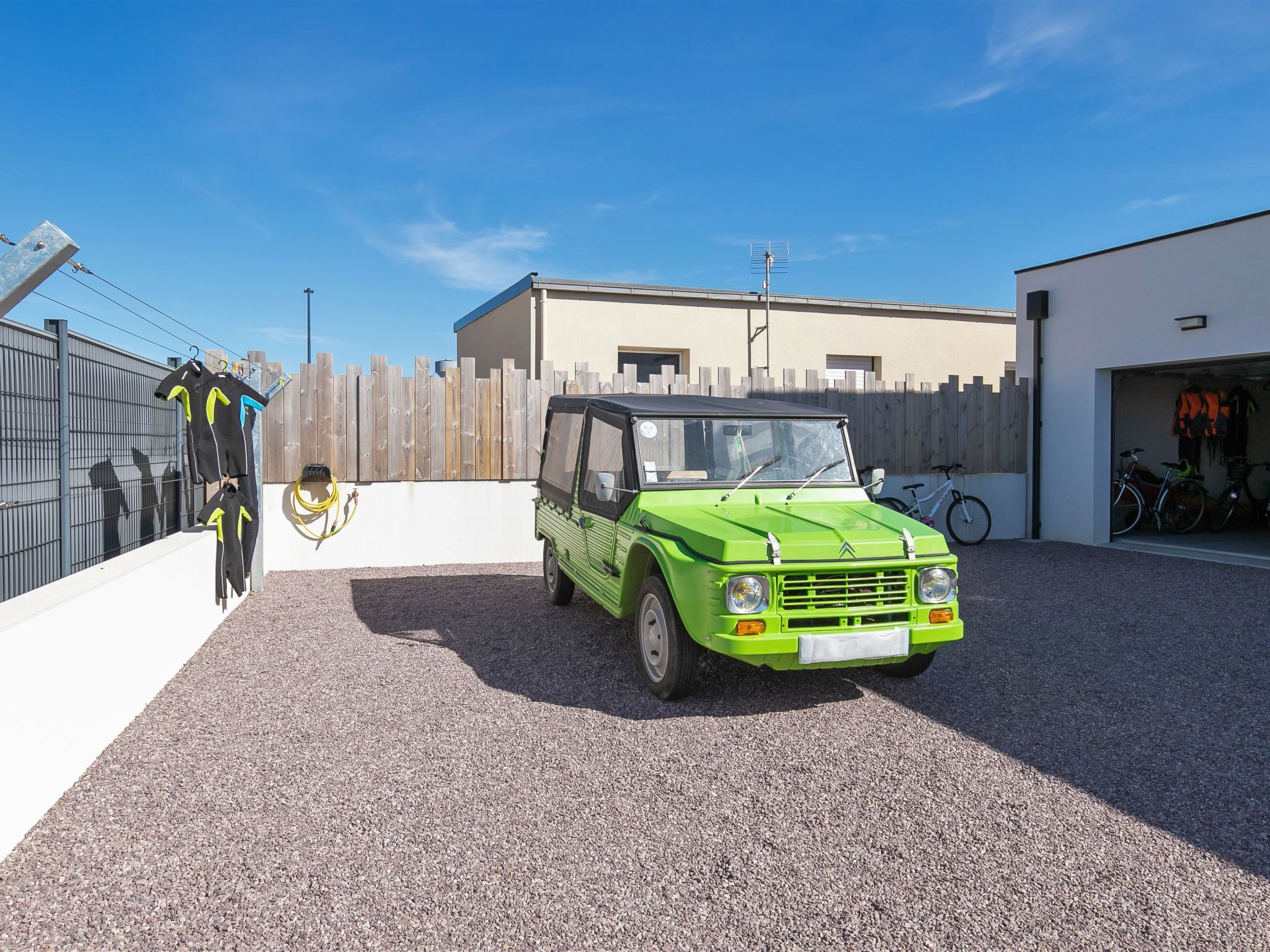 Very modern, beautiful, comfortable single-family house "Au Gré du Vent", built in 2022. 200 m from the centre of Brignogan-Plage, 11 km from the centre of Lesneven, in the residential district, 300 m from the sea, 300 m from the beach, south-west facing position. Private: property 800 m2 (fenced), well-kept garden with lawn and wildlife garden, swimming pool angular, heated, with privacy (8 x 4 m, 32 m2, depth 150 cm, seasonal availability: 20.May. - 28.Sep.) with shutter cover. WC in the pool area, outdoor shower, pool maintenance by the owner/gardener. Parking (for 4 cars) on the premises, single garage. Shop 11 km, grocery 550 m, supermarket 500 m, shopping centre 13 km, restaurant 650 m, bakery 3 km, café 500 m, bus stop "Centre" 400 m, sandy beach "Plage de sable fin" 300 m. Golf course (18 hole) 35 km, surf school, sailing school 600 m, tennis 1.5 km, walking paths from the house 300 m. Nearby attractions: Meneham, Kerlouan 5 km, Dunes de Keremma, Réserve ornithologique 10 km, Plouguerneau, Pays des Abers 2 km, Roscoff, Jardin exotique, Île de Batz 36 km, Château de Kerjean 25 km, Brest, Océanopolis 40 km. Hiking paths: GR34, sentier des douaniers 300 m. Please note: airfield 34 km from the property.