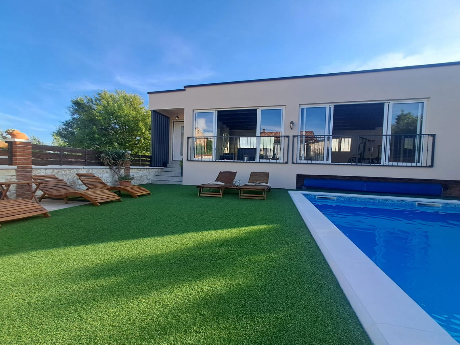 Villa Nicoletta is ready to open its doors for a maximum of 8 people, and optimally 6 people. It offers 120 m2 of living space and is air-conditioned. You will be comfortably accommodated in 3 bedrooms with double beds and en suite bathrooms with showers. An additional two people can sleep on extra beds. The kitchen is fully equipped with everything you need to prepare meals for family and friends, and there is also a dining room and a living room.