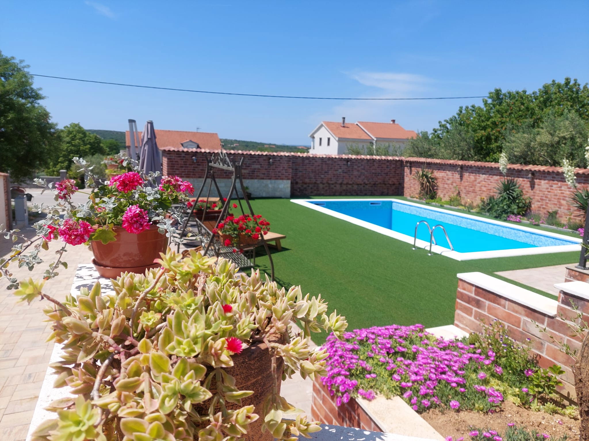 Villa Nicoletta is located in Polača, a small Dalmatian village surrounded by green hills, olive groves and vineyards. The Krka National Park and the Krka River are nearby, making Polača a great base for nature trips and activities such as hiking, cycling or kayaking. Although Polača is not on the coast, beautiful Dalmatian beaches are only a short drive away.