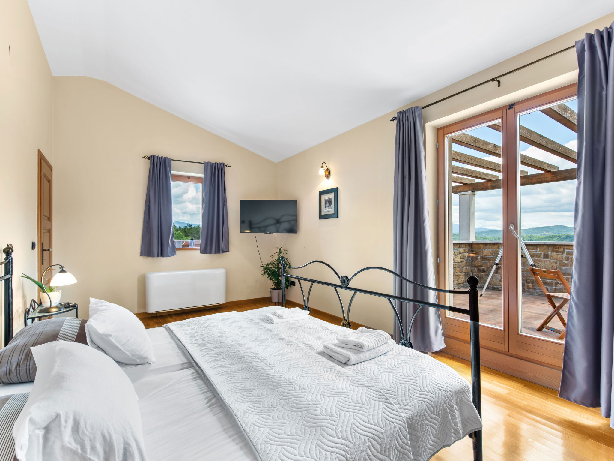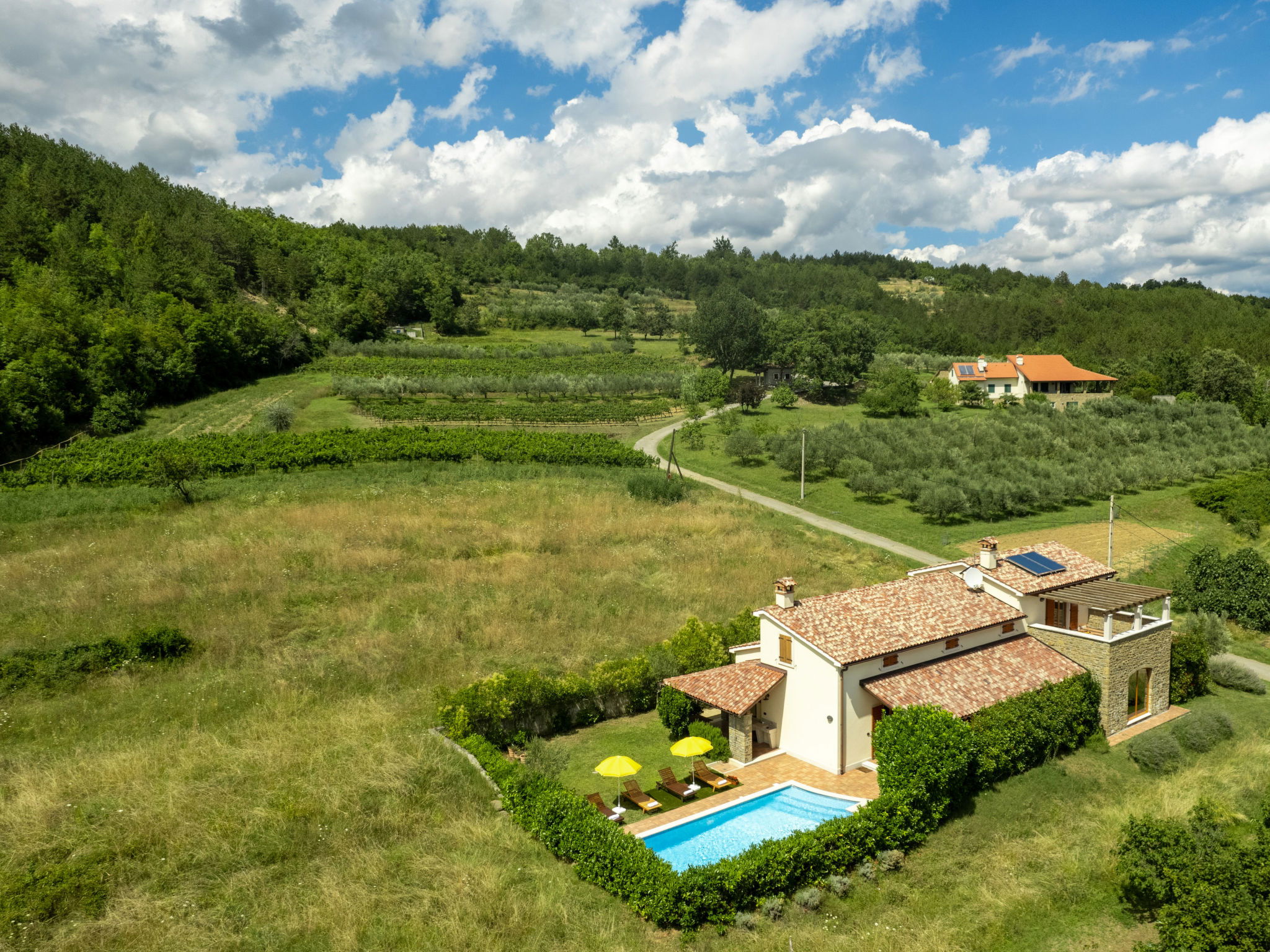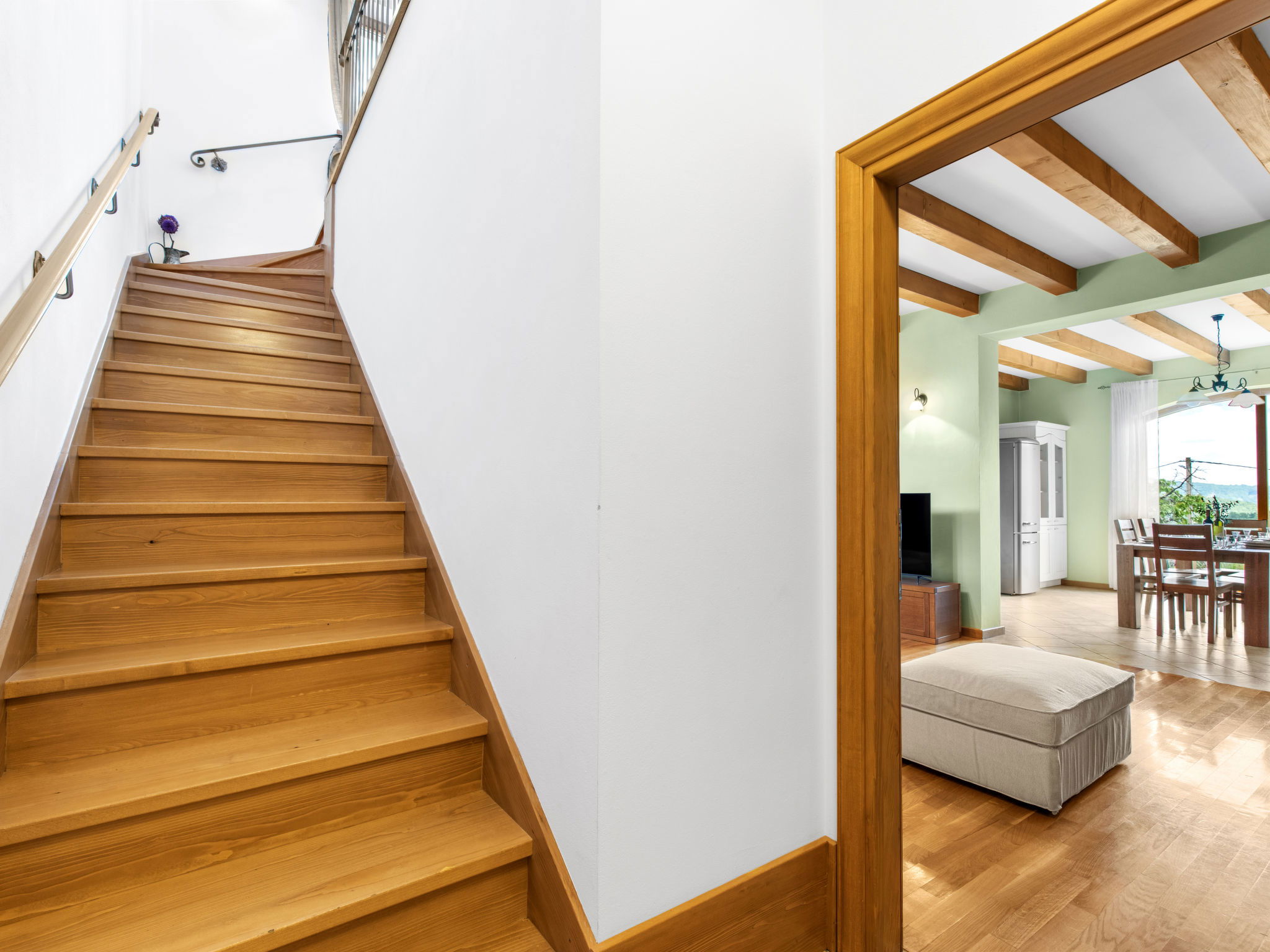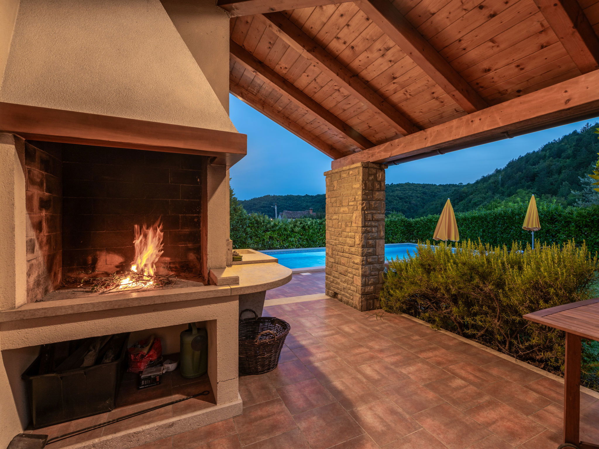 Beautiful, rustic villa "Dol", 2 storeys. In the hamlet Dol 10 km from the centre of Buzet, 15 km from the centre of Motovun, in a quiet position, 39 km from the sea, 40 km from the beach, in the countryside. Private: property 1'000 m2, swimming pool (8 x 4 m, 32 m2, depth 165 cm, seasonal availability: 01.May. - 01.Oct.) with internal staircase. Outdoor shower, hot tub, badminton, garden furniture, barbecue, pool maintenance by the owner/gardener. In the house: internet access, sauna, fitness room, hot tub (all included), washing machine. Shop 10 km, supermarket 10 km, restaurant 7 km, bus stop 10 km, railway station 17 km. Walking paths from the house, cycle lane 50 m. The owner does not accept any groups. The owner does not accept any youth groups.