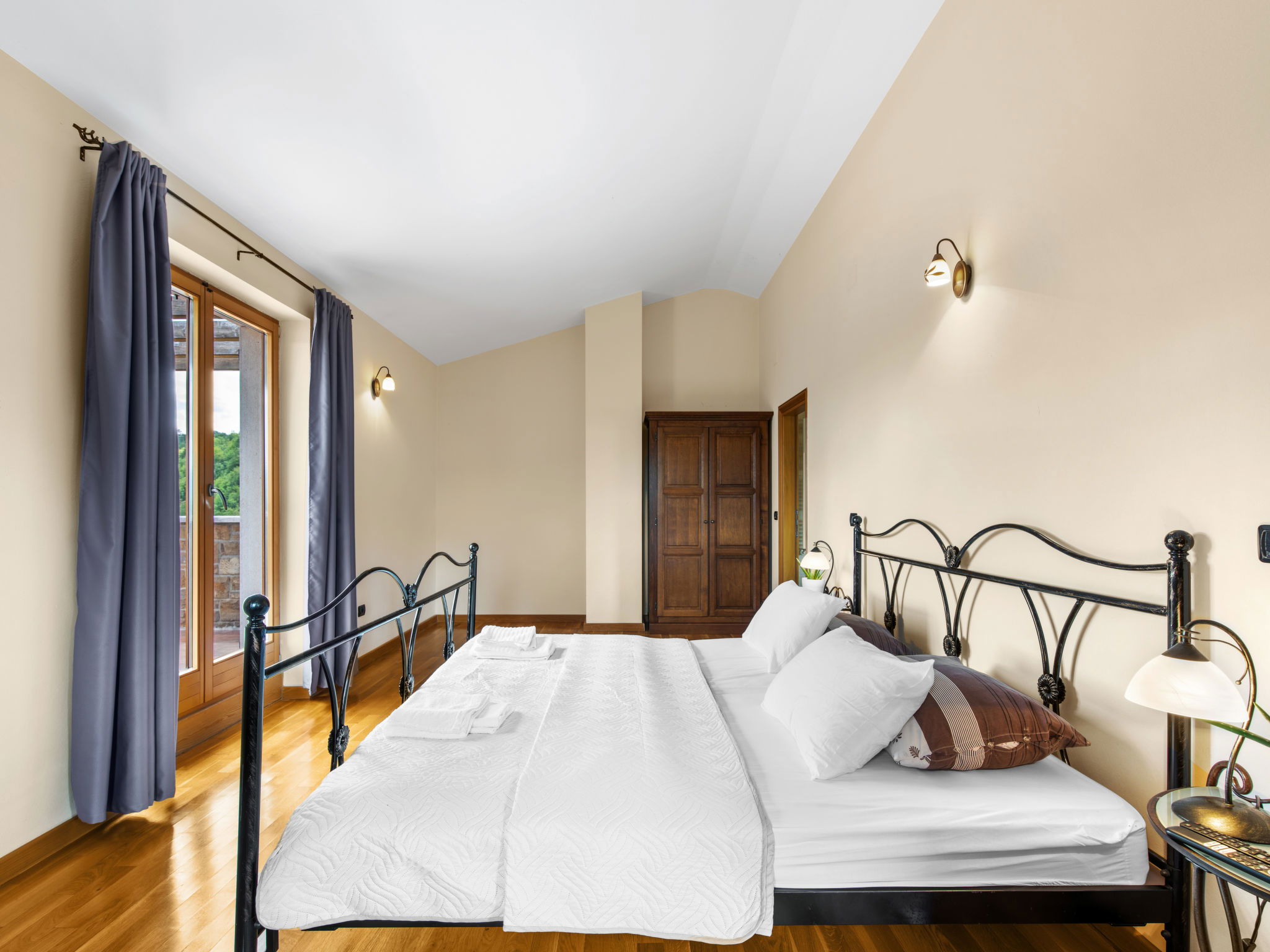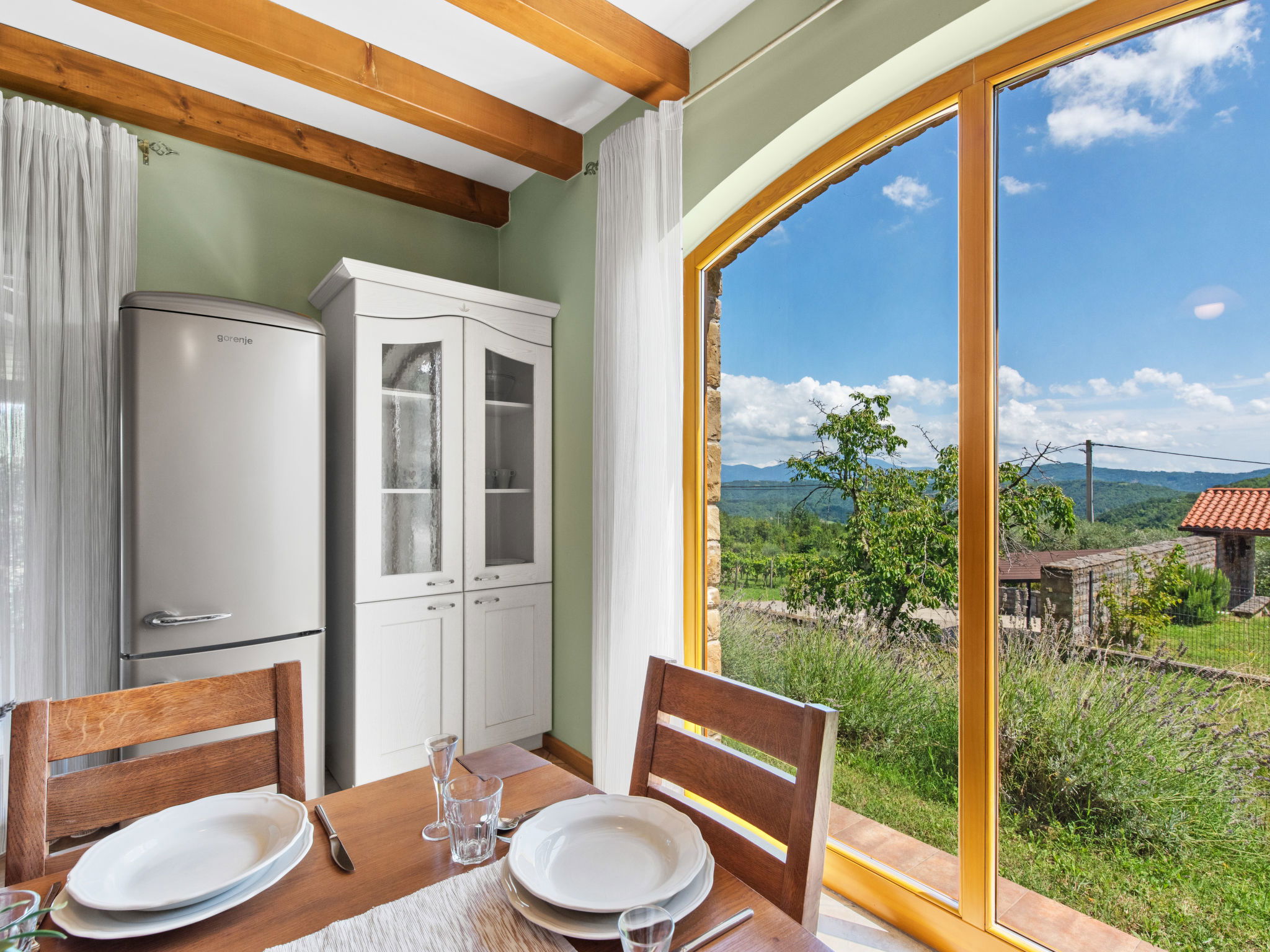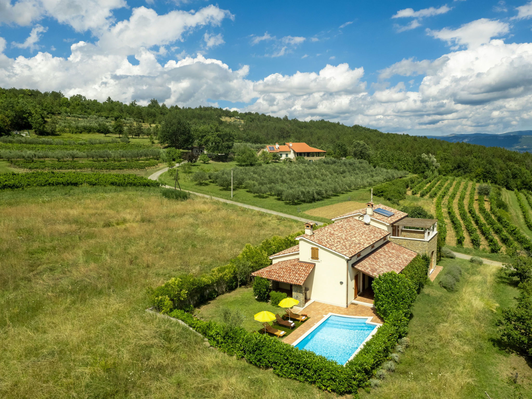 Beautiful, rustic villa "Dol", 2 storeys. In the hamlet Dol 10 km from the centre of Buzet, 15 km from the centre of Motovun, in a quiet position, 39 km from the sea, 40 km from the beach, in the countryside. Private: property 1'000 m2, swimming pool (8 x 4 m, 32 m2, depth 165 cm, seasonal availability: 01.May. - 01.Oct.) with internal staircase. Outdoor shower, hot tub, badminton, garden furniture, barbecue, pool maintenance by the owner/gardener. In the house: internet access, sauna, fitness room, hot tub (all included), washing machine. Shop 10 km, supermarket 10 km, restaurant 7 km, bus stop 10 km, railway station 17 km. Walking paths from the house, cycle lane 50 m. The owner does not accept any groups. The owner does not accept any youth groups.