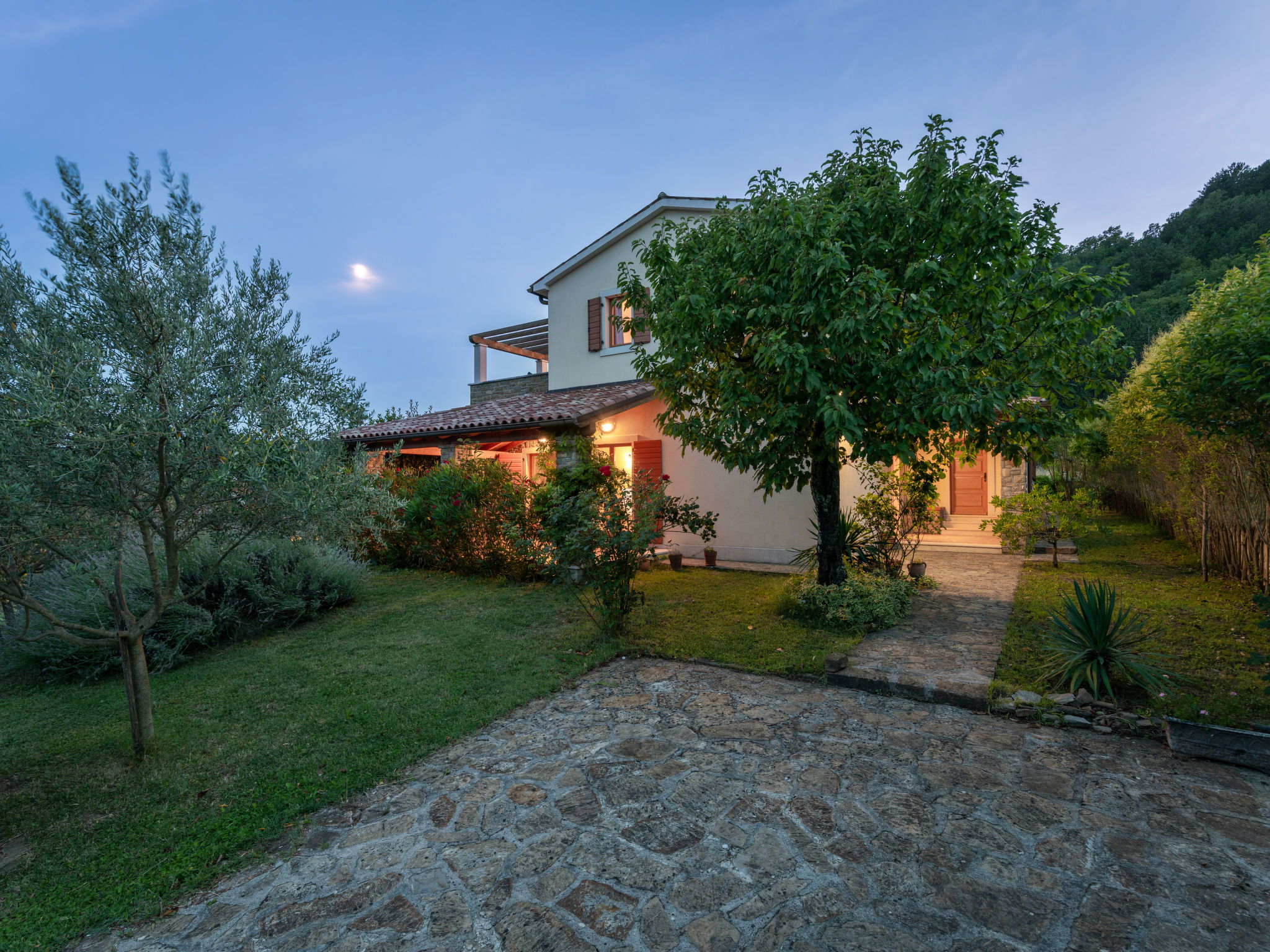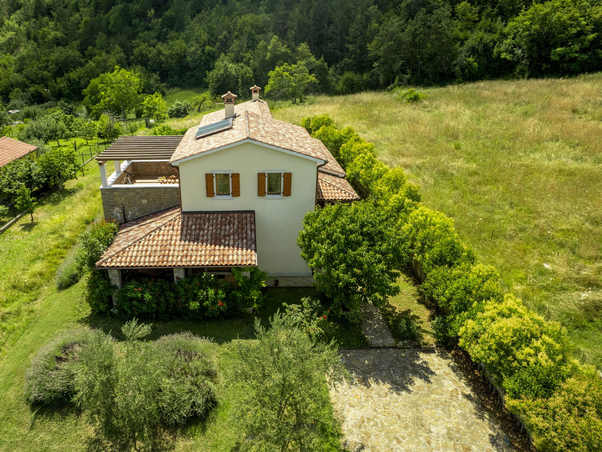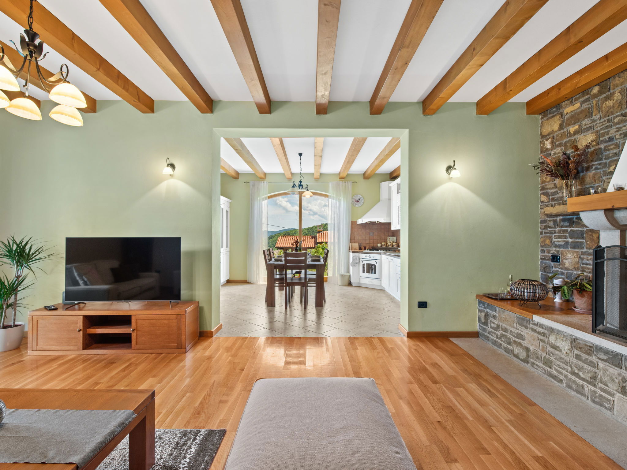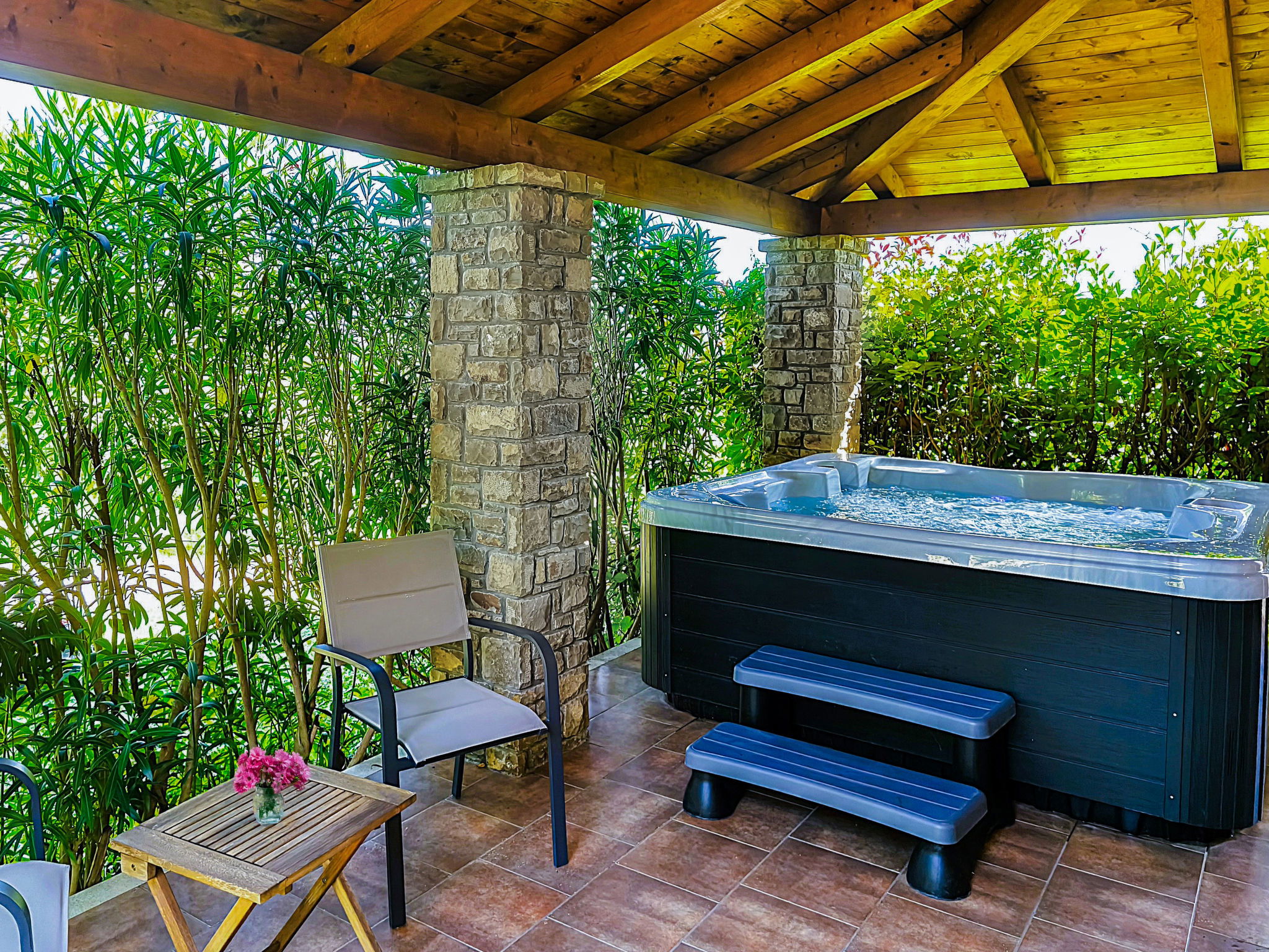 Beautiful, rustic villa "Dol", 2 storeys. In the hamlet Dol 10 km from the centre of Buzet, 15 km from the centre of Motovun, in a quiet position, 39 km from the sea, 40 km from the beach, in the countryside. Private: property 1'000 m2, swimming pool (8 x 4 m, 32 m2, depth 165 cm, seasonal availability: 01.May. - 01.Oct.) with internal staircase. Outdoor shower, hot tub, badminton, garden furniture, barbecue, pool maintenance by the owner/gardener. In the house: internet access, sauna, fitness room, hot tub (all included), washing machine. Shop 10 km, supermarket 10 km, restaurant 7 km, bus stop 10 km, railway station 17 km. Walking paths from the house, cycle lane 50 m. The owner does not accept any groups. The owner does not accept any youth groups.