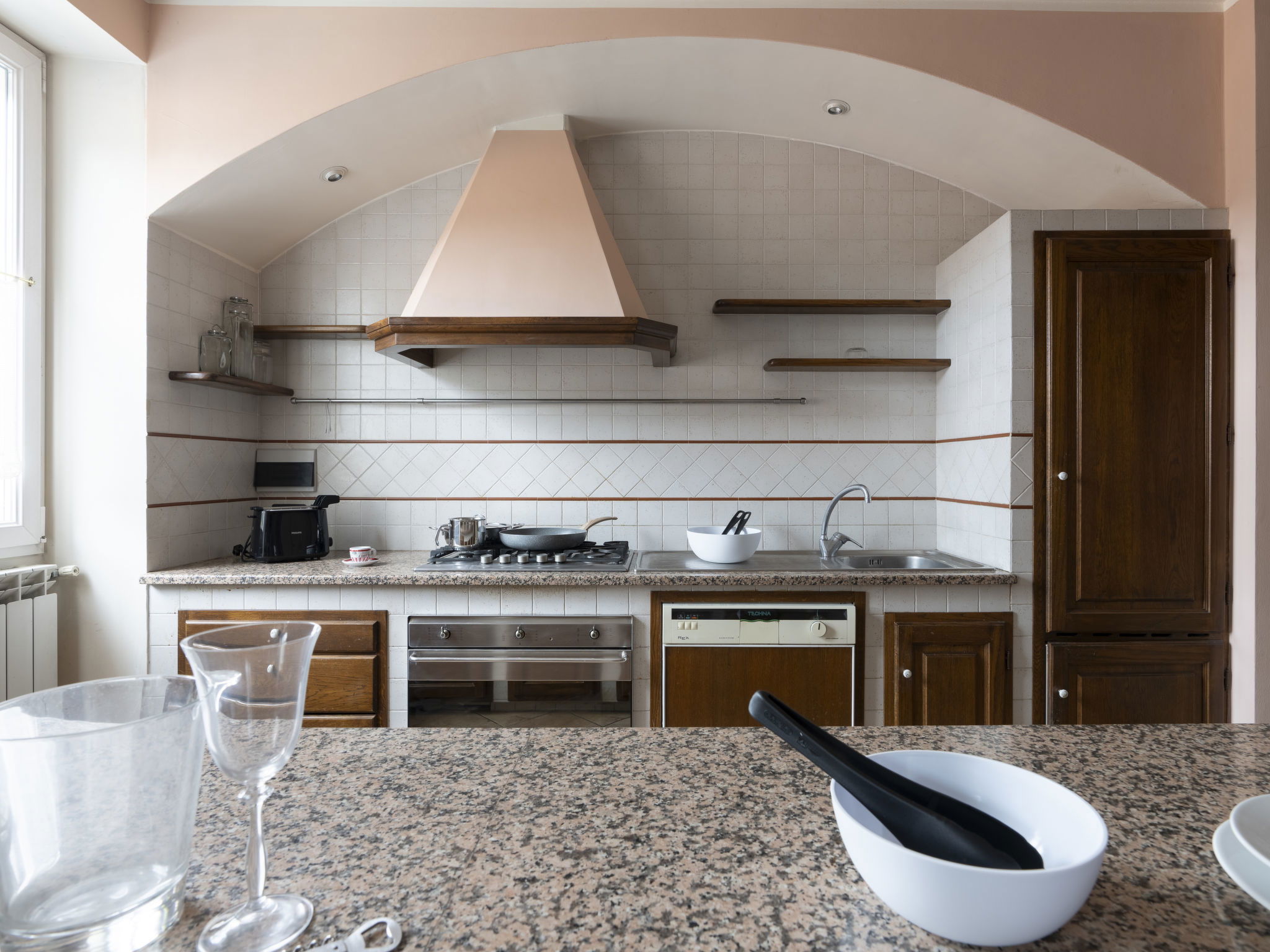 "Villa Fontana Vecchia", 4-room house 140 m2 on 2 levels. Bright, tasteful and cosy furnishings: living/dining room with open-hearth fireplace (only for decoration). Exit to the terrace. 1 double bedroom. Kitchenette (oven, dishwasher, 4 gas rings, toaster, kettle, microwave). Exit to the terrace. Bath/bidet/WC. Upper floor: 1 double bedroom, ceiling height 140 - 220 cm. Exit to the balcony. 1 room, ceiling height 140 - 220 cm with 2 beds (90 cm, length 200 cm). Exit to the balcony. Shower/bidet/WC. Gas heating. Heating available only from 01.11. to 30.04. Small balcony 5 m2, large terrace 100 m2. Terrace furniture, barbecue, deck chairs. Beautiful view of the countryside. Facilities: washing machine, children's high chair, baby cot for up to 2 year olds, hair dryer. Internet (WiFi, free). Garage at the house. Maximum 1 pet/ dog allowed. IT008045C2OR2RNTQR