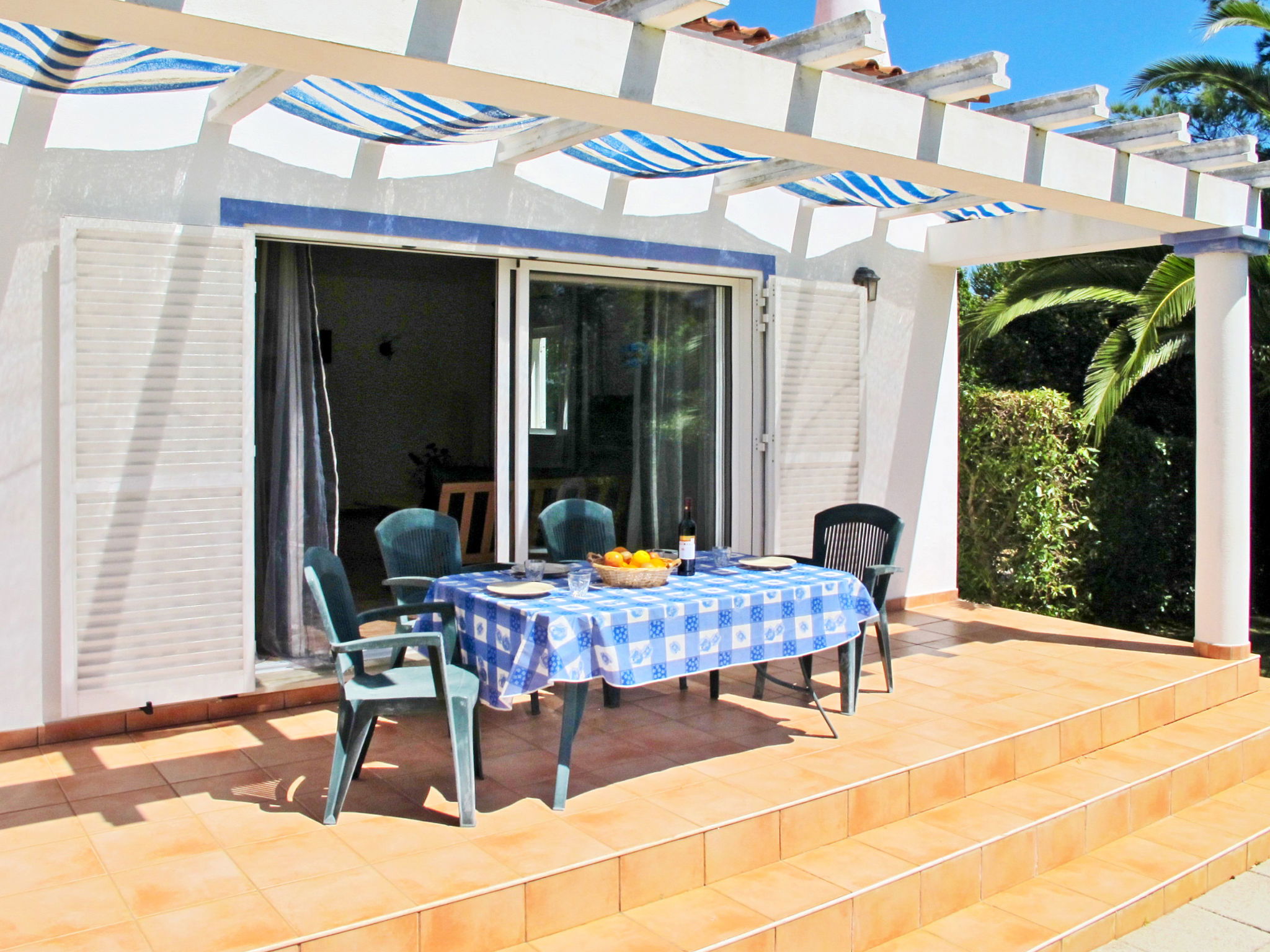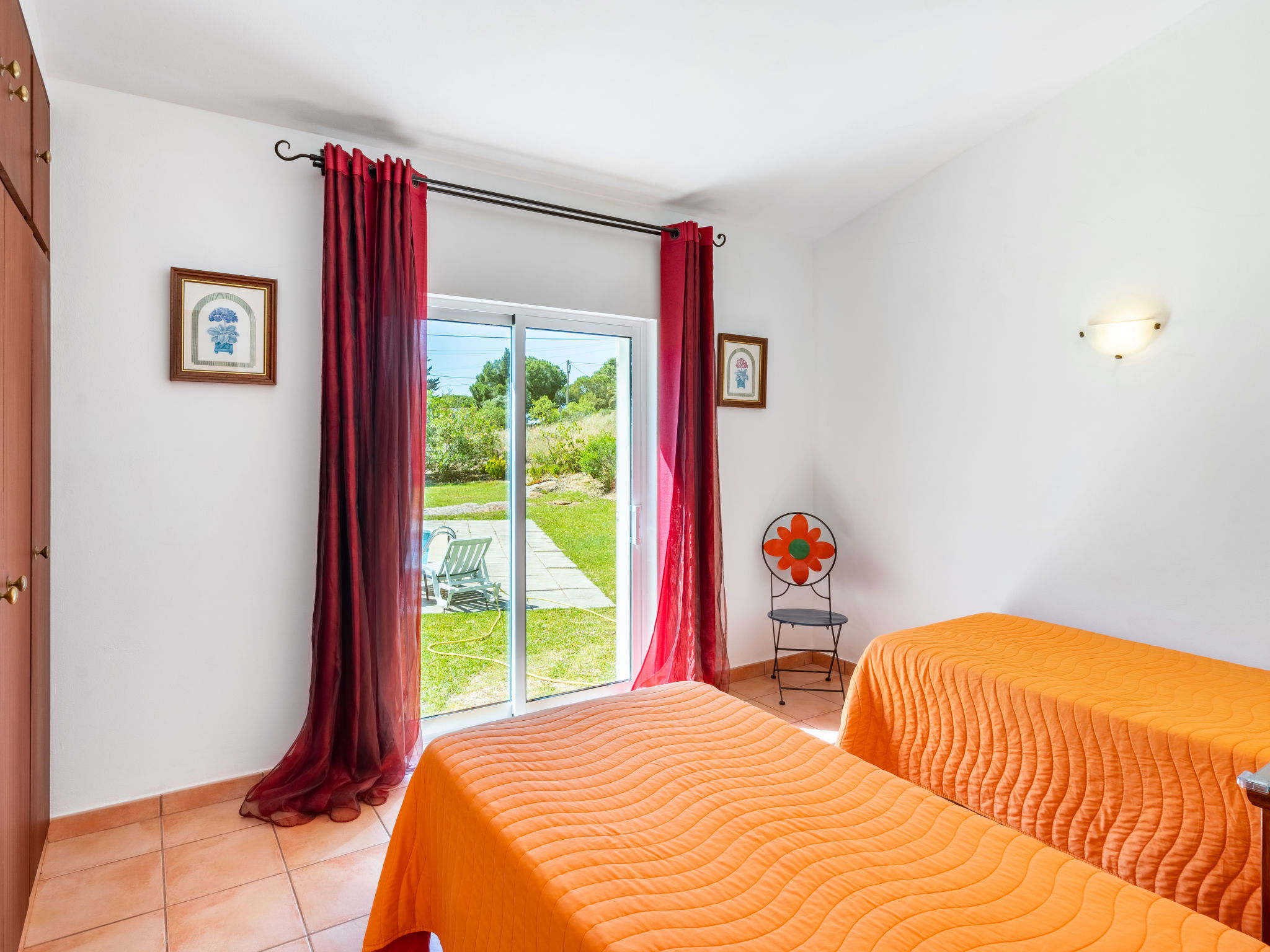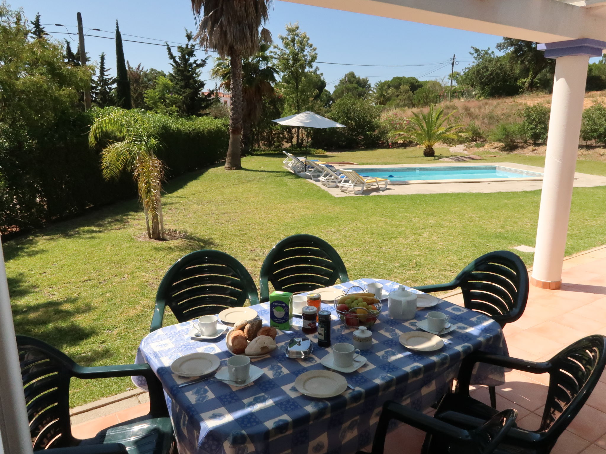 House "Monte Quercus". 700 m from the centre of Porches, 50 km from the centre of Faro, 5 km from the sea. Private: property 5'000 m2, well-kept garden (fenced) with lawn and wildlife garden, swimming pool (7 x 4 m, depth 110 - 180 cm, seasonal availability: 15.Mar. - 15.Nov.). Parking on the premises. Supermarket 4 km, restaurant, pub garden 600 m, bus stop 650 m, railway station "Poço Barreto" 4.7 km, sandy beach "Nossa Senhora da Rocha" 5 km, indoor swimming pool 6 km. Golf course (18 hole) 8.4 km, tennis 5 km. Nearby attractions: Aqualand 4 km, Zoomarine 9.6 km. Hiking paths: Passadiço do Algar Seco 10.4 km, 7 Vales Suspensos 9.6 km.