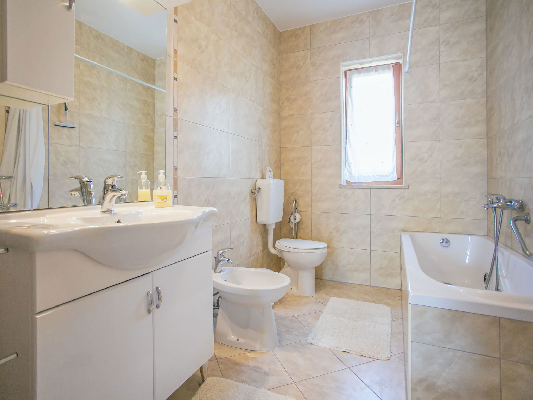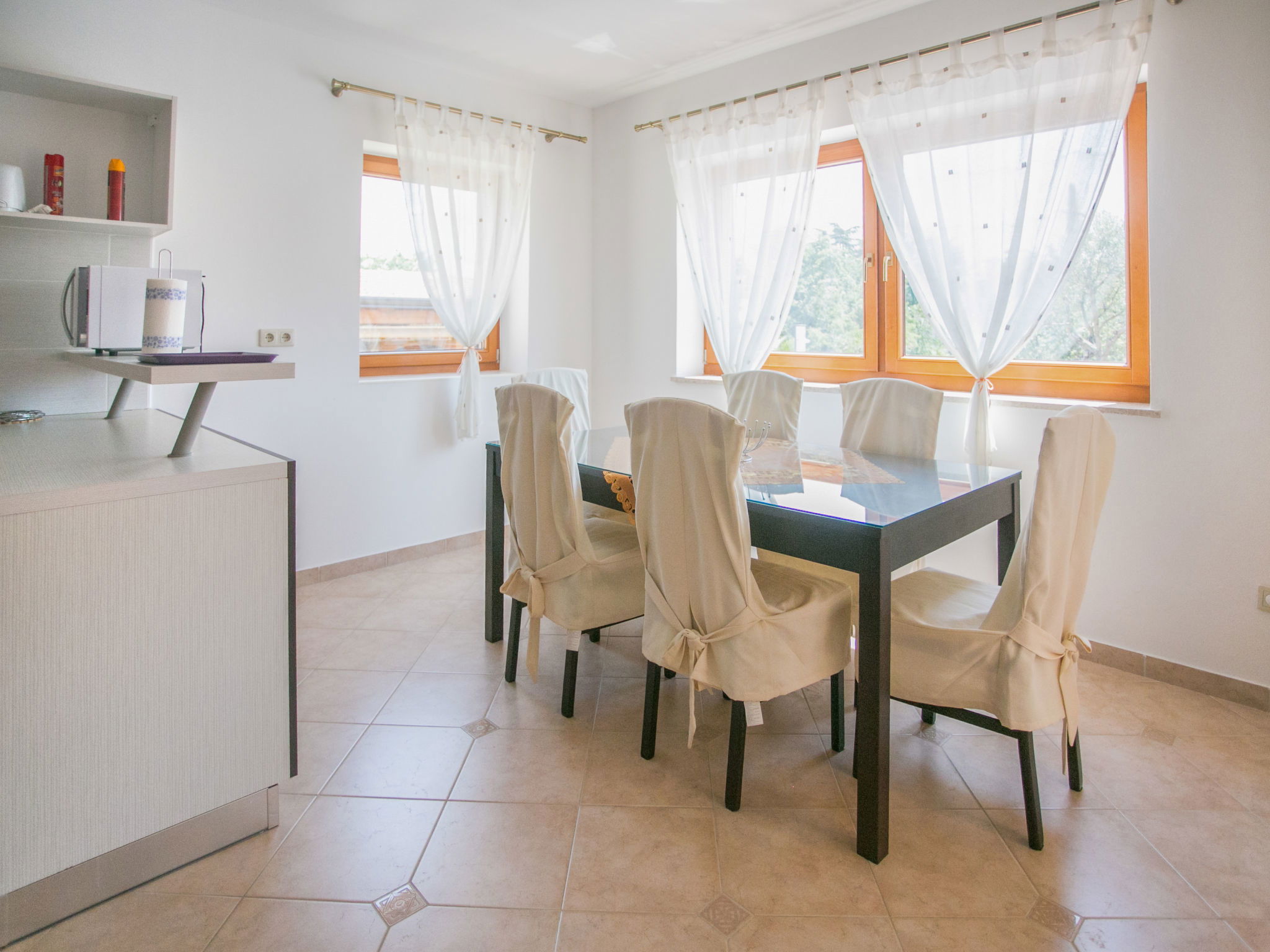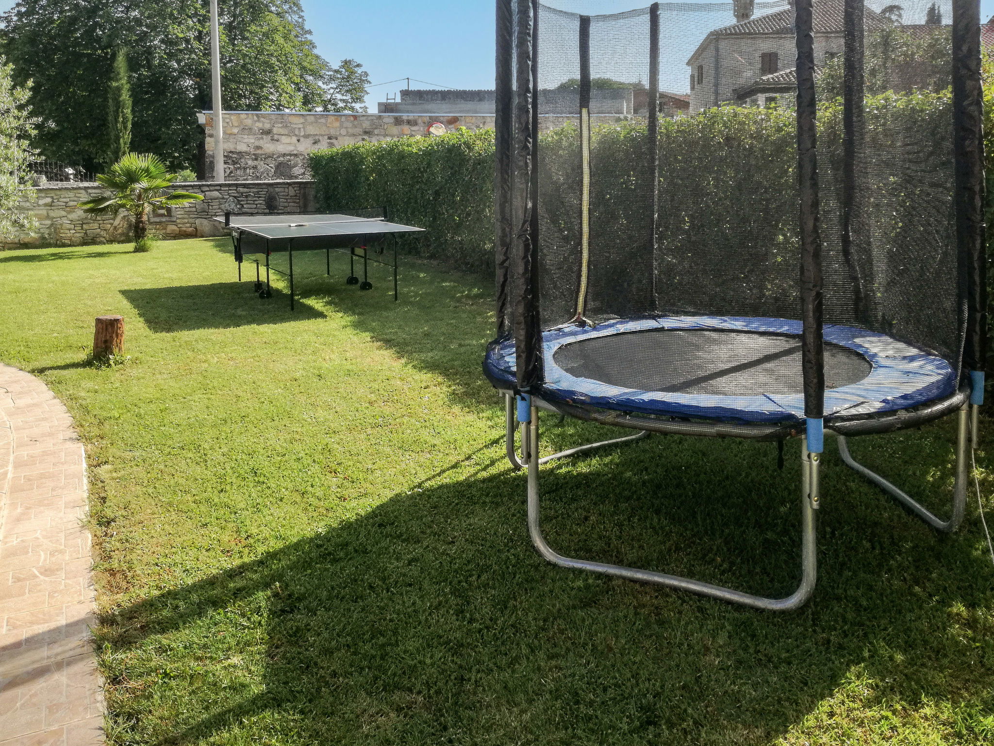 Beautiful single-family house "Villa Nevena", 2 storeys. 2 km from the centre of Žbandaj, 6 km from the centre of Poreč, 6 km from the sea. Private: property 980 m2 (fenced) with lawn and wildlife garden, swimming pool angular (5 x 10 m, depth 150 cm, seasonal availability: 01.Apr. - 01.Nov.). Outdoor shower, terrace (30 m2), garden furniture, barbecue house. In the house: internet access, table tennis, trampoline, washing machine. Parking (for 3 cars) at the house on the premises. Shop 1 km, supermarket 1 km, bus stop 850 m, pebble beach 6 km. Marina 6 km. Nearby attractions: Aquapark 7 km. The owner does not accept any youth groups. The house consists of 2 apartments rented as one unit.