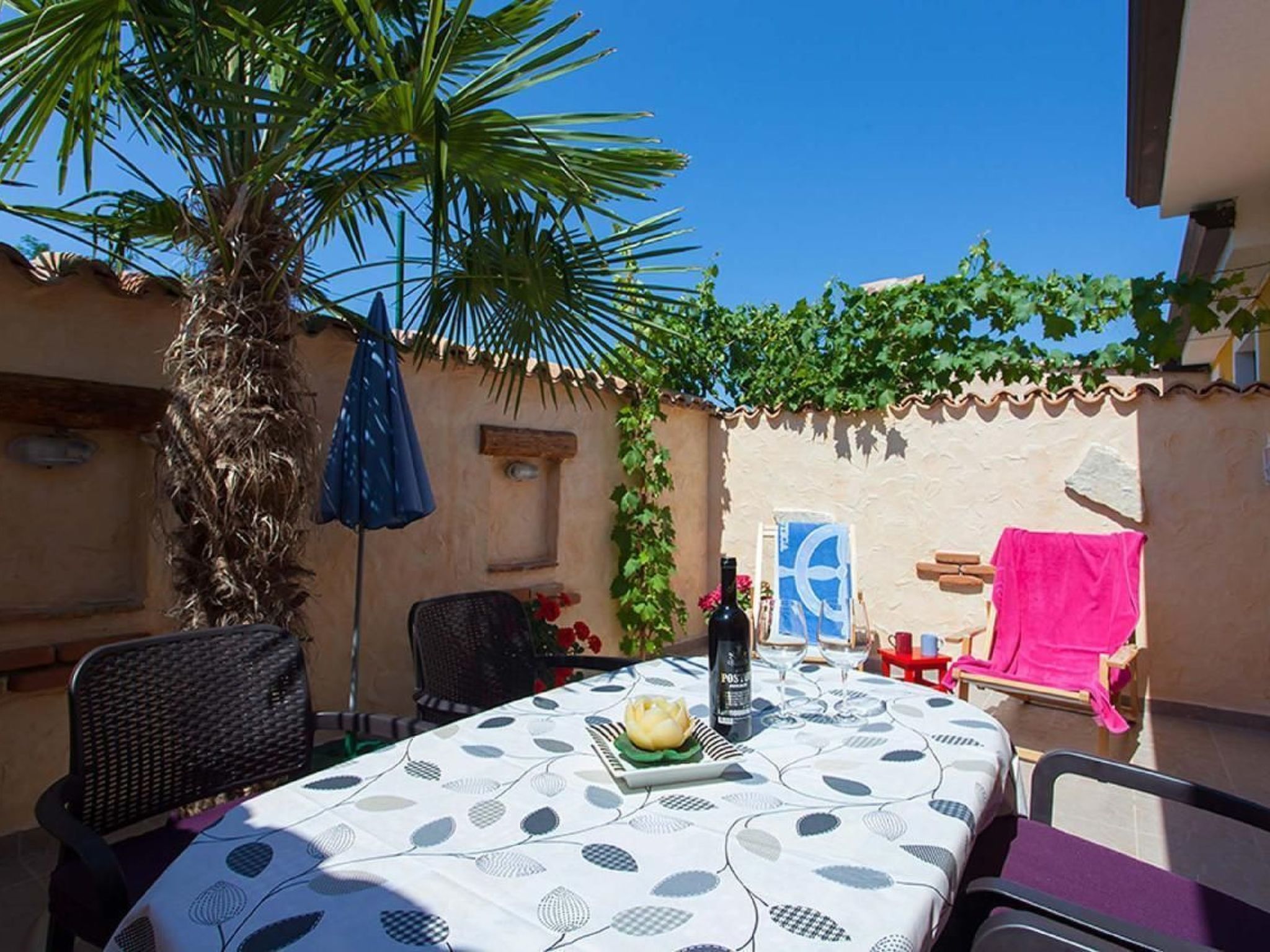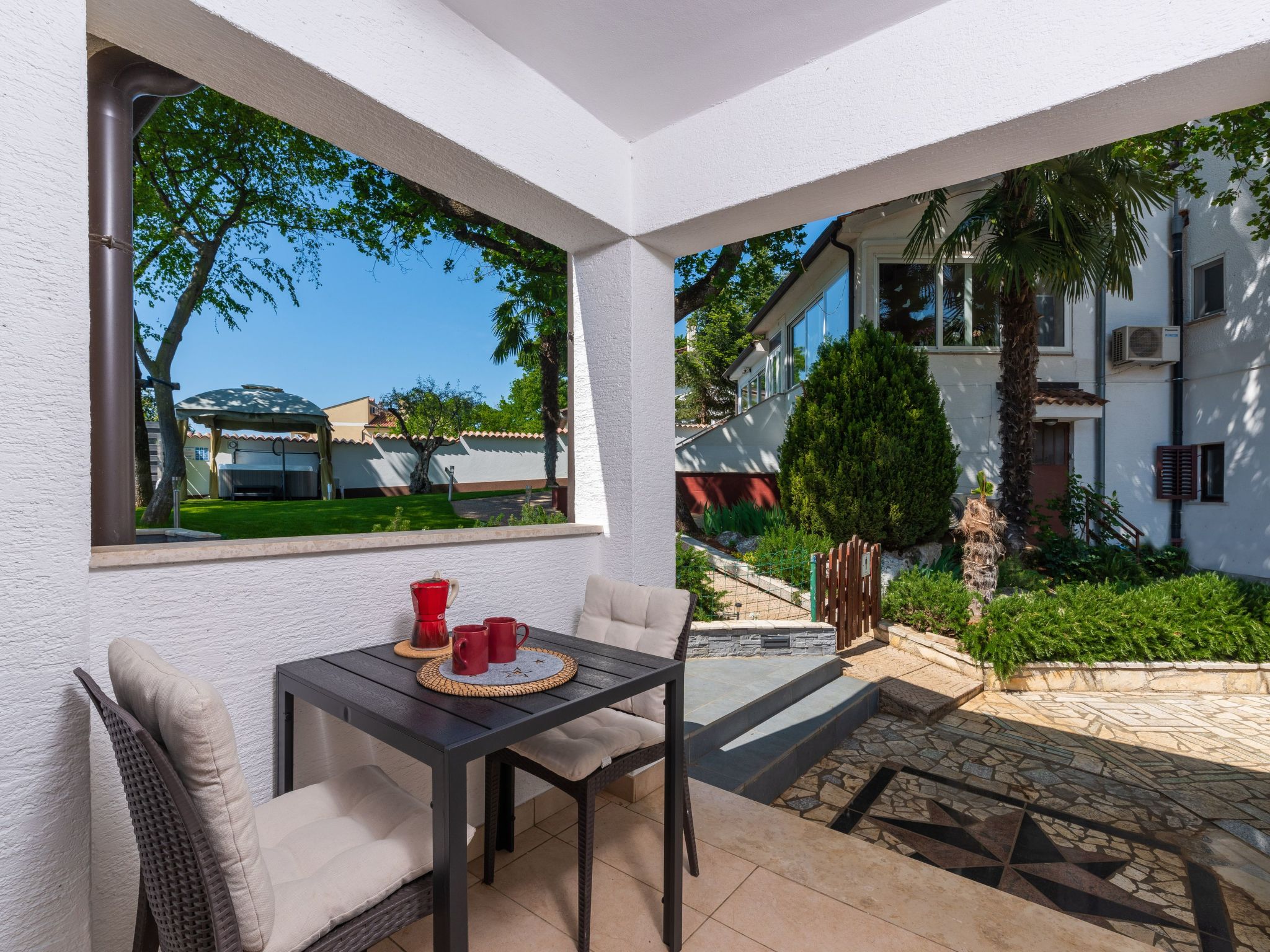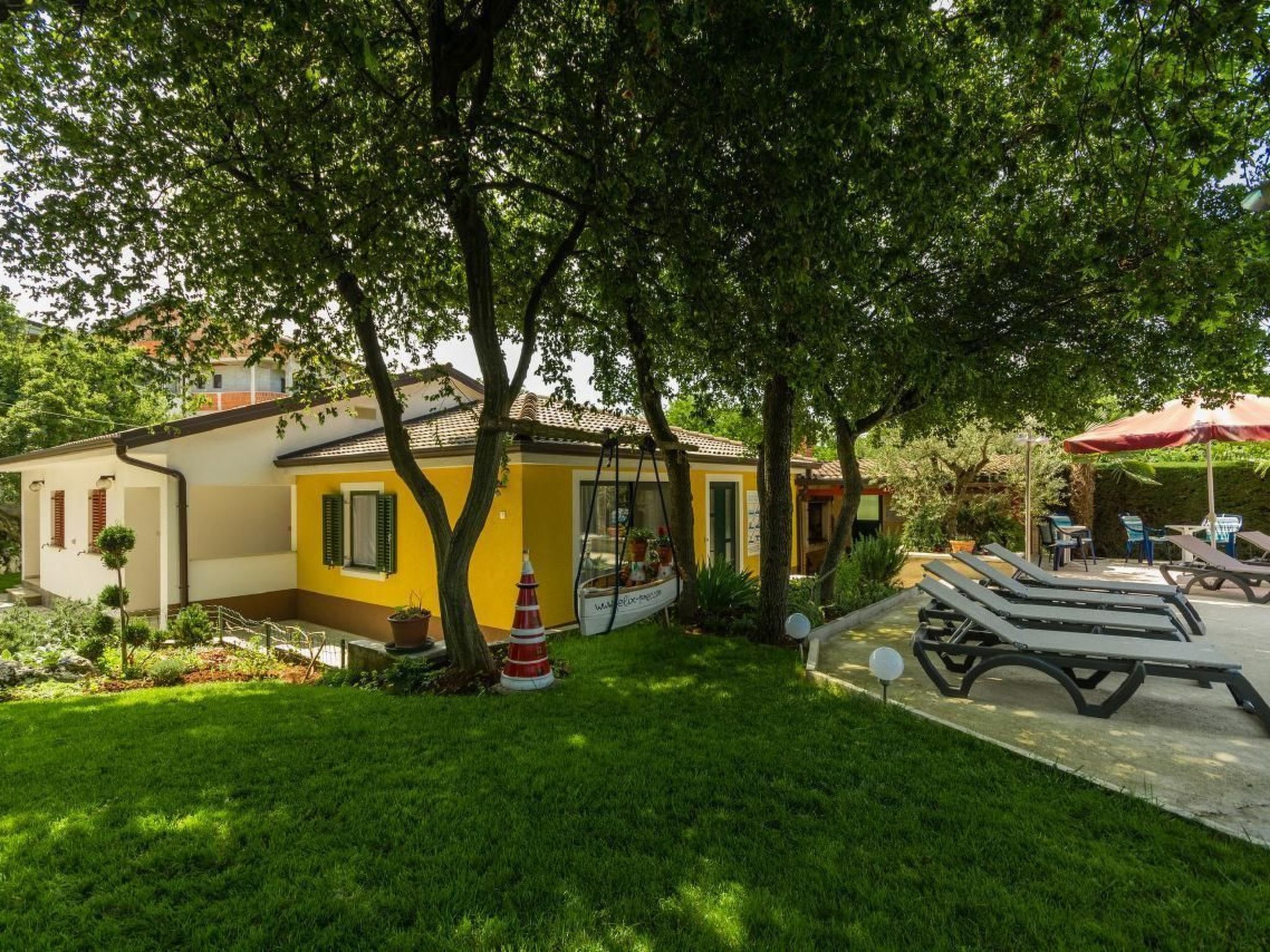 Maximum 2 pets/ dogs allowed. Discover a unique blend of comfort and nature at Residence Felix in Kukci for an unforgettable holiday. Our charming complex with three bungalows and three flats is located in the immediate vicinity of the beach and at the same time offers the tranquillity of a private oasis with a beautifully landscaped garden. Let yourself be enchanted by the proximity to the historic old town and enjoy relaxing moments in our heated communal pool.The new heated communal pool measuring 7.5 x 3.5 meters, with a depth of 1.5 meters. It is open for use from mid‑April to mid‑October and maintained at 27°C.”