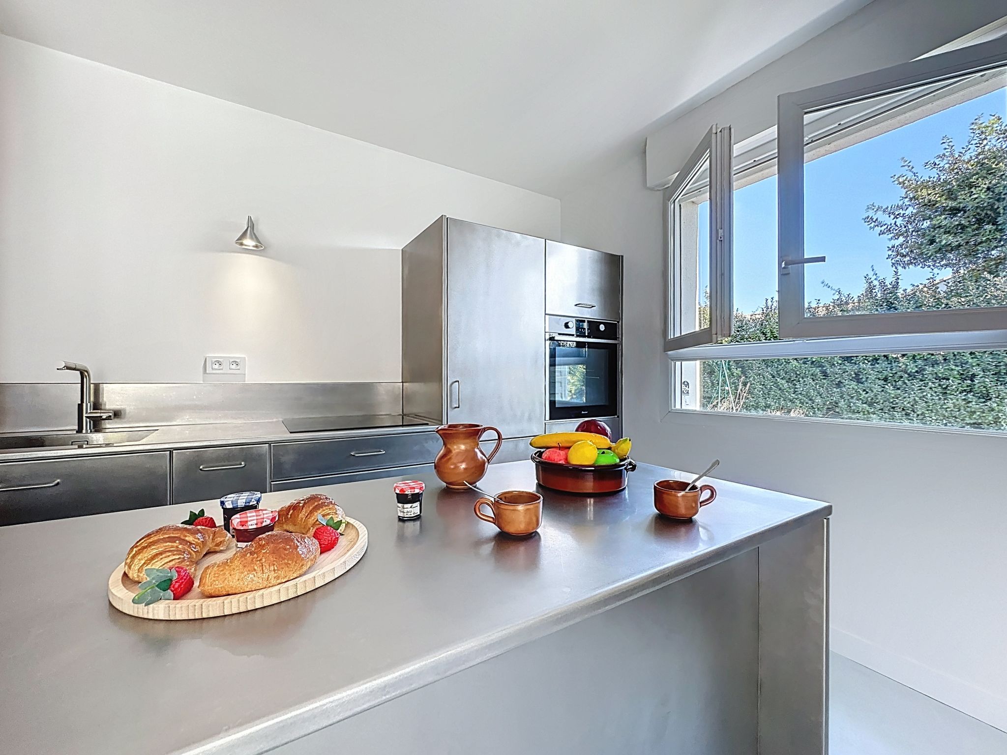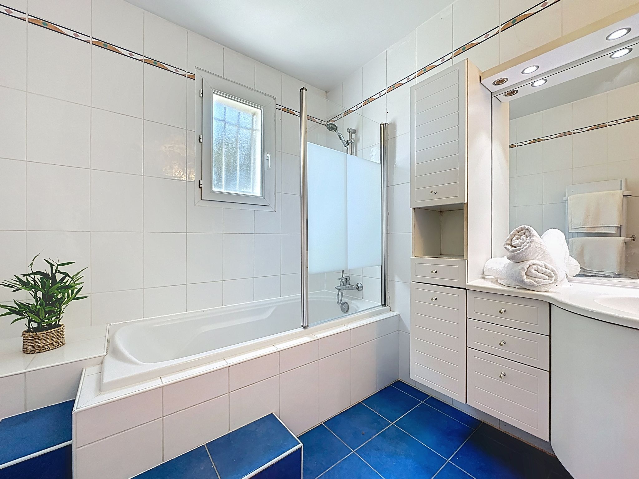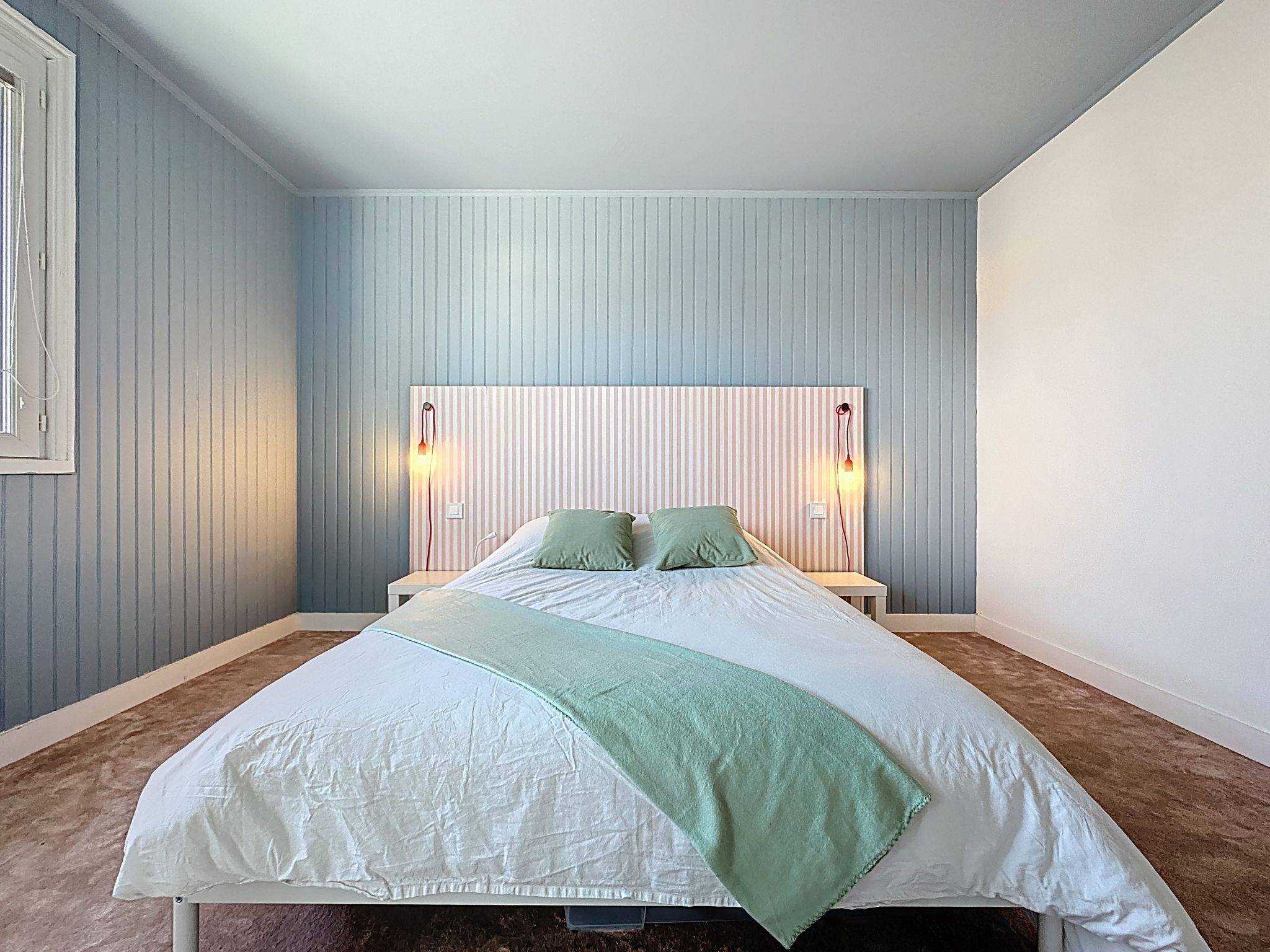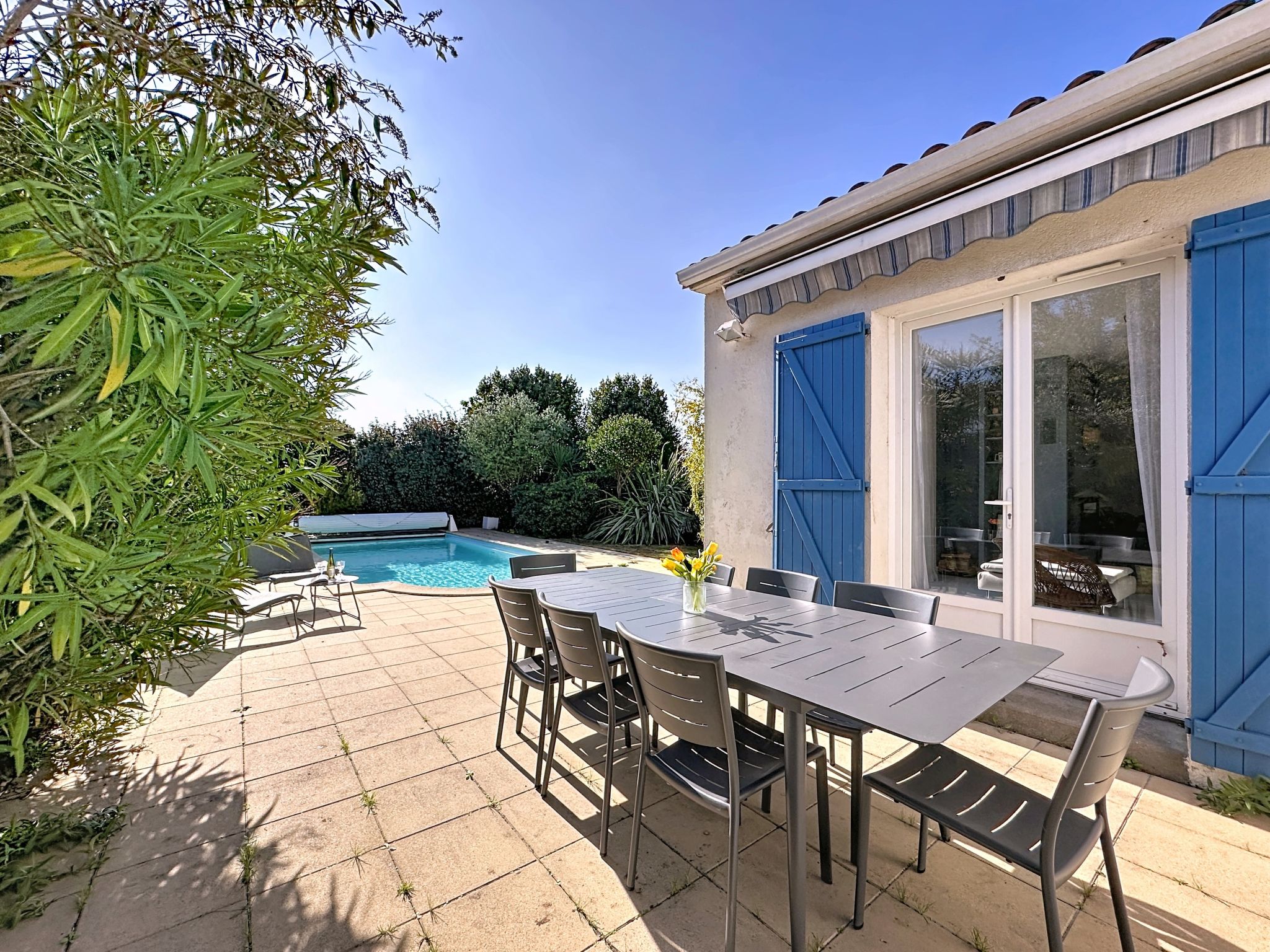"Ma Petite Mer", 6-room house 135 m2 on 2 levels, south-east facing position. Spacious and bright, renovated, modern and stylish furnishings: large living/dining room with open-hearth fireplace. Exit to the terrace, south facing position and east facing position. Lounge with TV (flat screen). Office. 1 room with 1 french bed (1 x 140 cm, length 190 cm). Open kitchen (oven, dishwasher, 3 induction hot plates, toaster, kettle, freezer, electric coffee machine, Capsules for coffee machine (Nespresso) extra). Bathroom, sep. WC. Upper floor: 2 rooms, each room with 1 french bed (1 x 140 cm, length 190 cm). 1 children's room with 1 x 2 bunk beds (90 cm, length 190 cm). Luggage room with Dressing room. Shower/WC. Large terrace 70 m2, south facing position and, east facing position. Terrace furniture, barbecue. Facilities: washing machine, dryer, iron, children's high chair, baby cot for up to 2 year olds, hair dryer. Internet (WiFi, free). Parking (fenced 3 cars). E-charging station. Please note: non-smoking house. Maximum 1 pet/ dog allowed. Smoke alarm. Offer by a commercial proprietor according to Art. 155, IV, CGI 44131001275F3