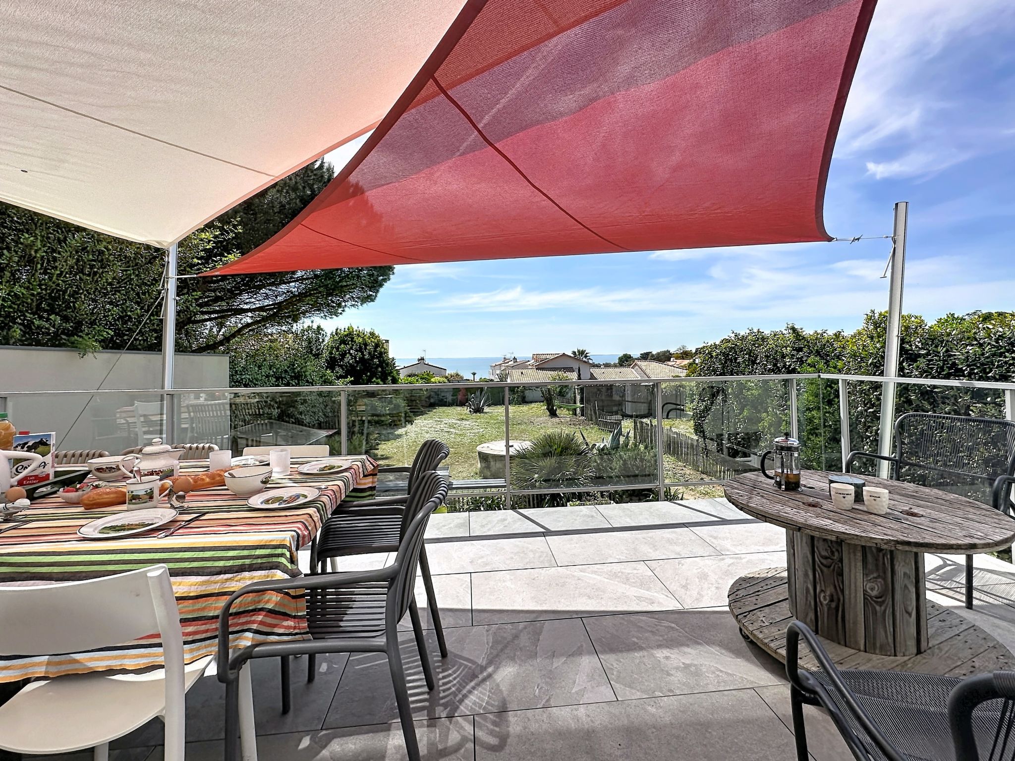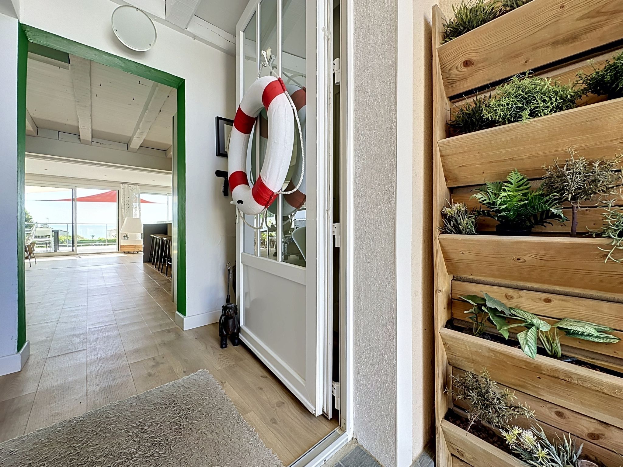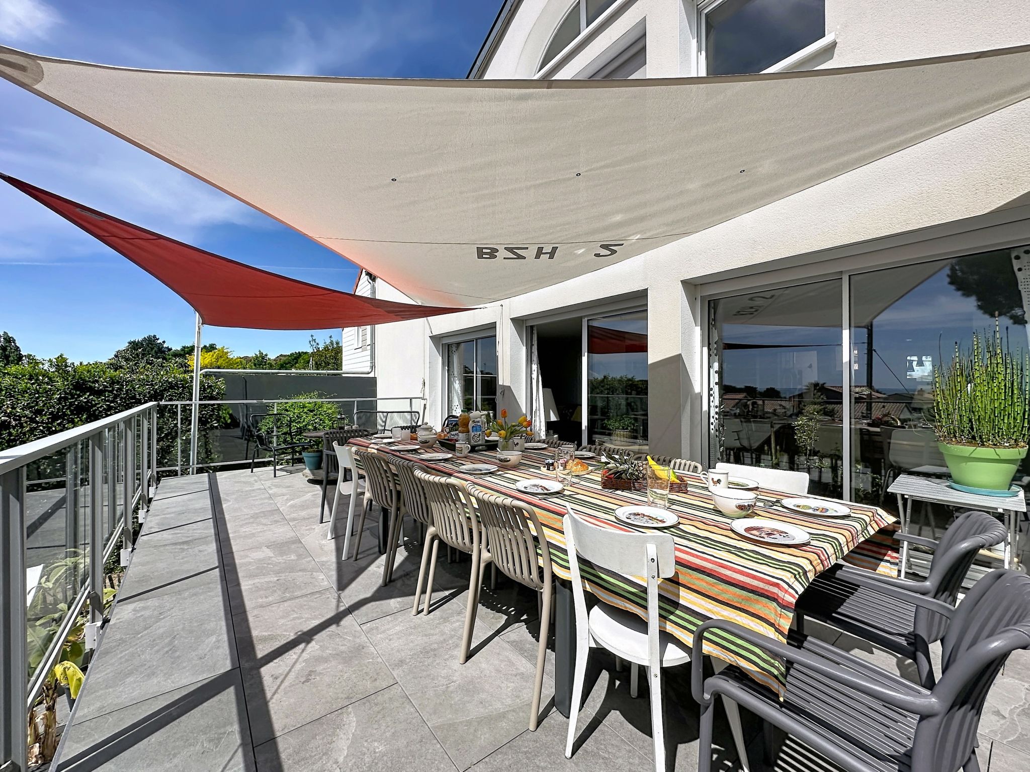"L'Incroyable Océane", 10-room house 275 m2 on 2 levels, south facing position. Spacious, modern and stylish furnishings: large living/dining room. Exit to the terrace, south facing position. 1 room with 1 french bed (1 x 140 cm, length 190 cm), hand-basin and shower. Open kitchen (oven, dishwasher, 3 induction hot plates, toaster, kettle, microwave, electric coffee machine, cooking island). Shower/WC, sep. WC. Upper floor: gallery with 1 double sofabed (1 x 140 cm, length 190 cm). 1 room with 2 beds (80 cm, length 200 cm). 1 large room with Dressing room with 2 beds (90 cm, length 200 cm), shower/WC. 1 room with 1 french bed (1 x 180 cm, length 200 cm). 1 room with 1 bed (90 cm, length 200 cm), 1 french bed (1 x 120 cm, length 190 cm). 1 room with 2 beds (70 cm, length 190 cm). 1 large room with 3 beds (90 cm, length 200 cm). Bath/WC, shower/WC, double hand-basin. Gas heating. Terrace 32 m2, south facing position, terrace 40 m2, south facing position, large garden 800 m2, south facing position. Terrace furniture, barbecue, deck chairs. Very beautiful view of the sea and the ocean. Facilities: washing machine, safe, iron, baby cot for up to 2 year olds, hair dryer. Internet (WiFi, free). Parking (5 cars). E-charging station. Please note: non-smoking house. Maximum 2 pets/ dogs allowed. Smoke alarm. No internal connecting door between the separated properties. Offer by a private individual according to Art. 155, IV of CGI. 44131001424B2