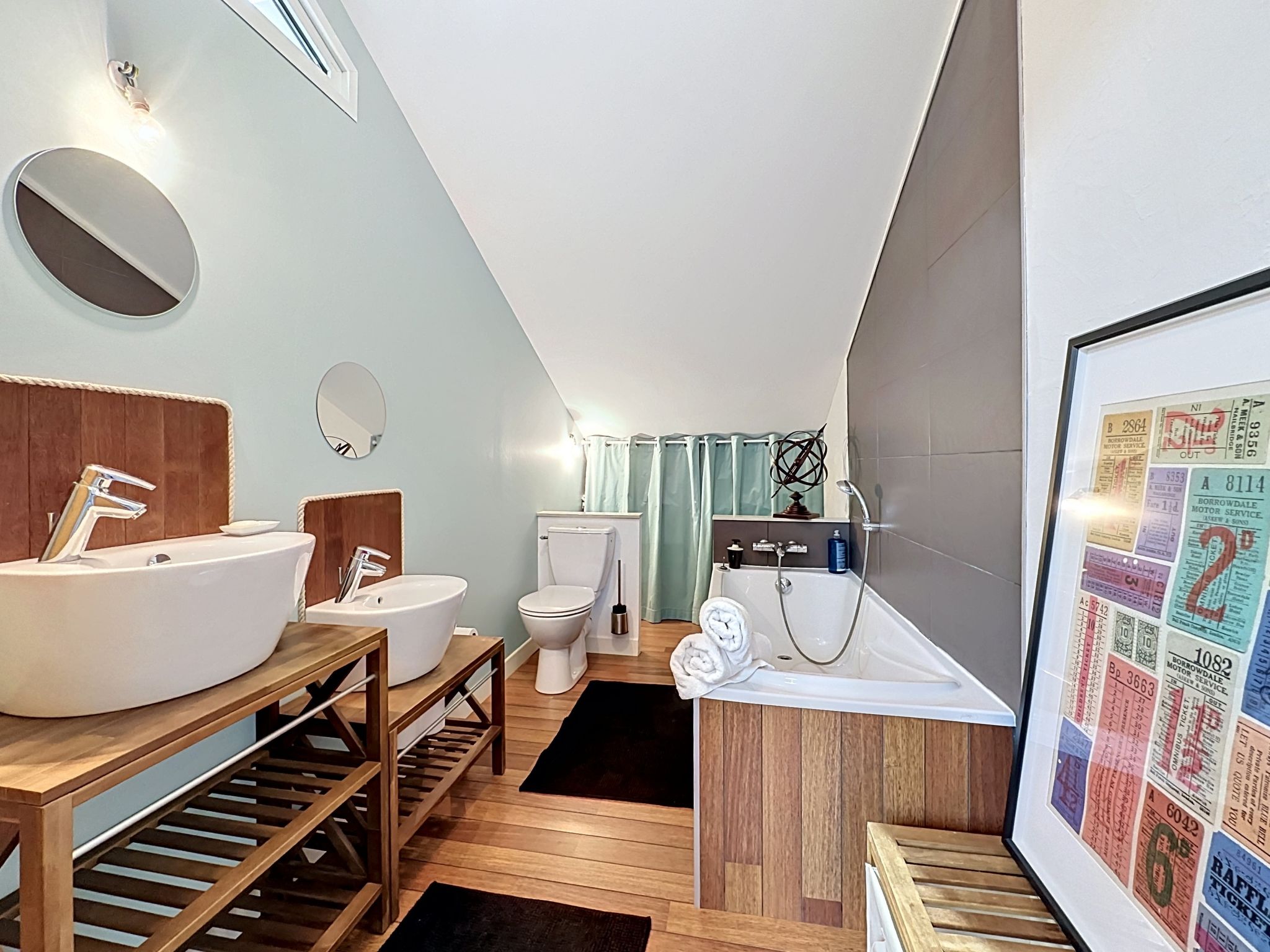 2 houses, each with its own kitchen, living room, dining room... Very modern, beautiful, cosy single-family house "L'Incroyable Océane". Property composed of main house and outbuilding, in the district of La Joselière, excellent location: right in the centre but still quiet, 400 m from the sea, 400 m from the beach, south facing position. Private: large garden 800 m2 (fenced). Terrace, garden furniture, barbecue, parking (for 5 cars). E-charging station. Shop 2 km, grocery 1.5 km, supermarket 1.5 km, restaurant 1.2 km, bar 1.2 km, bakery 1.5 km, café 1.2 km, 20 minute walk to the centre, bus stop "La Joselière" 400 m, railway station "Gare de Pornic" 2 km, sandy beach "Plage de la Joselière" 400 m, thermal baths "Alliance Pornic Thalasso & Spa" 1.2 km. Sports harbour 2 km, golf course (18 hole) 4 km, minigolf 4 km, walking paths from the house, fishing possibilities 350 m. Nearby attractions: Thalasso de Pornic 1.2 km, Pornic de Pornic 2 km, La Bernerie en Retz 6 km, Saint Brevin les Pins 20 km, La Baule 48 km, Nantes 49 km. Well-known lakes can easily be reached: Lac de Saint Viaud 22 km. Hiking paths: Sentier des Douaniers 350 m. Neighbourhood highly sensitive to noise. Quietness and good behaviour expected.