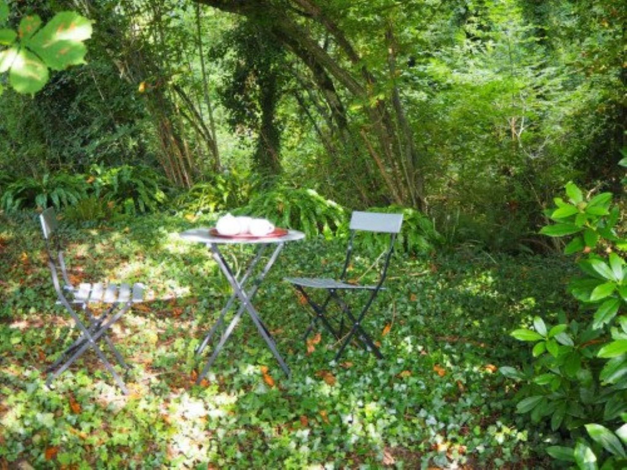 You'll be on your own in a pleasant wooded setting, part of which has been deliberately kept semi-wild to make room for biodiversity. This is a delight for crickets, butterflies, dragonflies and other birds, but it doesn't detract from its charm - quite the contrary.