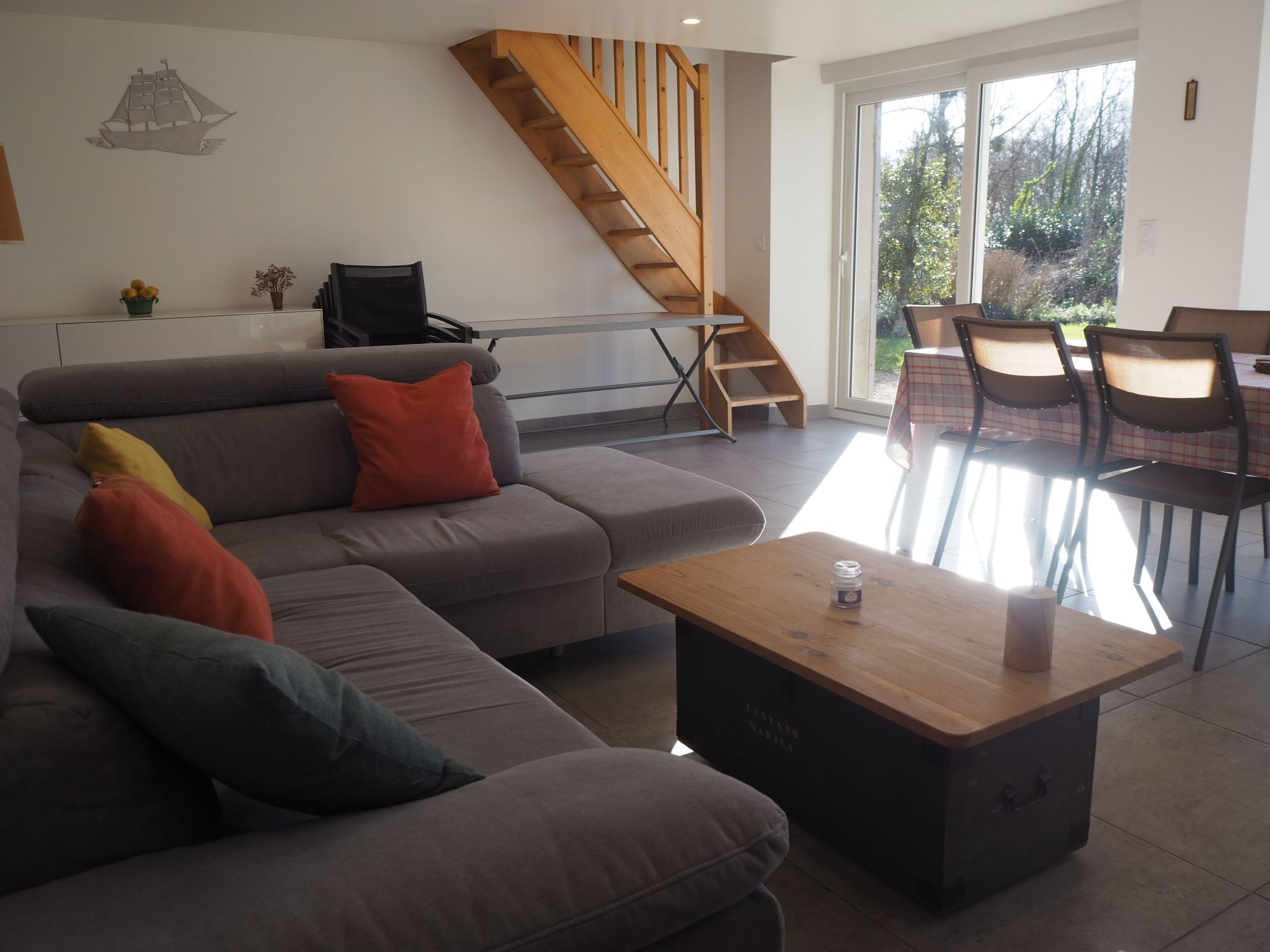 A modern, well-equipped kitchen, a spacious, well-appointed bathroom with walk-in shower, a large, bright and friendly living room with bench seating and a wood-burning stove. Bright bedrooms that can be oculated, a south-facing garden, away from prying eyes, so you can enjoy your holiday or weekend in peace and quiet.