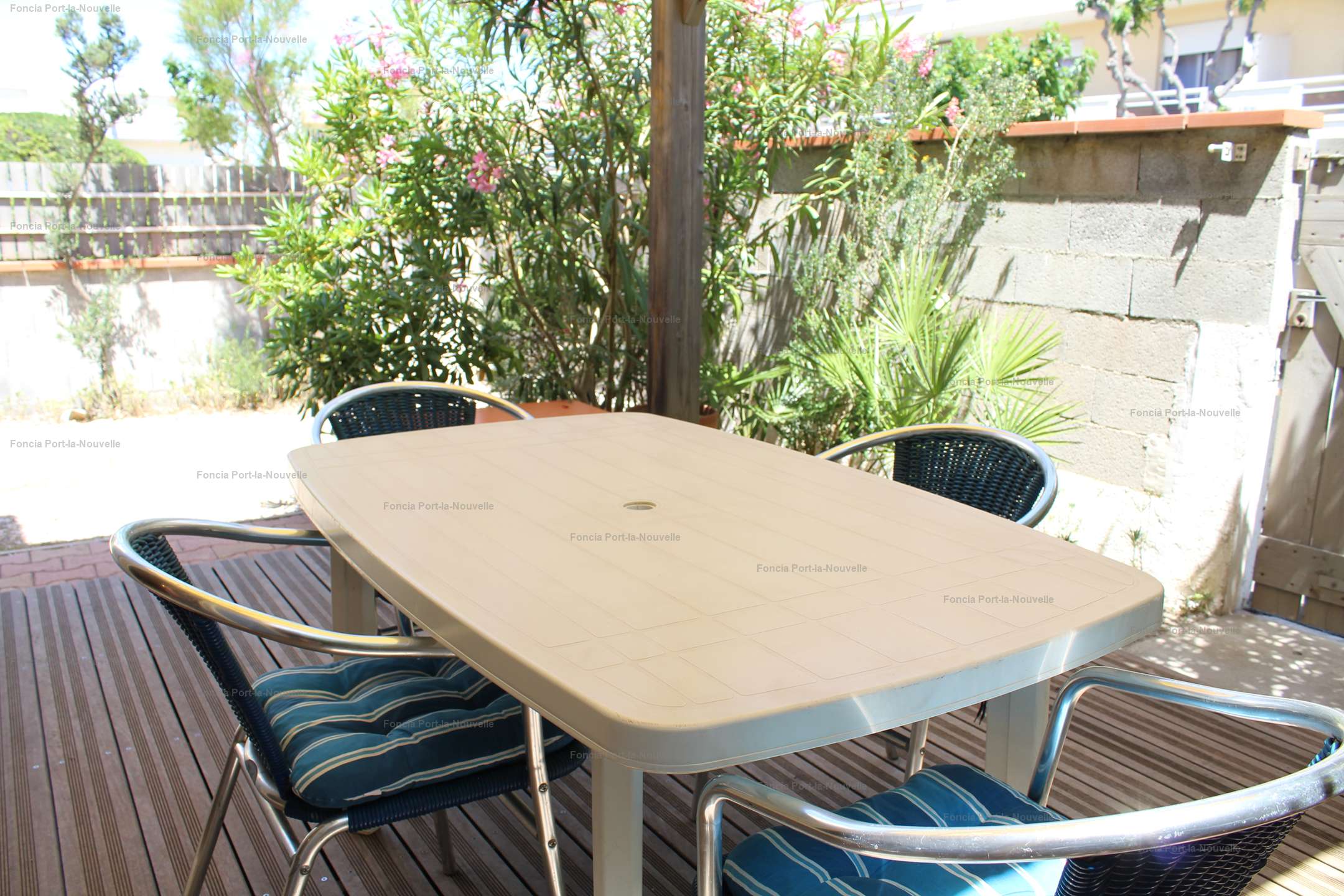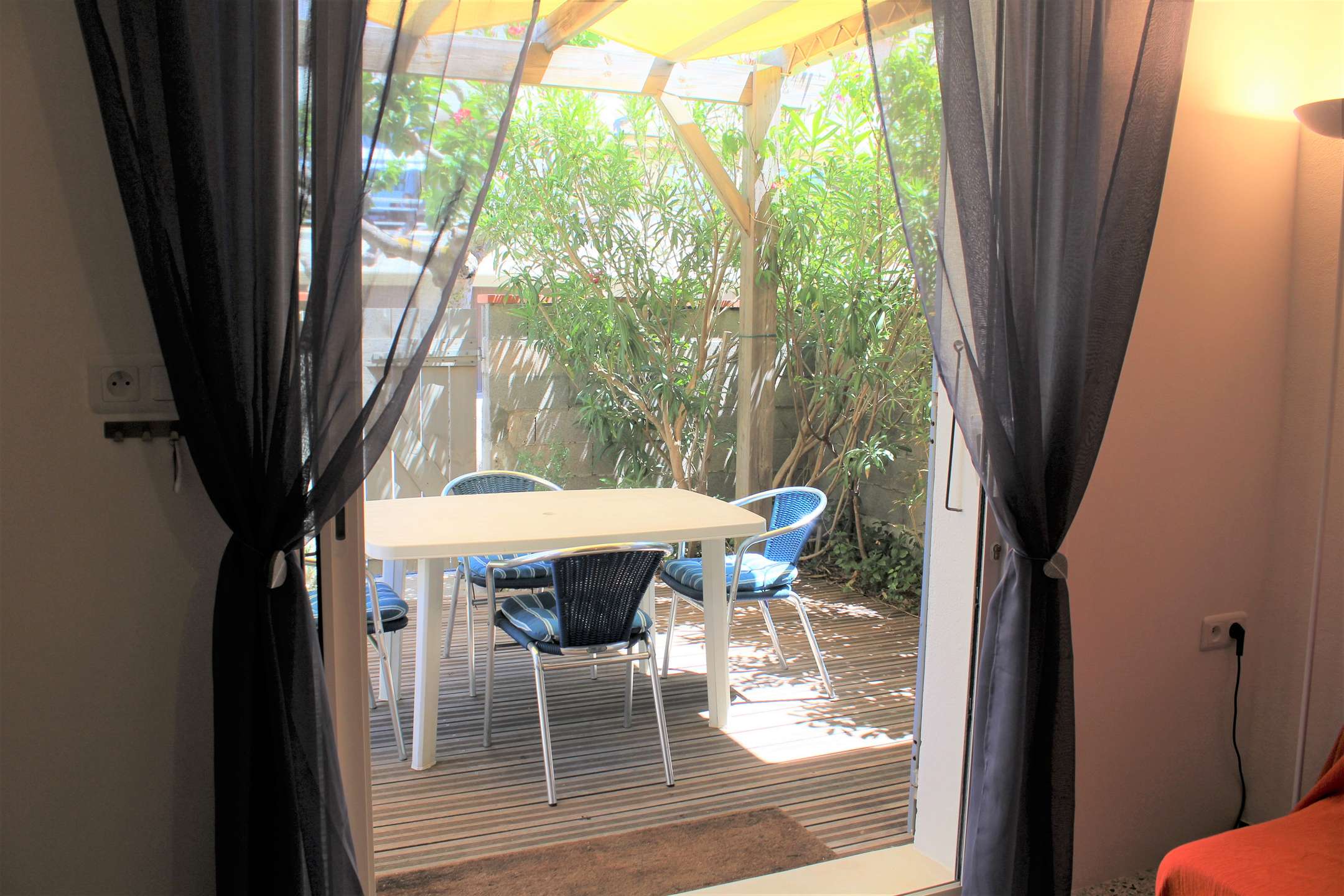The advantages of this vacation home rental: large terrace with garden furniture and possibility of bringing in the vehicle, comfortable pavilion with washing machine and dishwasher, air conditioning, close to the beach shopping center.