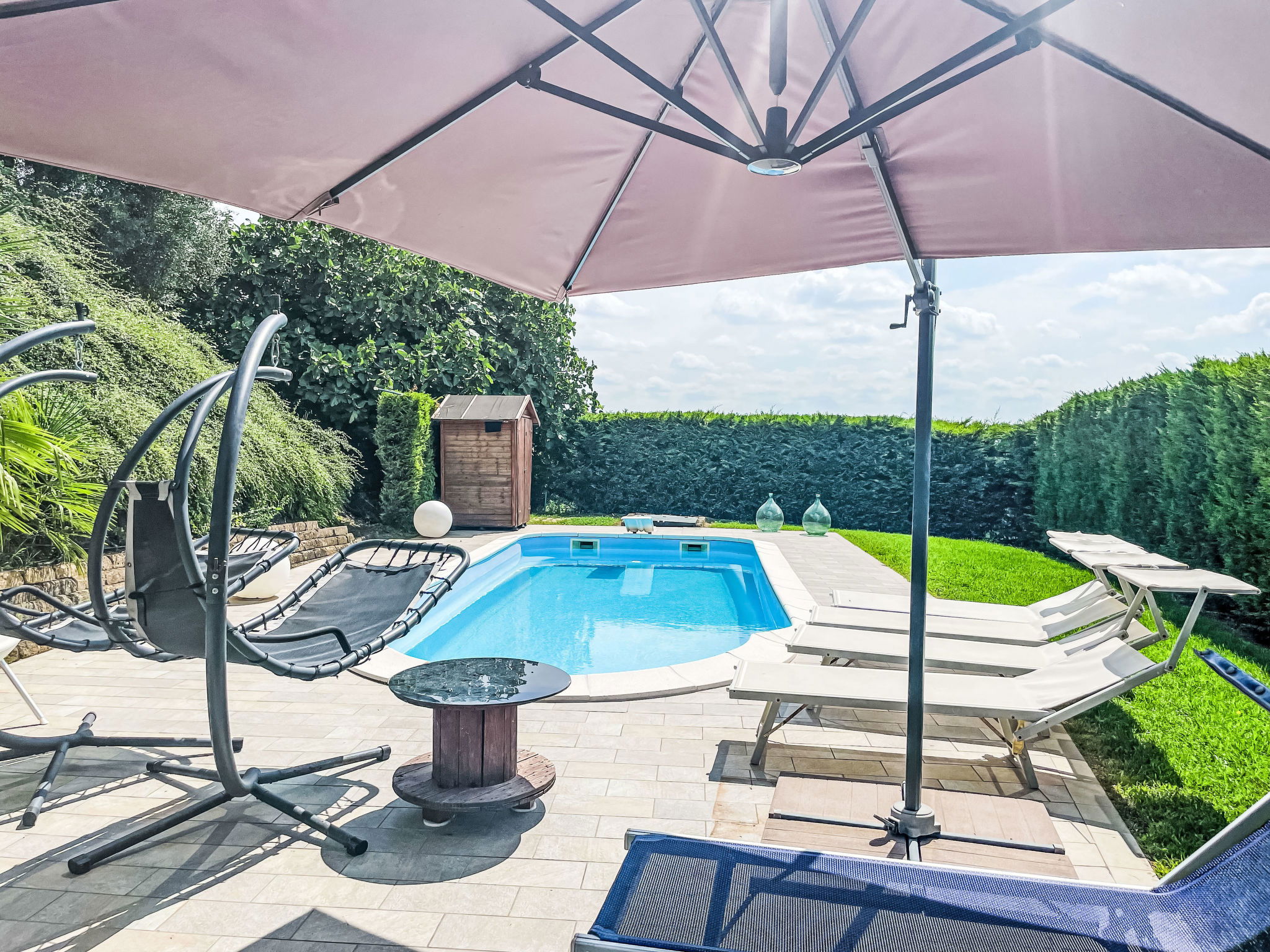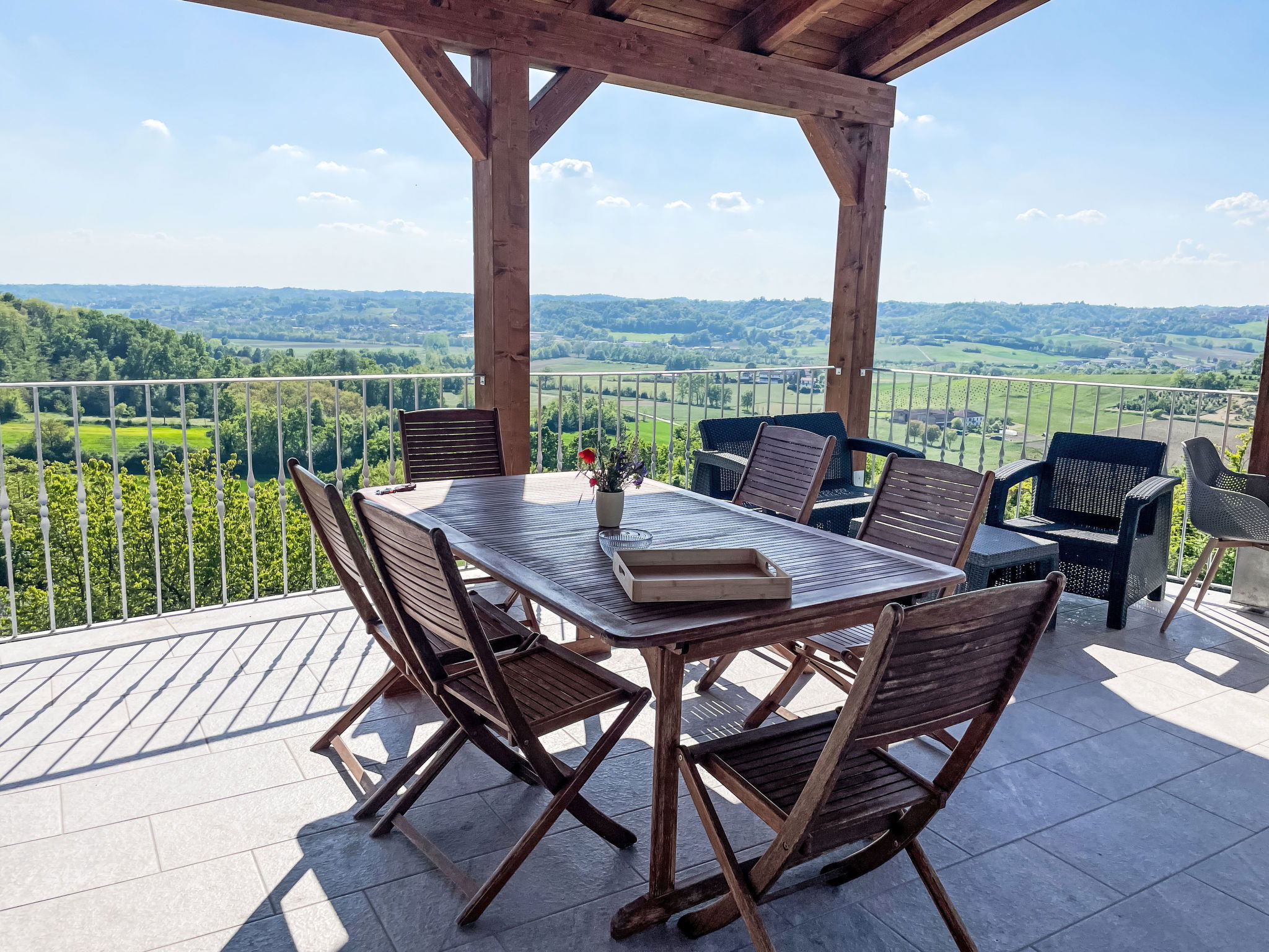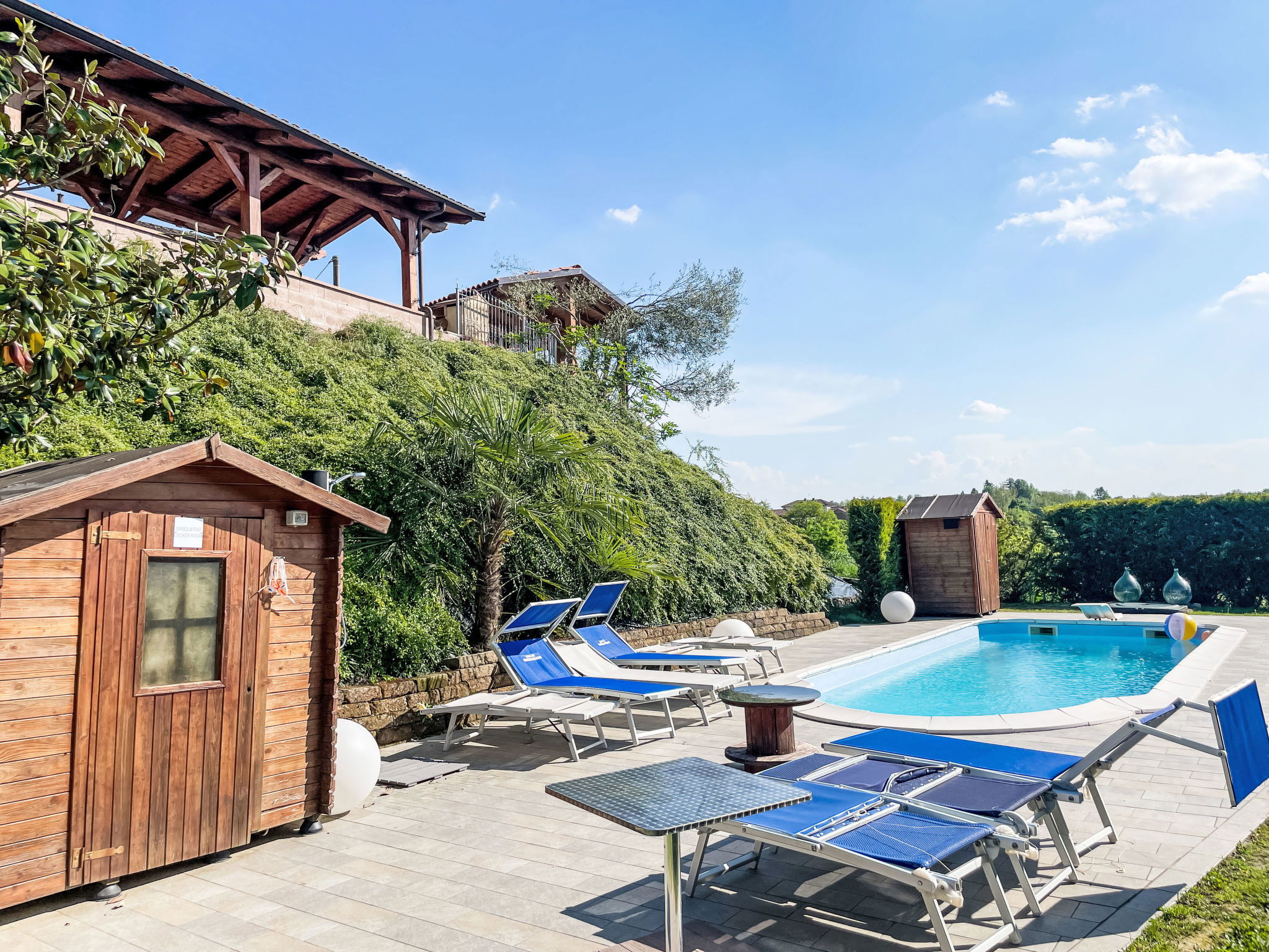 Cosy cottage, 2 storeys, surrounded by fields and vineyards. Property composed of main house and outbuilding, outside the resort, 2 km from the centre of Portacomaro, in a quiet, sunny position on top of a hill. Private: natural state property 1'500 m2 (fenced) with lawn, swimming pool (11 x 4 m, depth 150 cm, seasonal availability: 01.May. - 15.Oct.). Outdoor shower, table tennis, parking at the house on the premises. Grocery 2 km, supermarket 5 km, restaurant 1 km, bakery 2 km, bus stop 1.6 km. Nearby attractions: Asti 12 km, Turin 50 km, Alba 35 km. Please note: car recommended. Owner lives in separate semi-detached house. The owner has a dog. The holiday unit consists of a holiday home and a holiday apartment on the ground floor of the adjacent building (without internal connection).
