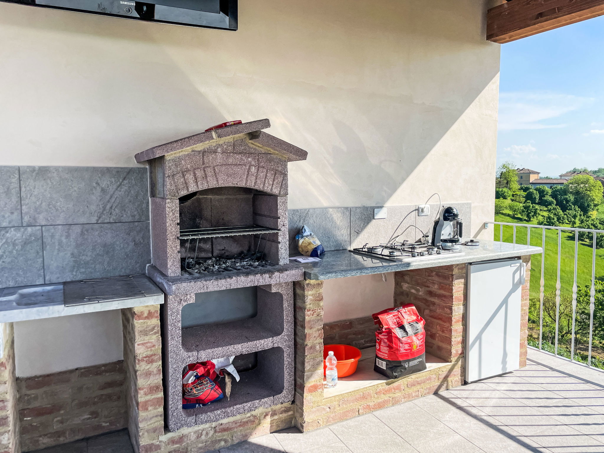 "Zio-Nonno", 5-room semi-detached house 150 m2 on 2 levels. Fully renovated in 2024, rustic and cosy furnishings: living/sleeping room with 1 double sofabed, Scandinavian wood stove and dining table. 1 double bedroom. Living/sleeping room with 1 double sofabed. Open kitchen (oven, dishwasher, Gas stove, 4 gas rings, toaster, kettle, freezer, electric coffee machine). Exit to the terrace. 2 showers/WC. Upper floor: 1 room with 1 bed and 1 double bed. Exit to the balcony. 1 room with 1 bed and 1 double bed. Exit to the balcony. Air-conditioning. Natural stone floors. Large terrace 20 m2. Terrace furniture, barbecue. Beautiful view of the mountains and the countryside. Facilities: washing machine, iron, baby cot for up to 2 year olds. Internet (WiFi, free). Please note: maximum 1 pet/ dog allowed. Private entrance. No internal connecting door between the separated properties. IT005087C2AZKI95PV,IT005087C2SKPQPVXT