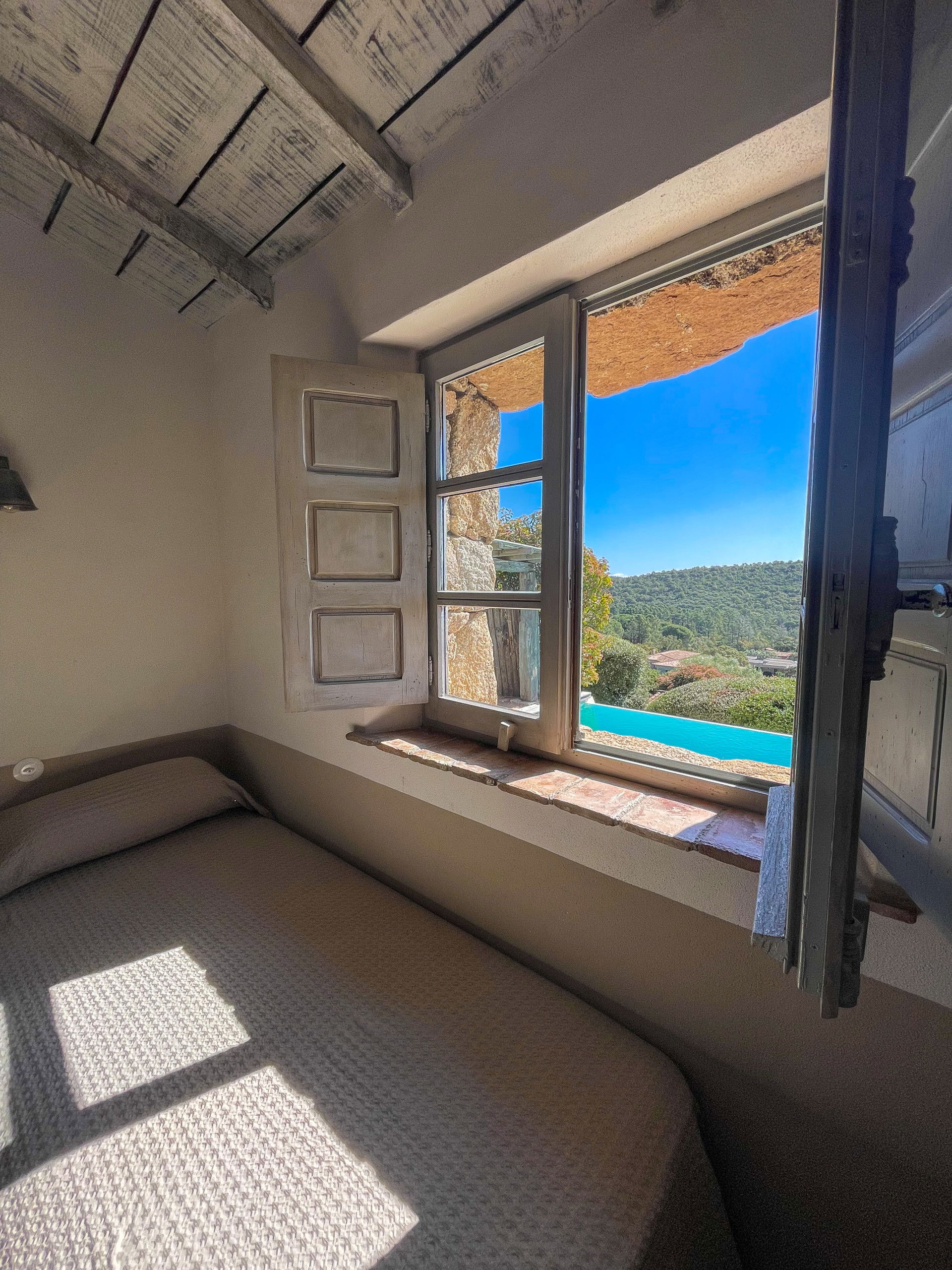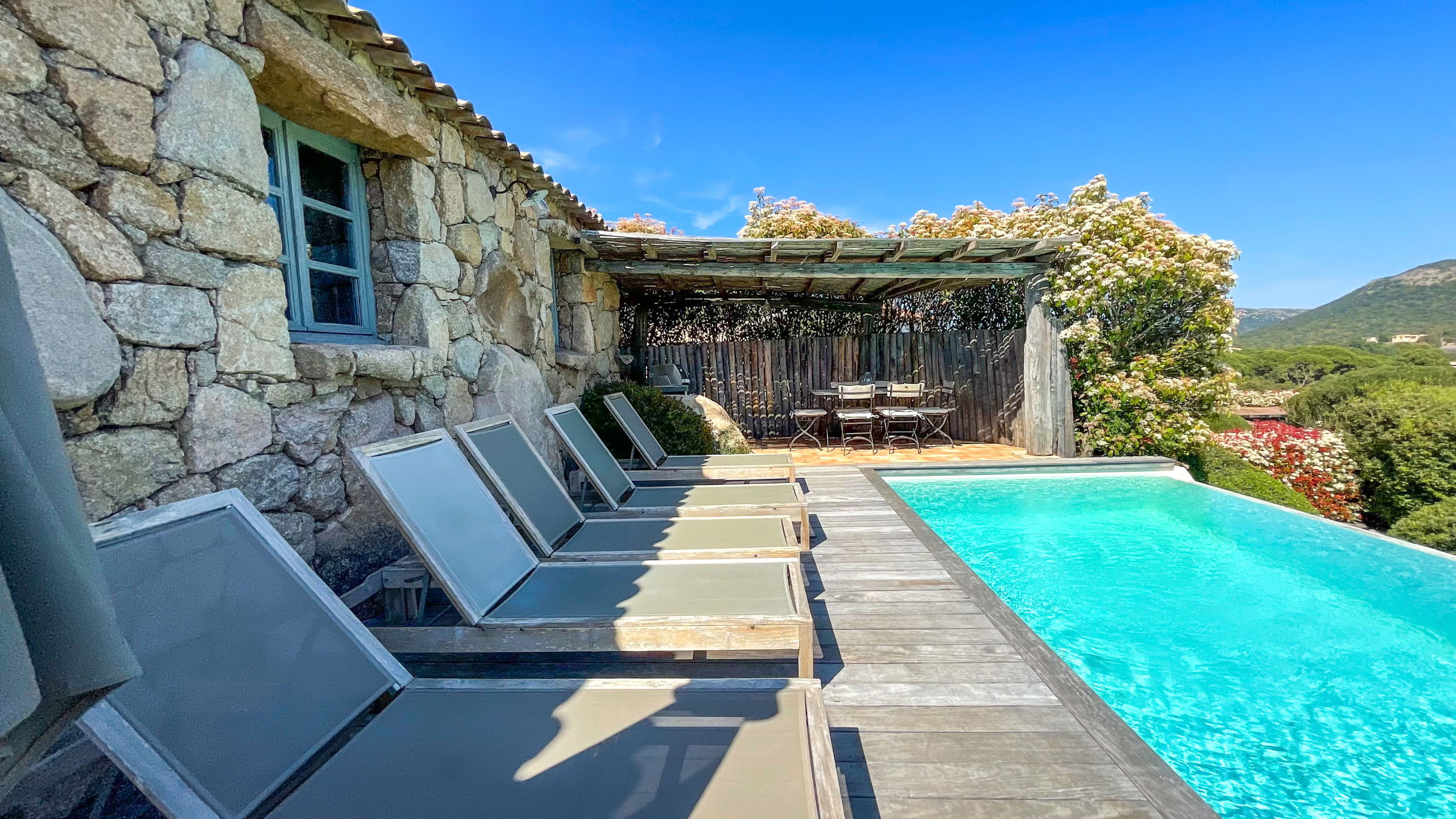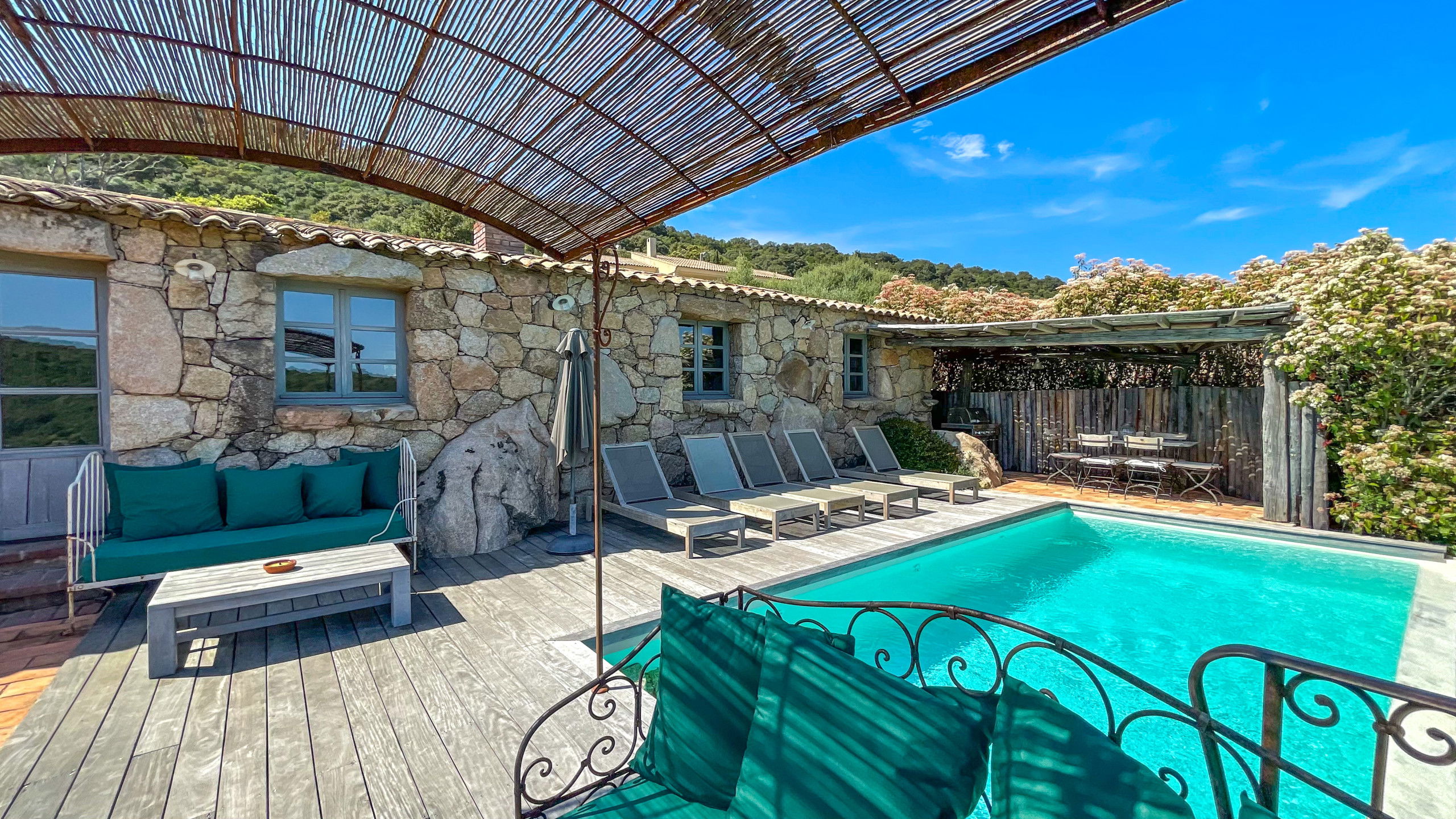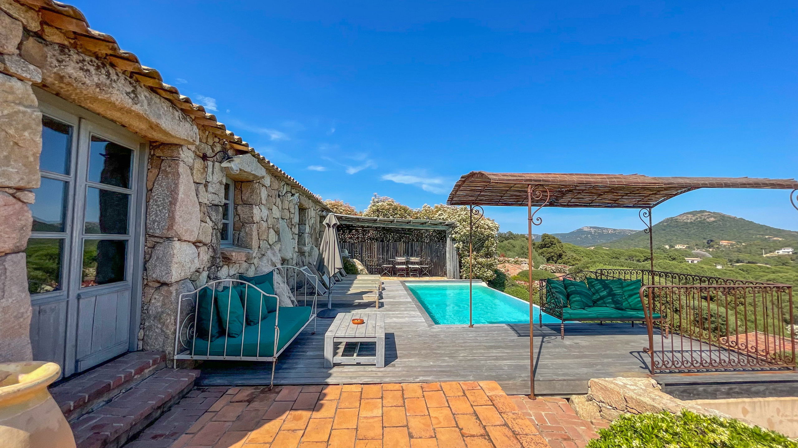 Luxury sheepfold for 6 people located on the heights of Porto-Vecchio overlooking the bay of Santa-Giulia with heated swimming pool.
