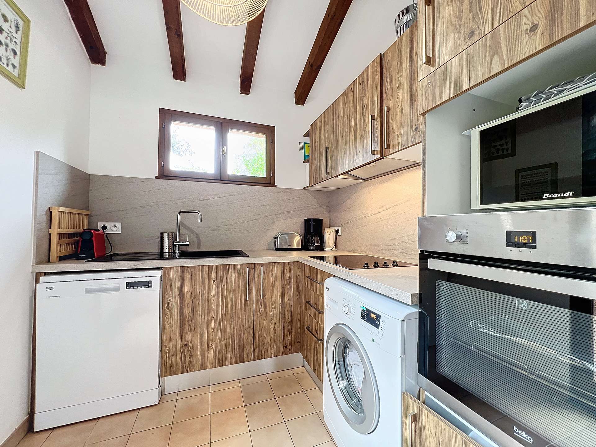 80m² approximately - up to 8 people Located in the Hameaux de Pietragione just 200 meters from the beach of Santa-Giulia. This villa is composed of a living room with a sofa bed, an independent fitted kitchen, three bedrooms, one of which has a shower room and WC, as well as a separate shower room with WC. The advantage of this villa: A large partly covered terrace with garden furniture and barbecue as well as an outdoor shower. Two private and free parking spaces are available to you in front of the house. End of stay cleaning, bed linen and towels are included in the price.