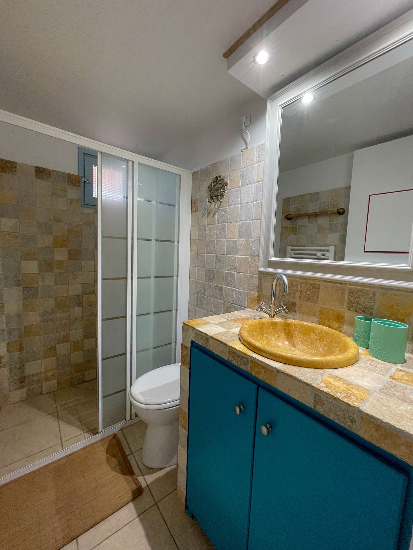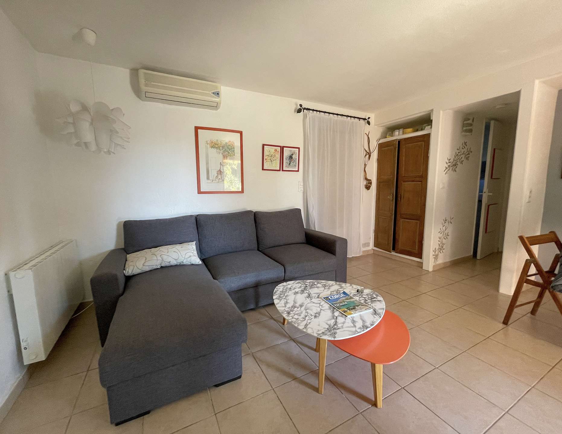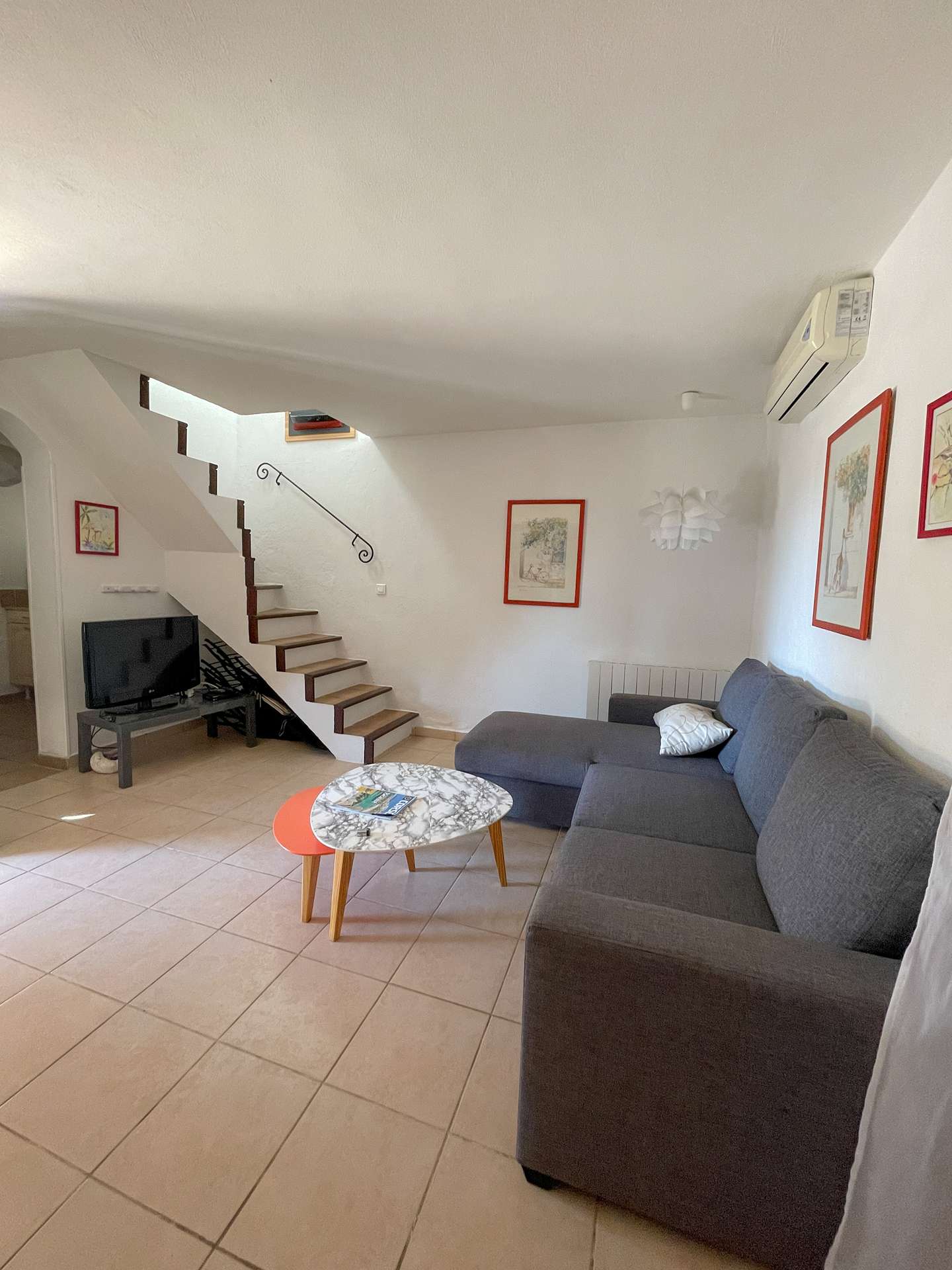 65m² approximately - up to 8 people Located in the Hameaux de Pietragione just 80 meters from the beach of Santa-Giulia. This villa is made up on one level of a living room with a sofa bed, an independent fitted kitchen, a bedroom, a shower room and an independent WC. Upstairs are two bedrooms with a shower room with WC. The advantage of this villa: A terrace with garden furniture equipped with a barbecue and an outdoor shower. End of stay cleaning, bed linen and towels are included in the price.