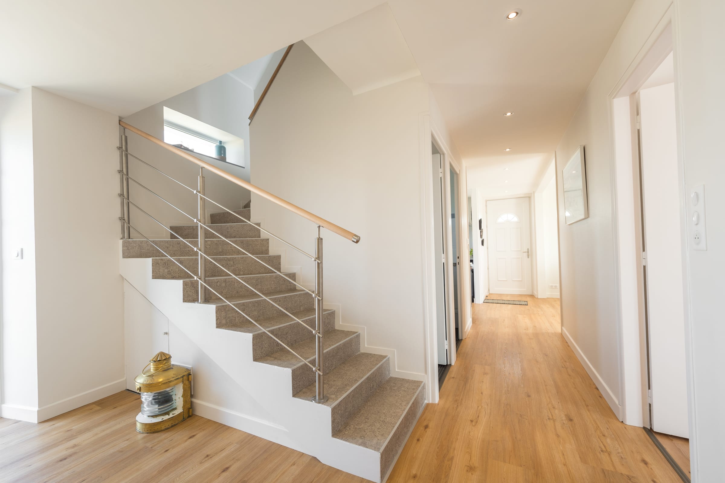 Entrance hall with plenty of storage space, including a laundry area with washing machine and tumble dryer.