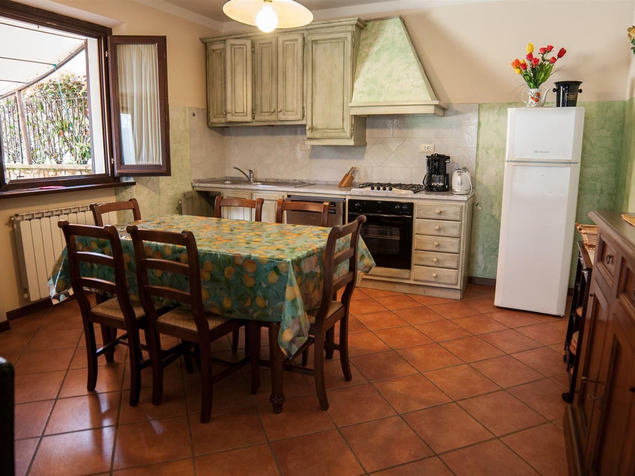 It is about five kilometres to a grocery shop and a restaurant, where you can be served in case you do not feel like cooking.