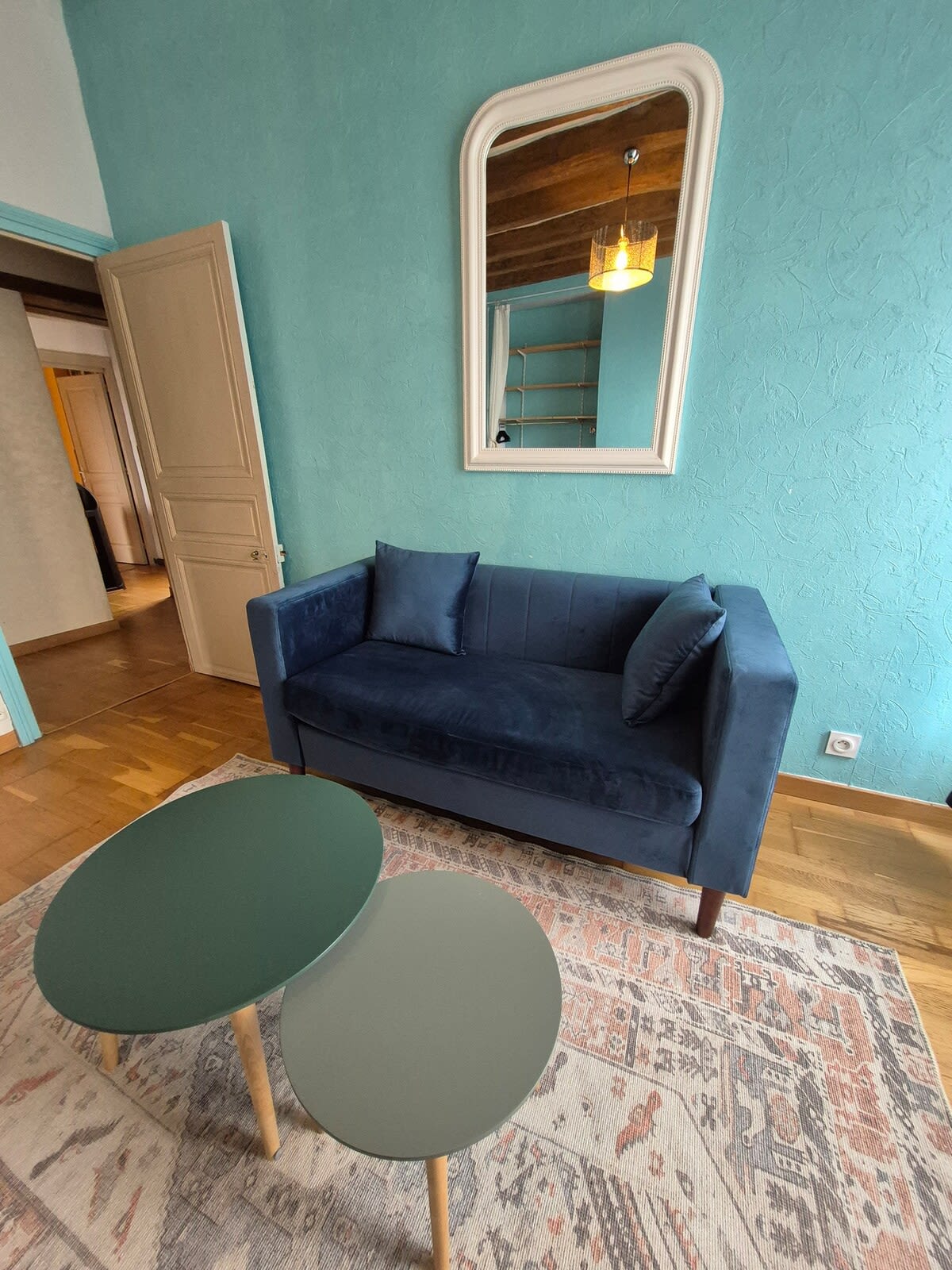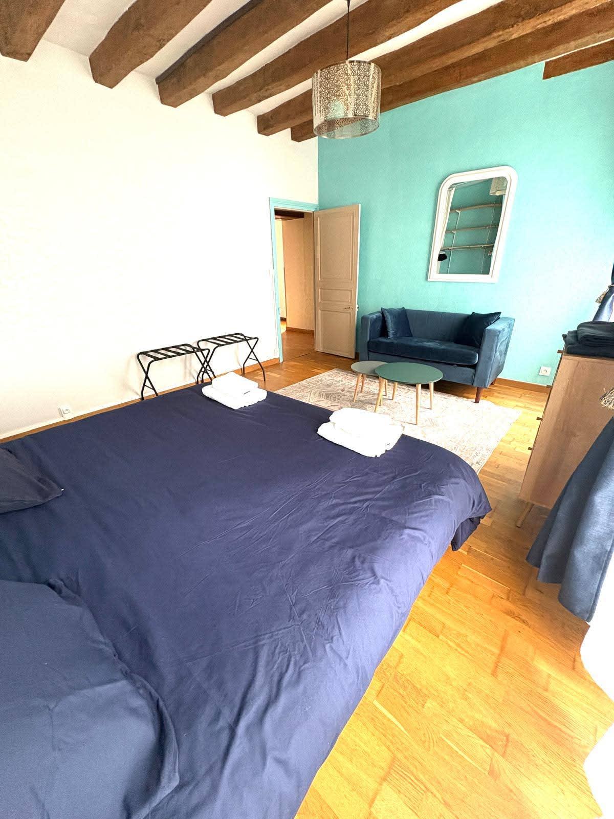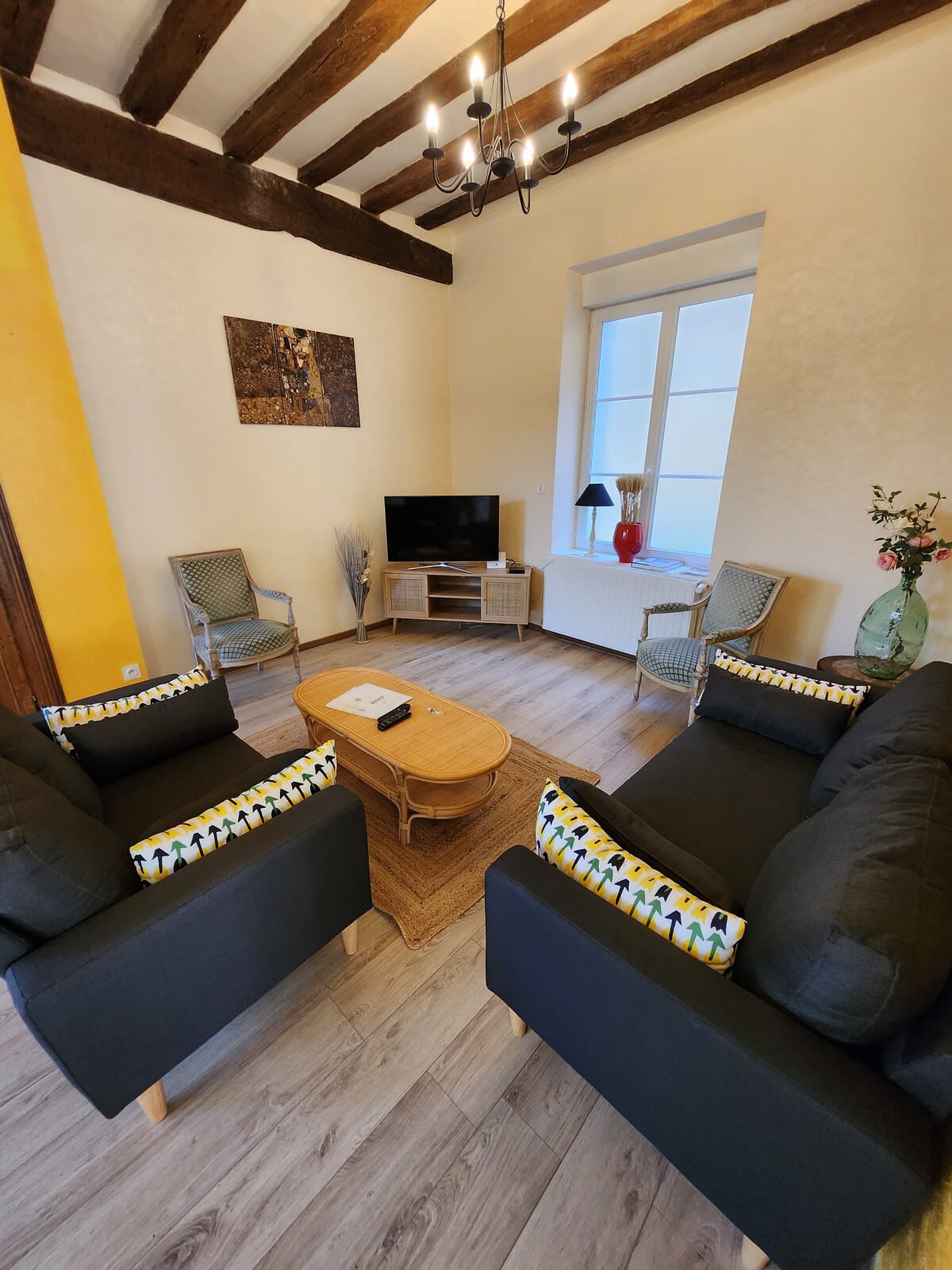 A cozy living room with TV and access to Netflix, Amazon Prime, and Canal+.