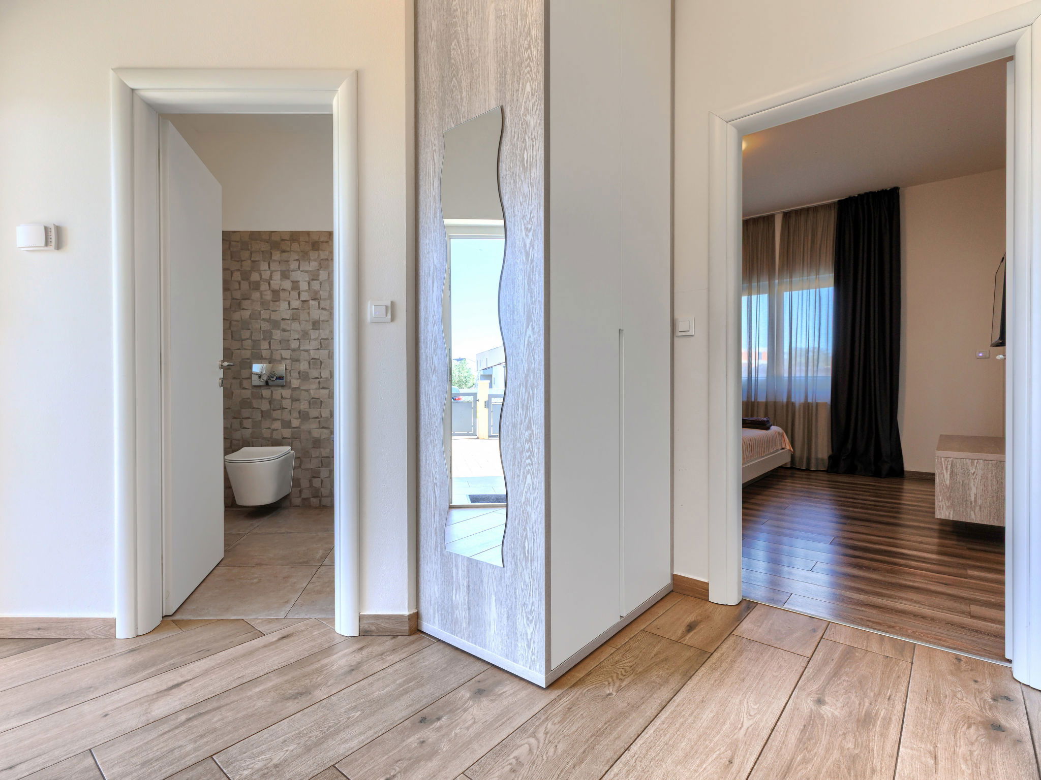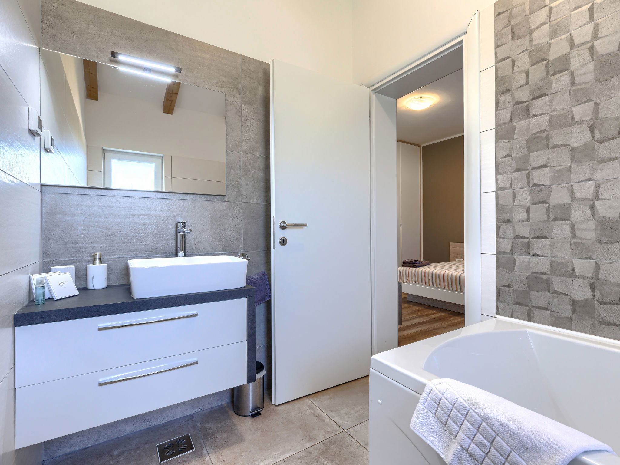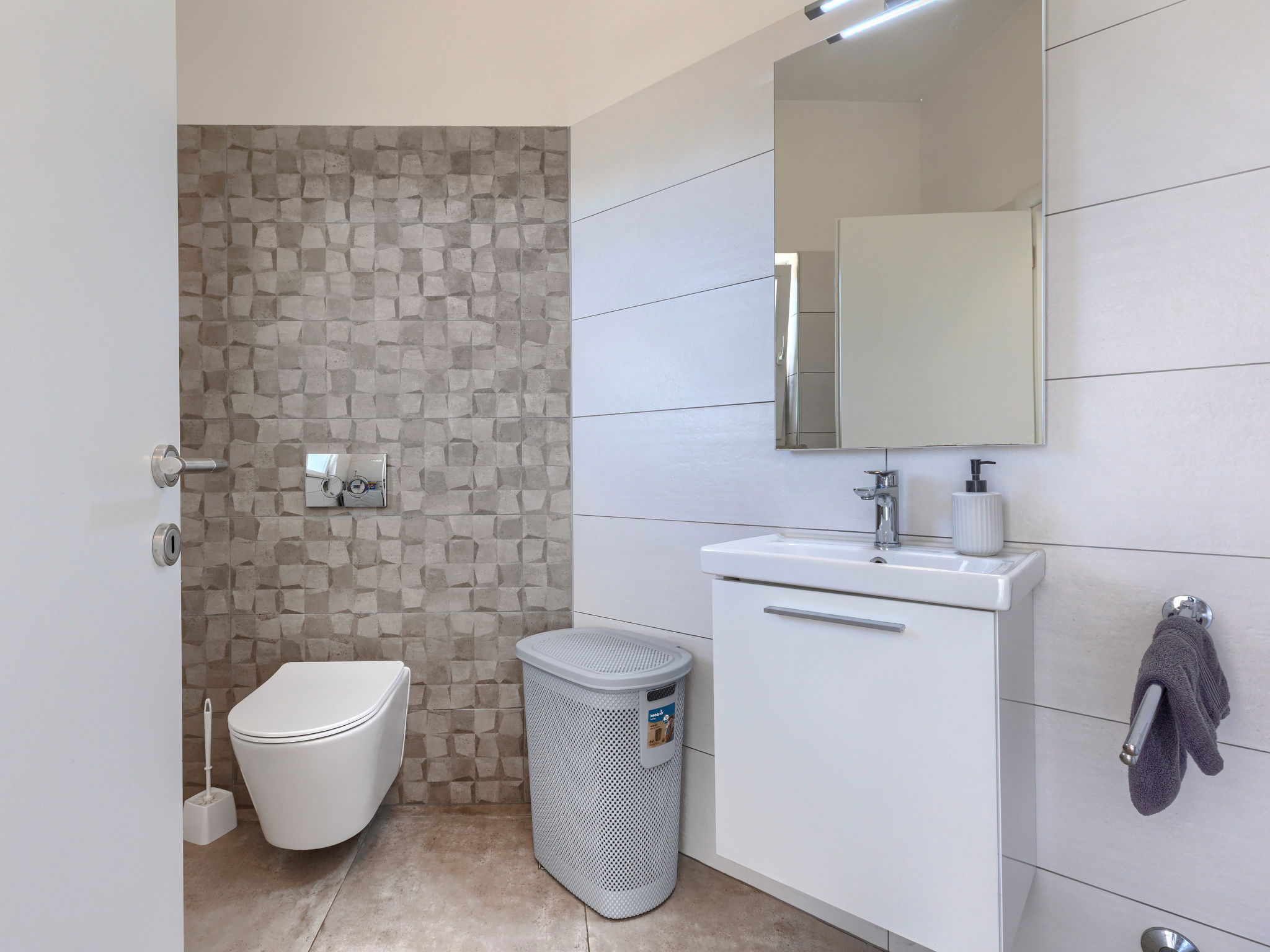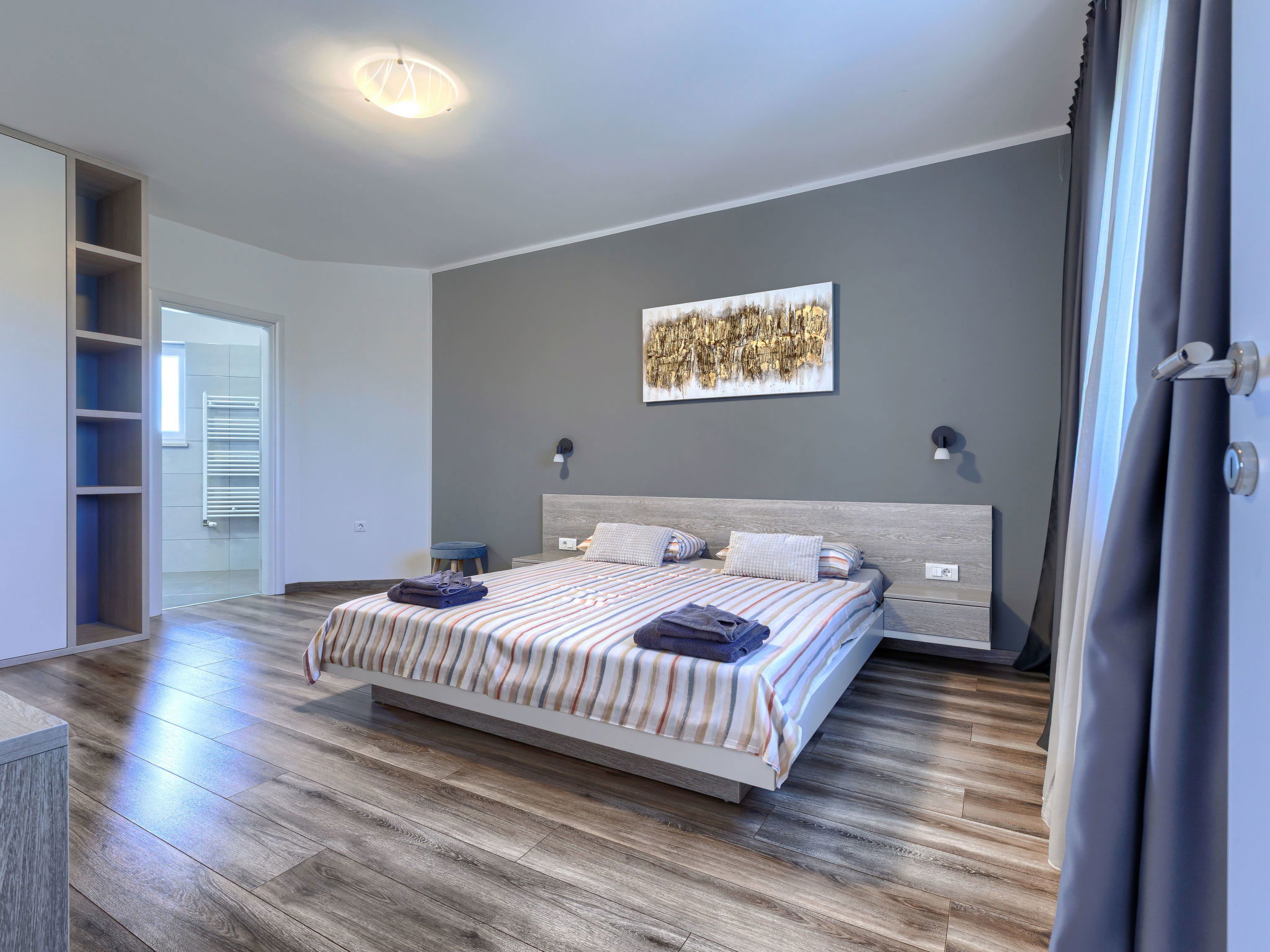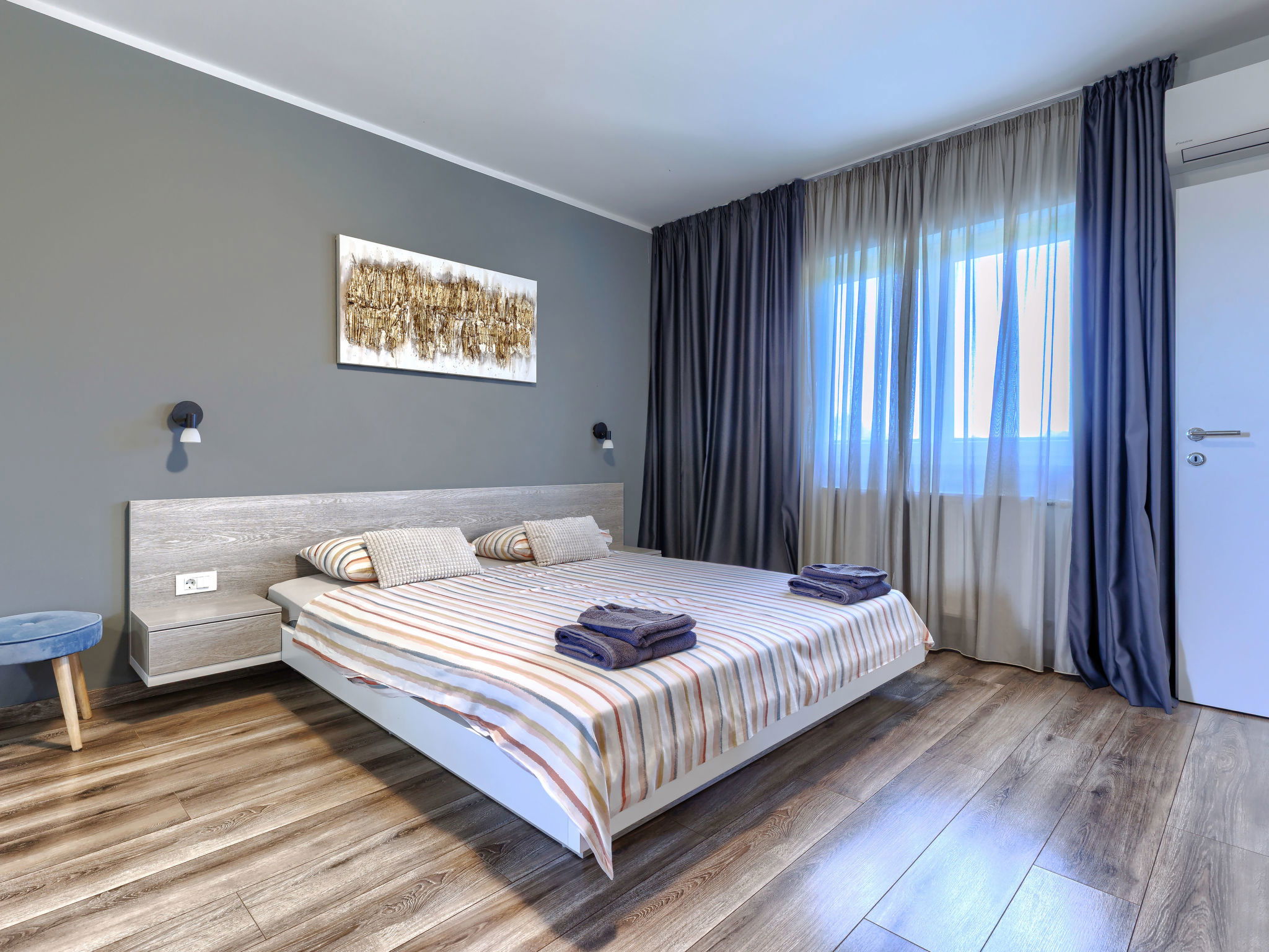 Villa "Magica", 2 storeys. In the hamlet Loborika 6 km from the centre of Pula, 6 km from the centre of Marčana, in a quiet, sunny position, 8 km from the sea. Private: property 1'200 m2 (fenced), garden with wildlife garden and flowers, swimming pool angular, heated (8 x 4 m, depth 140 cm, seasonal availability: 01.Apr. - 01.Nov.) with internal staircase. Outdoor shower, terrace (30 m2), garden furniture, barbecue, children's playground (swing), pool maintenance by the owner/gardener. In the house: internet access, trampoline, washing machine. Parking (for 4 cars) at the house on the premises. Shop 2.3 km, supermarket 6 km, restaurant 2 km, café 2.3 km, bus stop 2.3 km, sandy beach 16 km pebble beach 13 km. Tennis 15 km, riding stable 5 km, walking paths from the house 100 m, cycle lane 150 m. Nearby attractions: Amphitheater 8 km, National park Brijuni 14 km, Nature park Rt. Kamenjak 18 km.